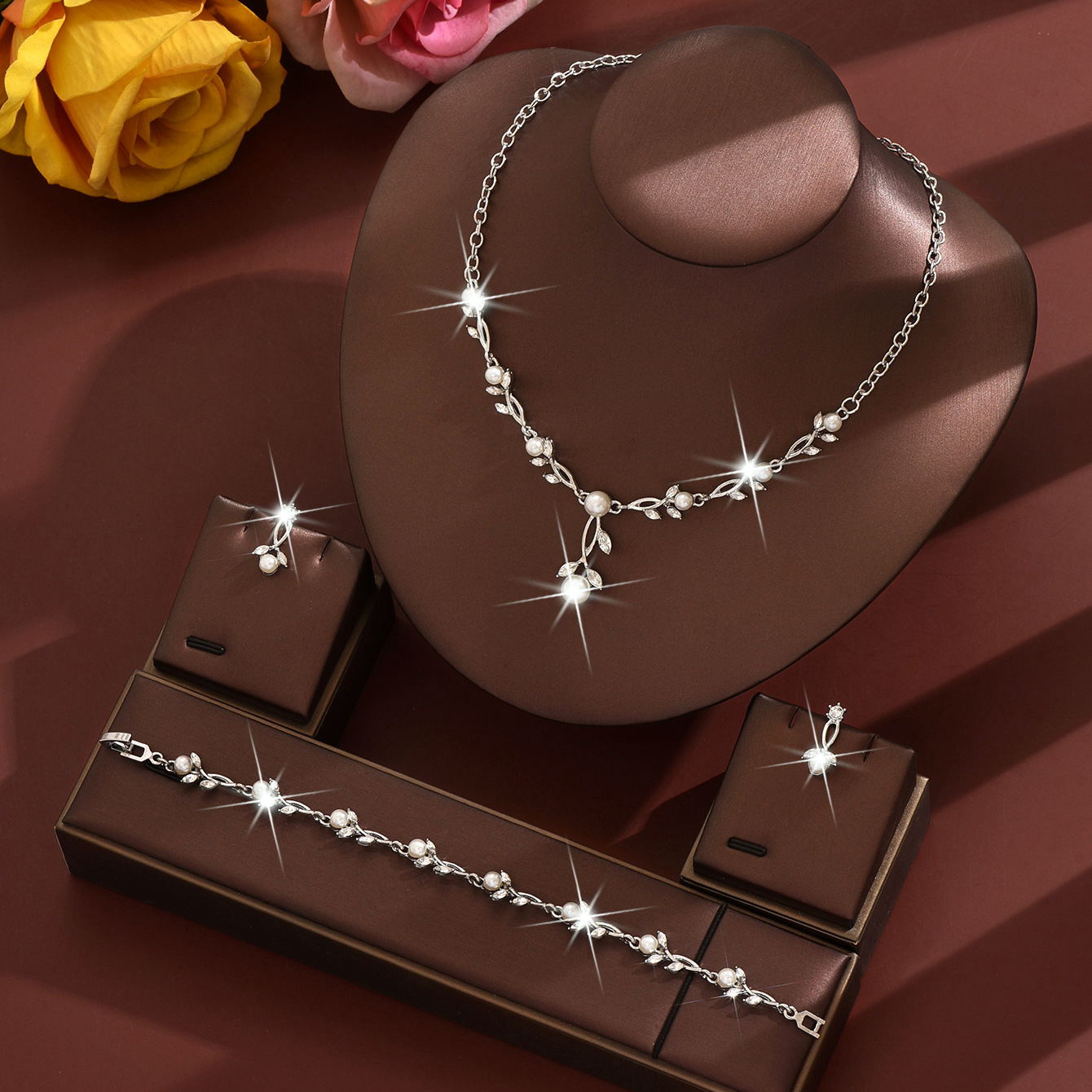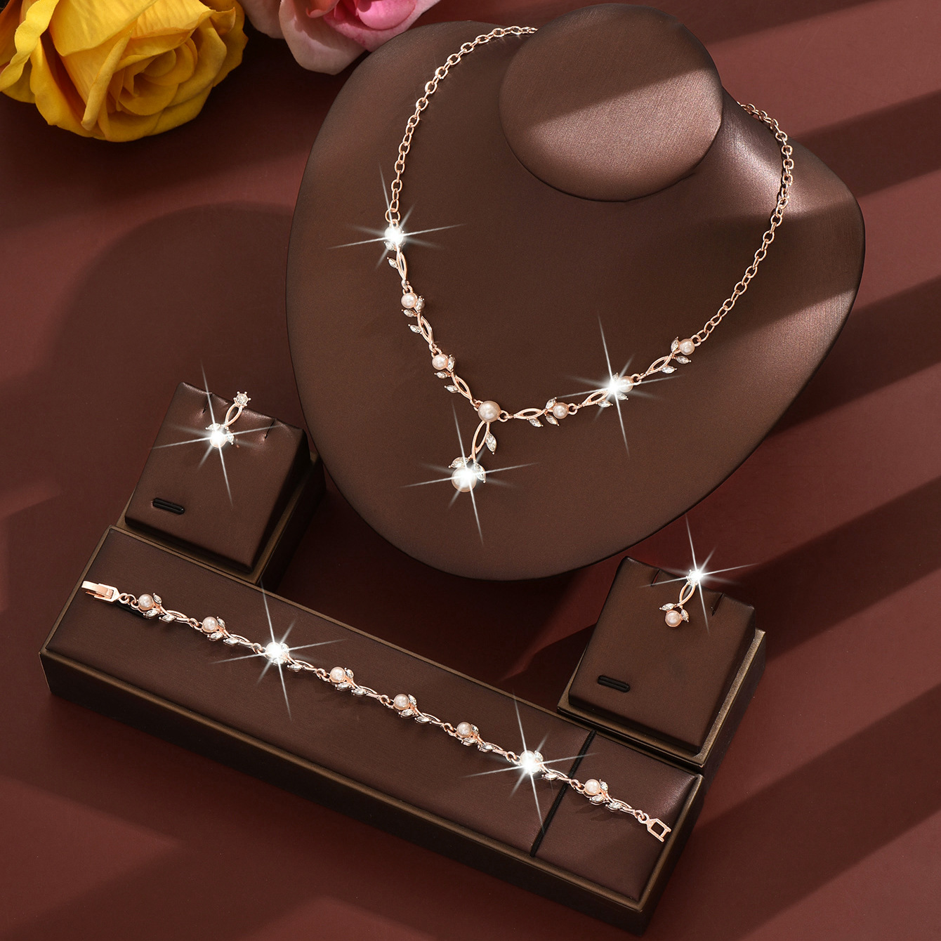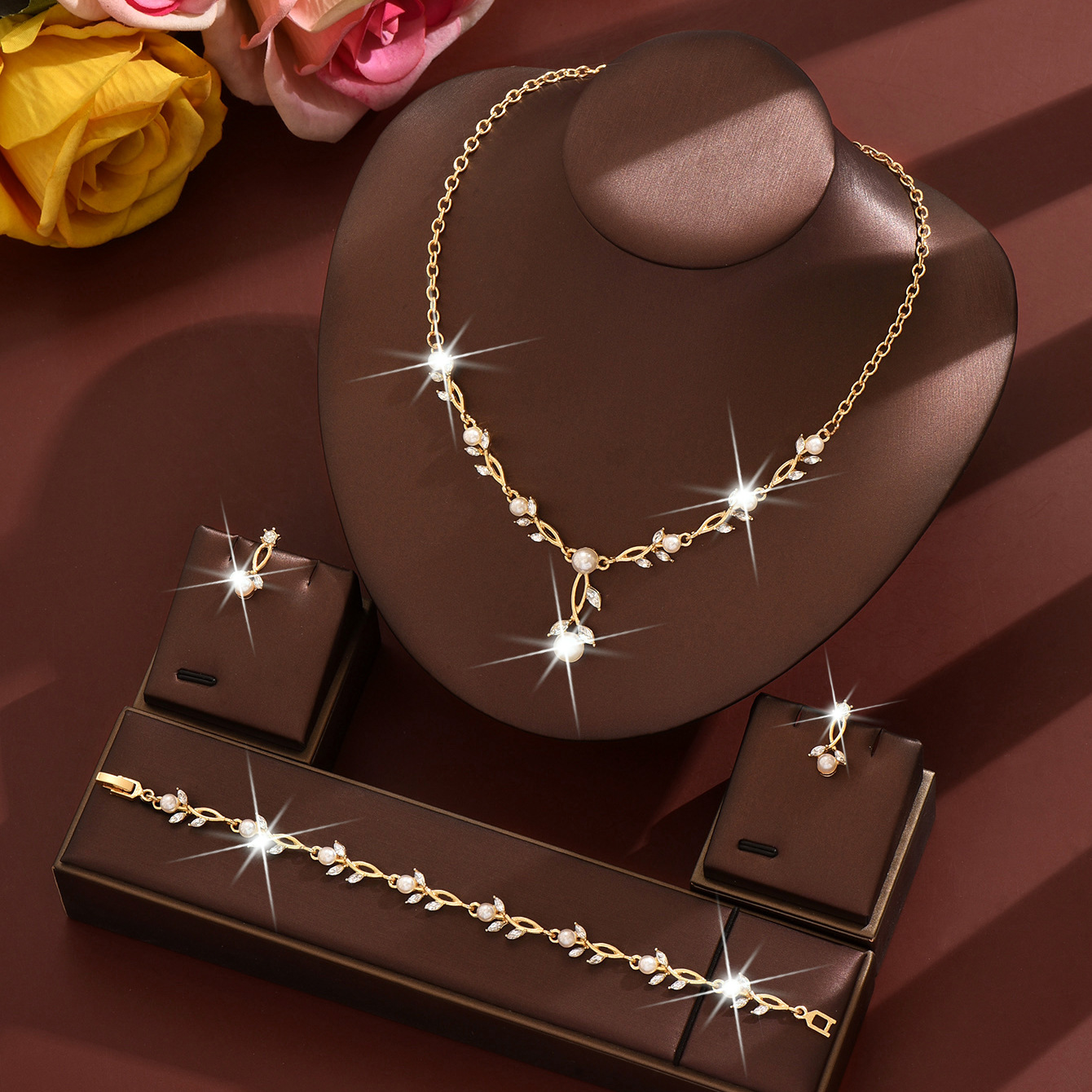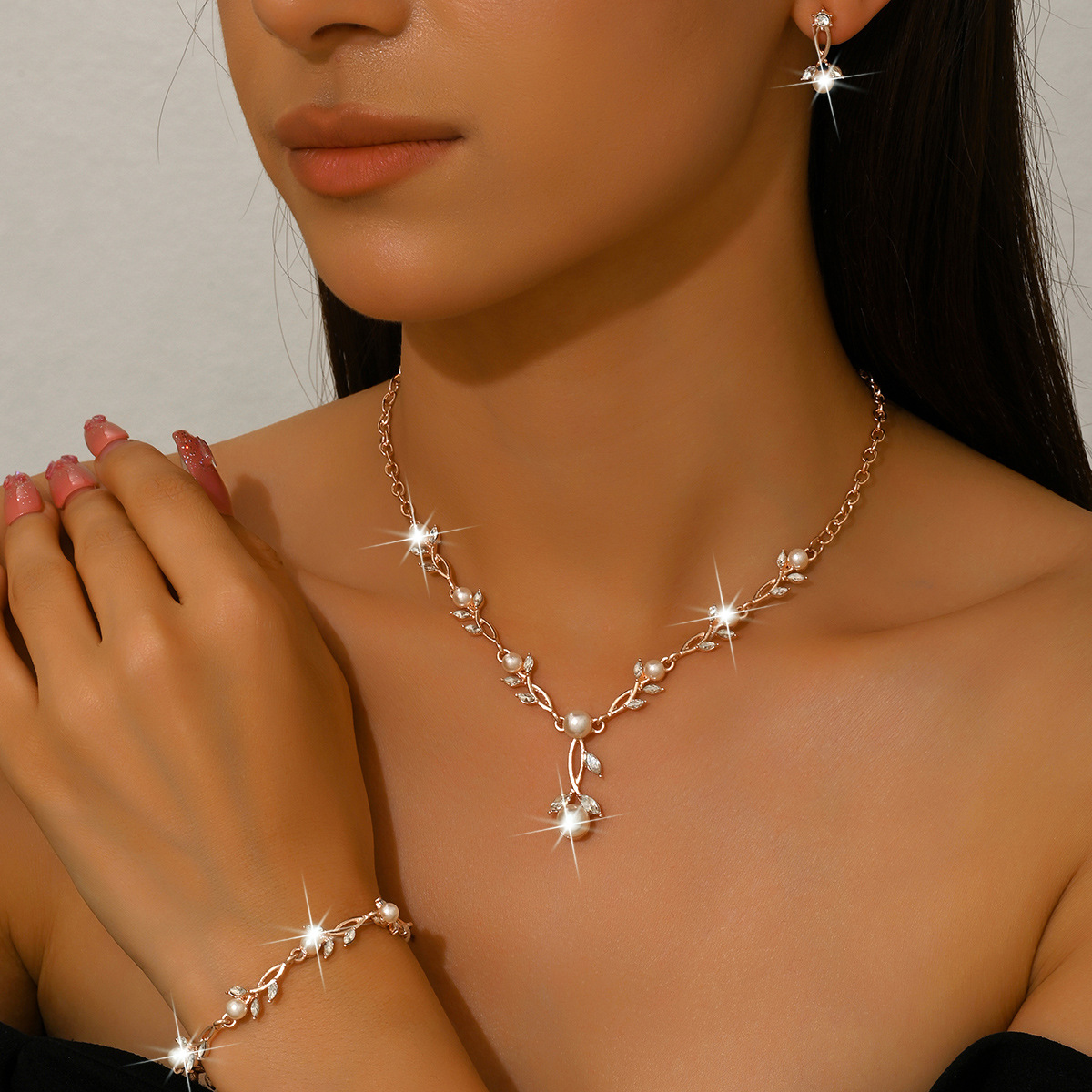 Cross-Border Hot Selling Alloy Pearl Rhinestone Wedding Necklace Women's Earrings Bridal Jewelry Banquet Ladies Jewelry