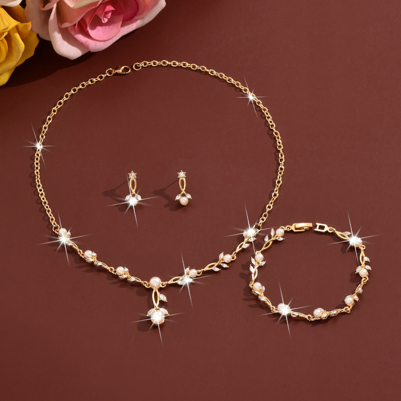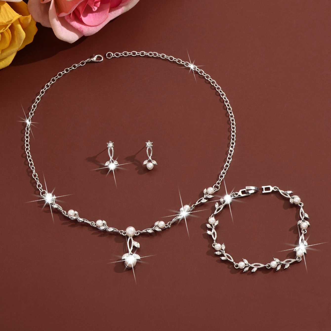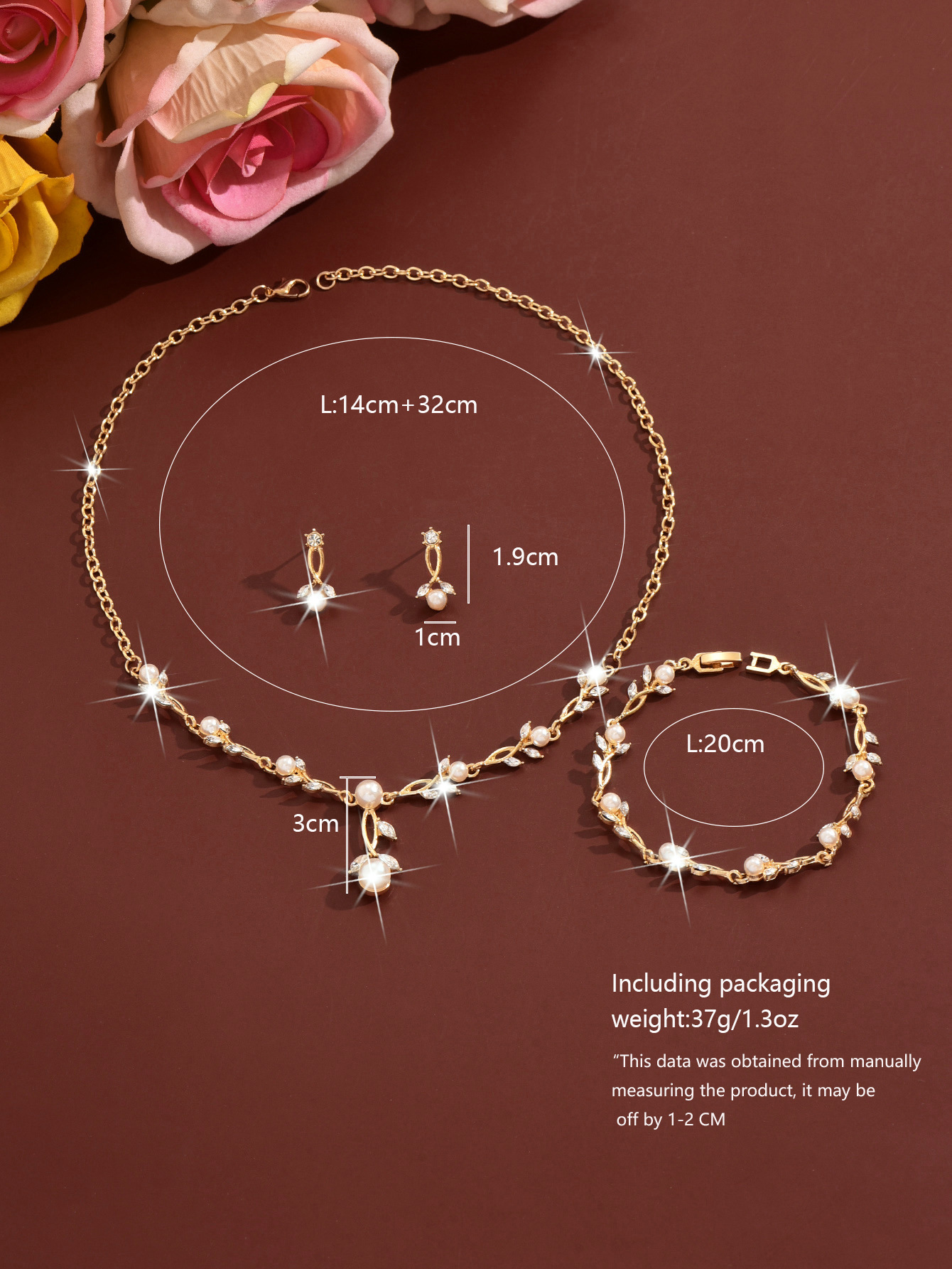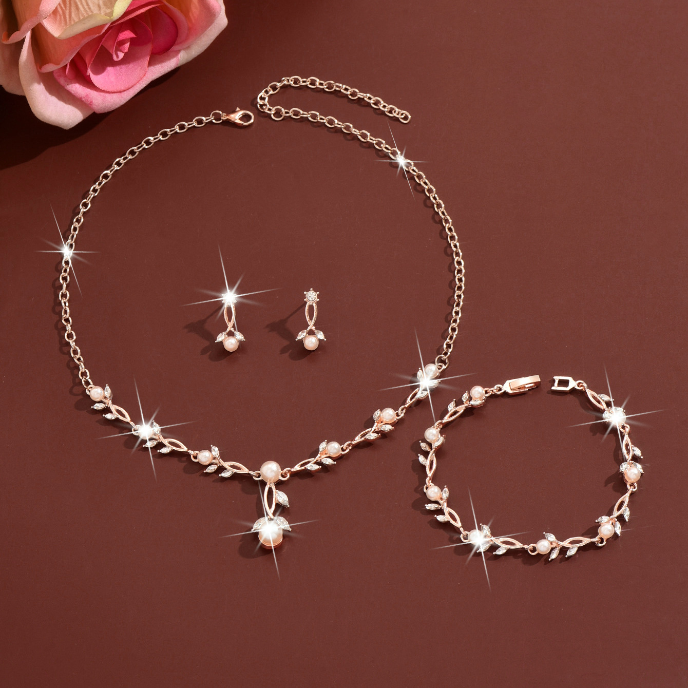 Cross-Border Hot Selling Alloy Pearl Rhinestone Wedding Necklace Women's Earrings Bridal Jewelry Banquet Ladies Jewelry