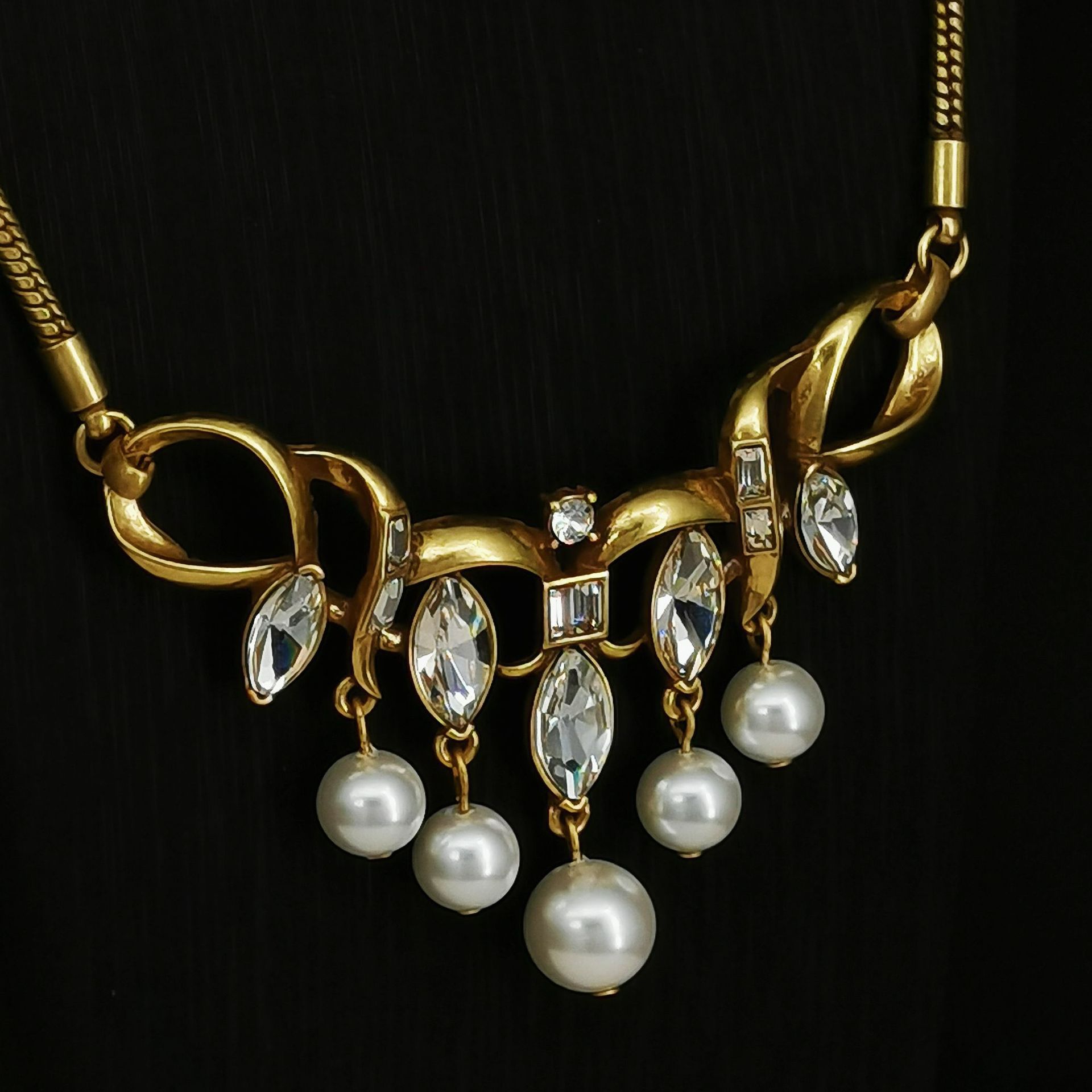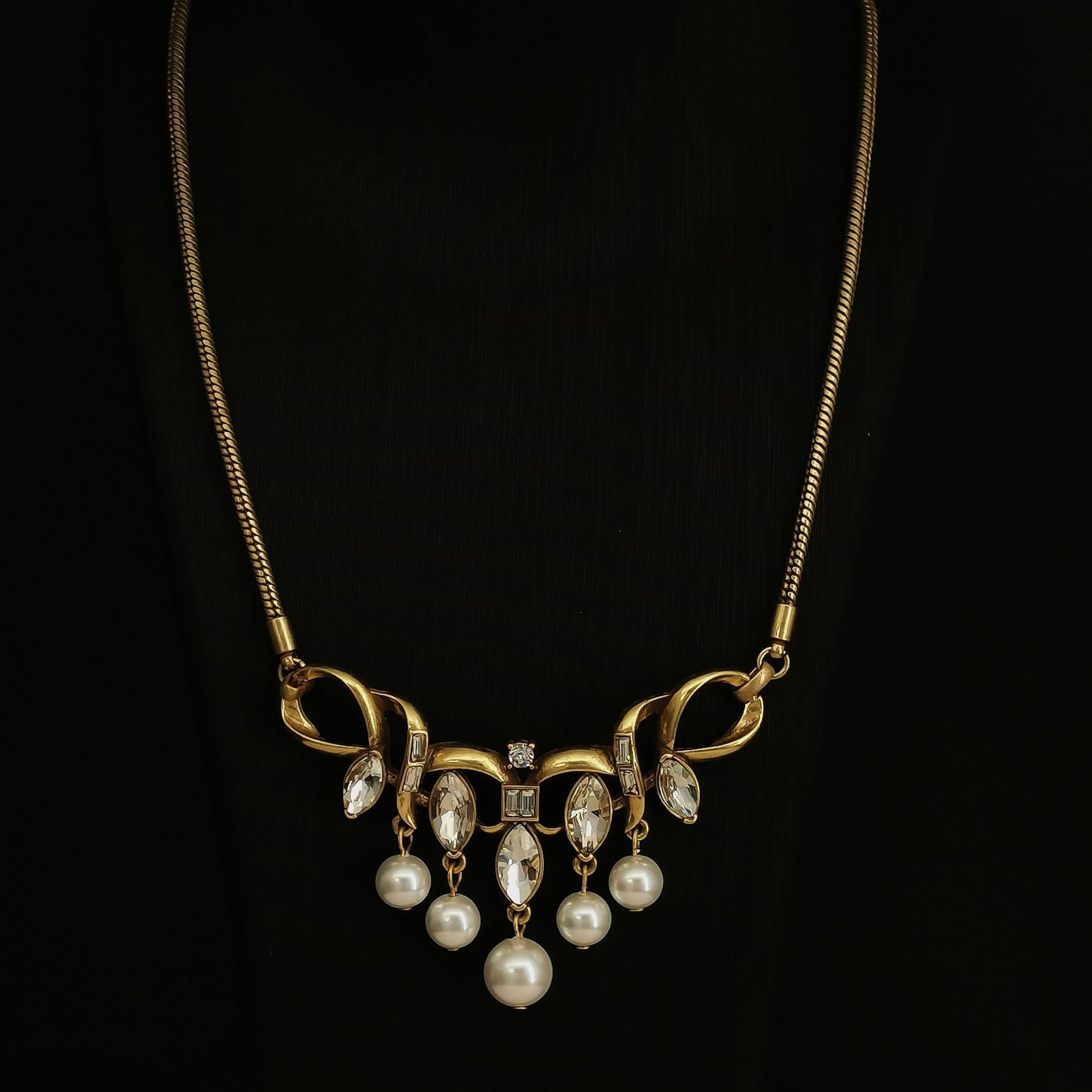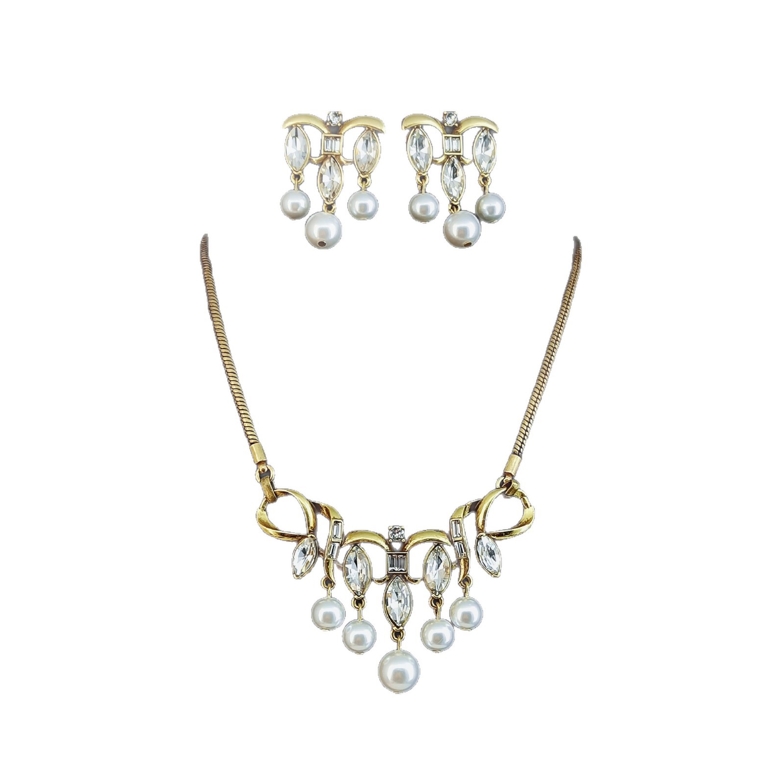 Medieval Style Vintage Zirconium Leaf-Shaped Pearl Linear Beauty Earrings Necklace European and American Style Women's Jewelry Set