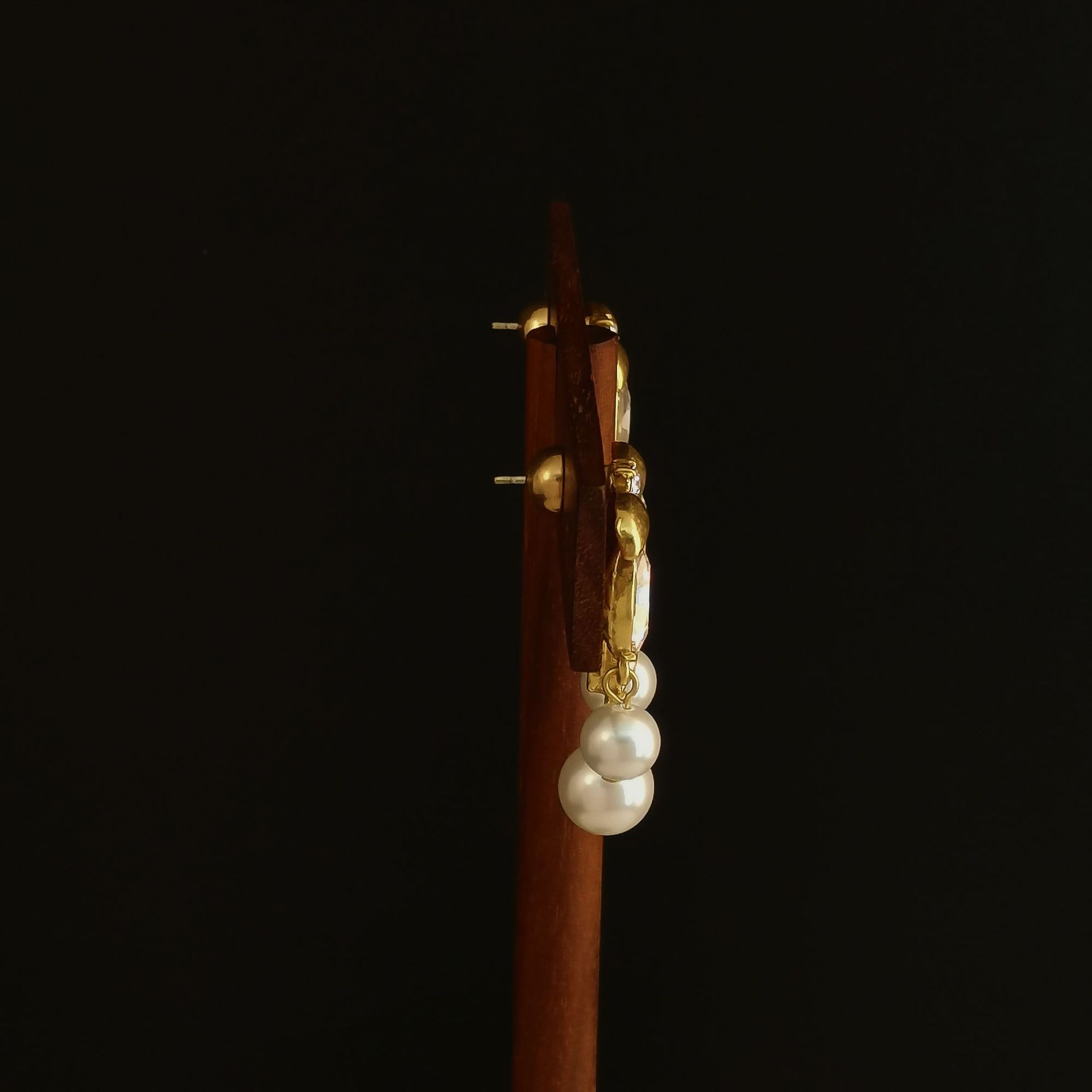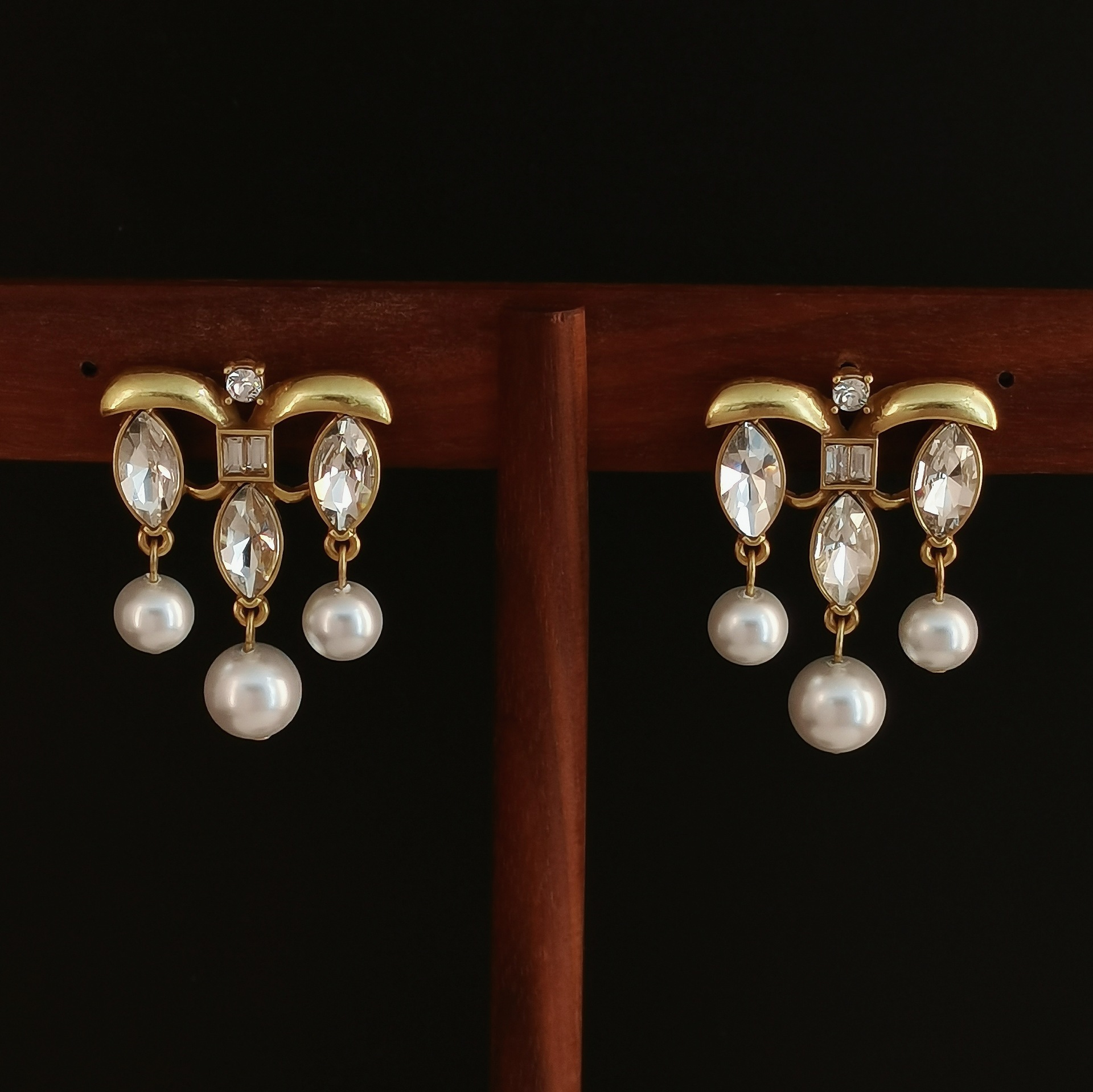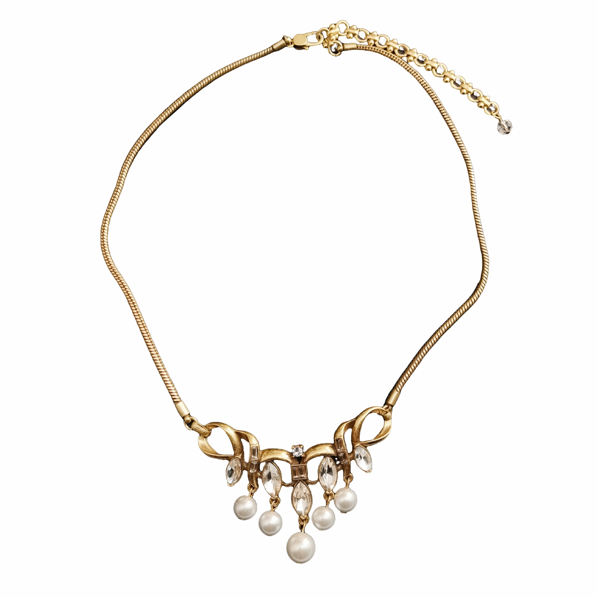 Medieval Style Vintage Zirconium Leaf-Shaped Pearl Linear Beauty Earrings Necklace European and American Style Women's Jewelry Set
