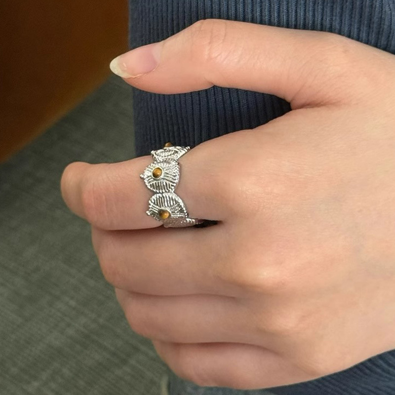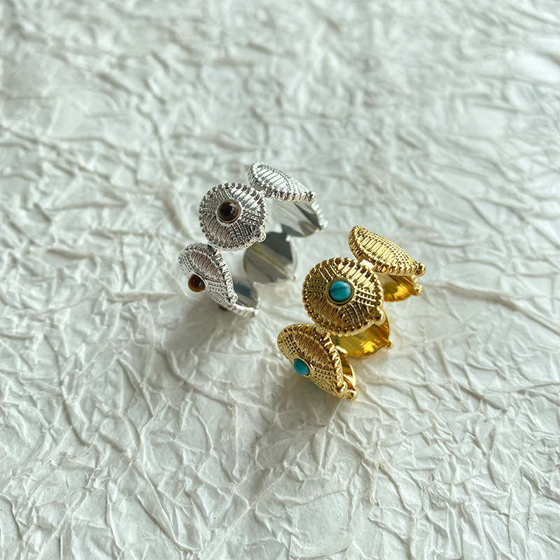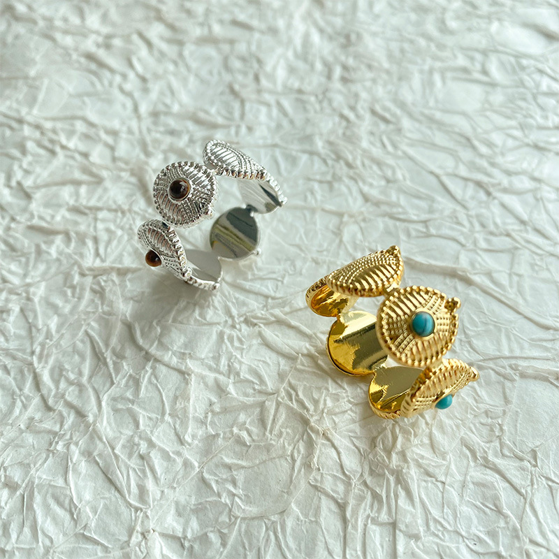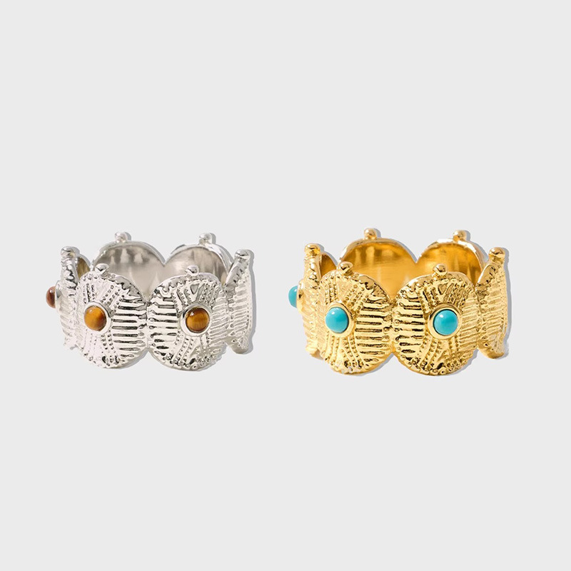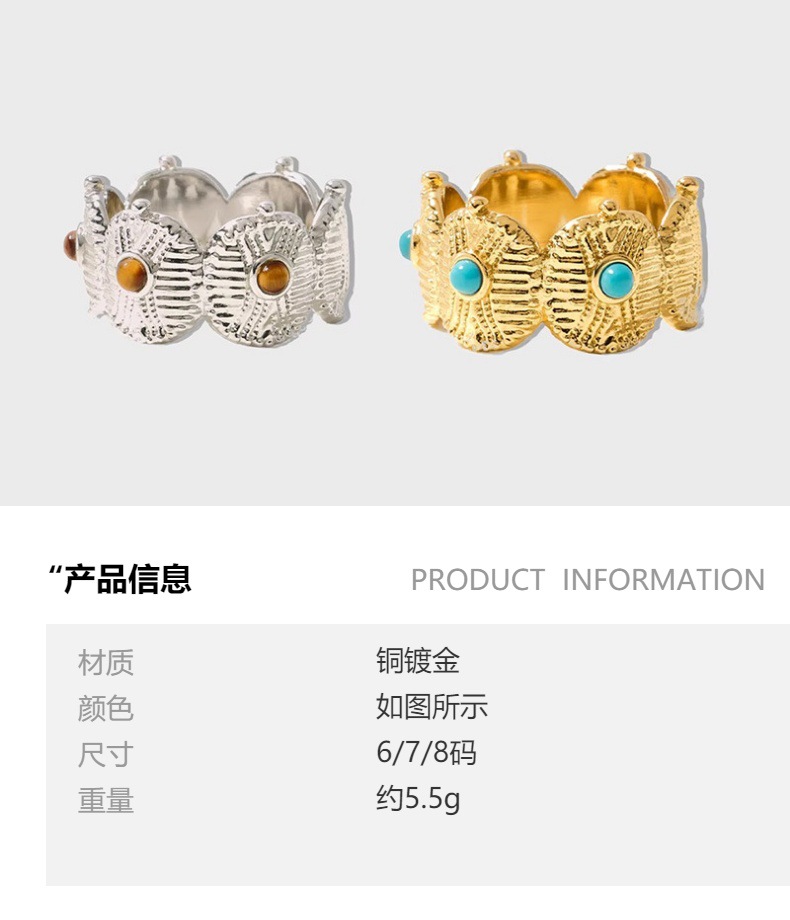 Tribal Totem Gold Coin Set Turquoise Ring Women's Ins Niche Design Sense Set Tiger Eye Gold Silver Ring