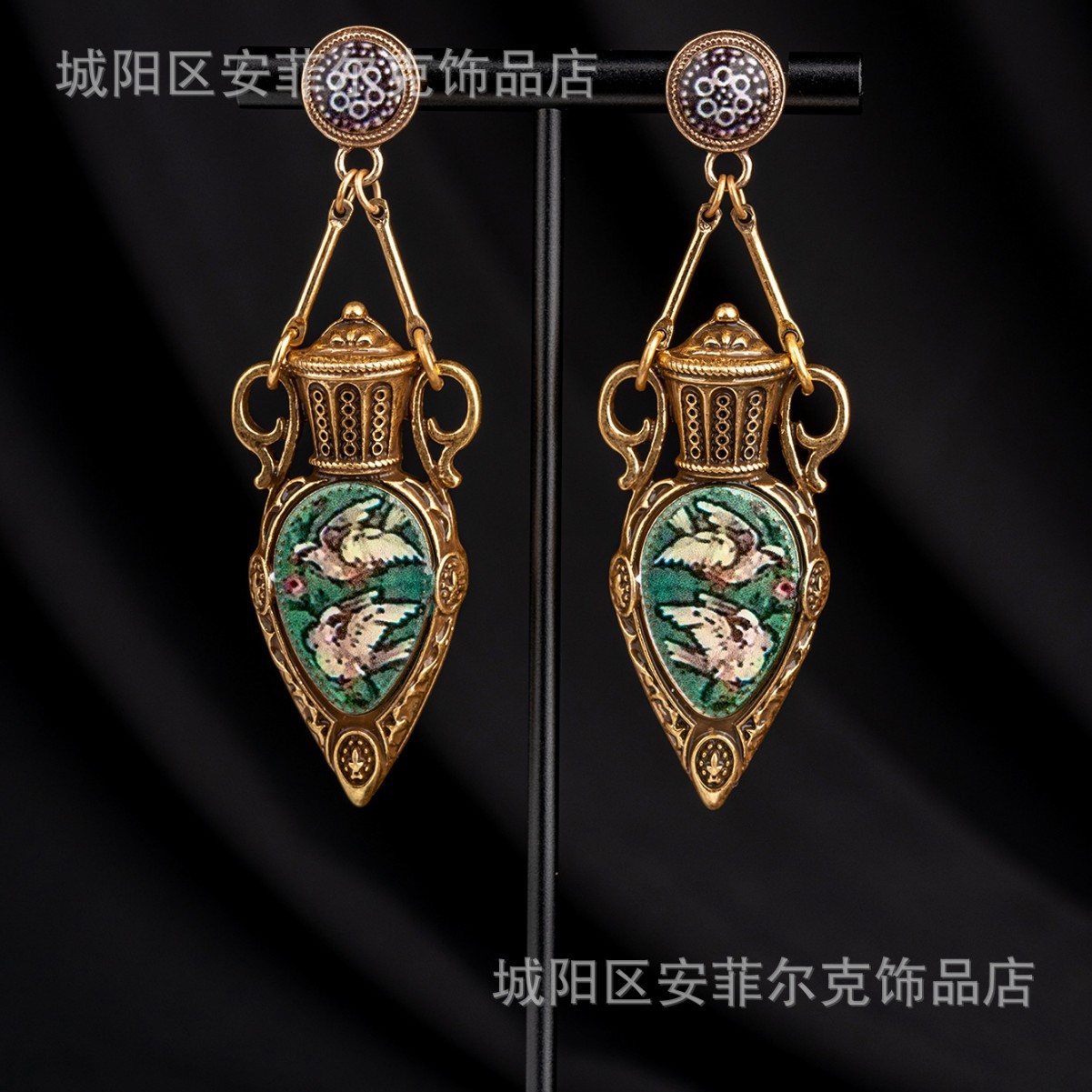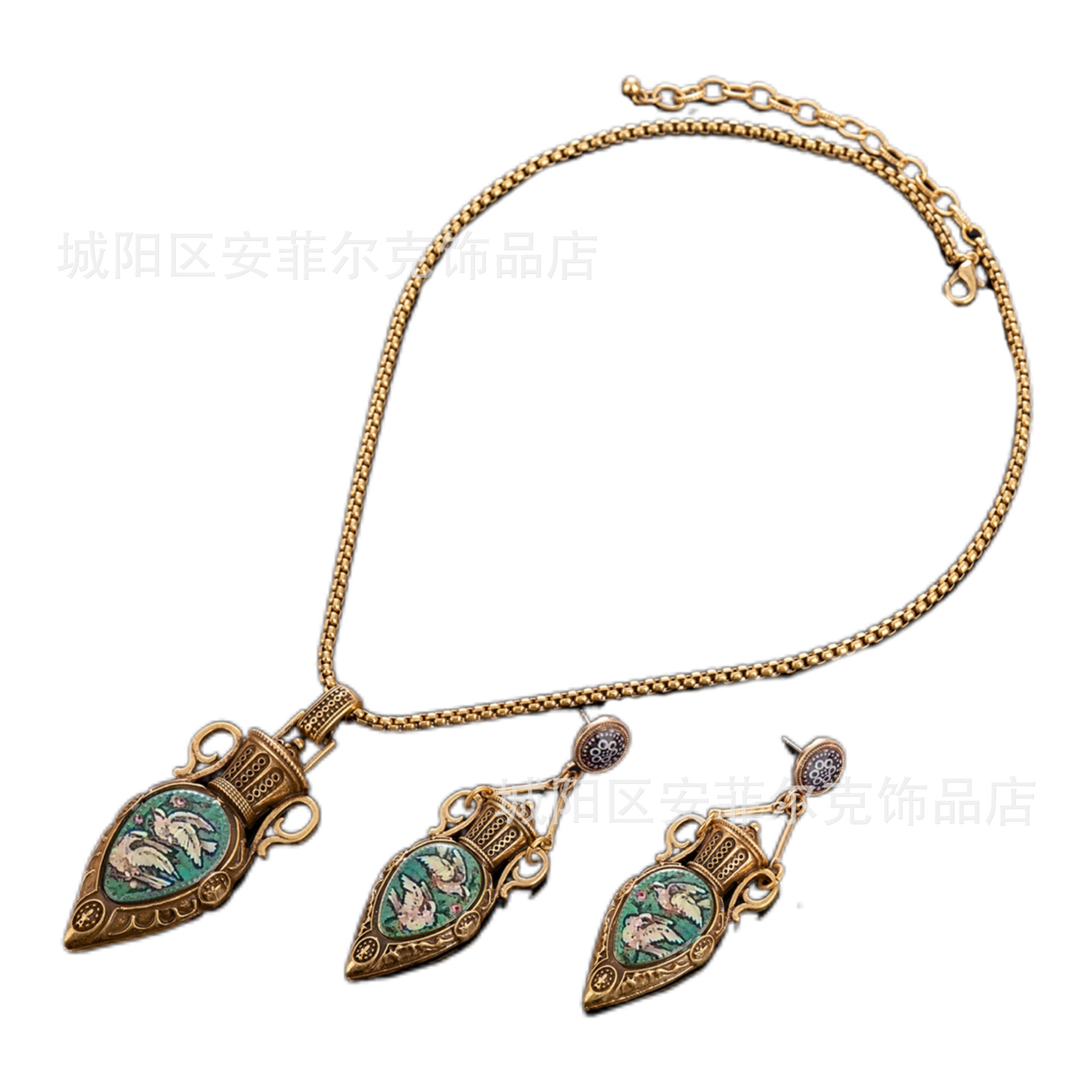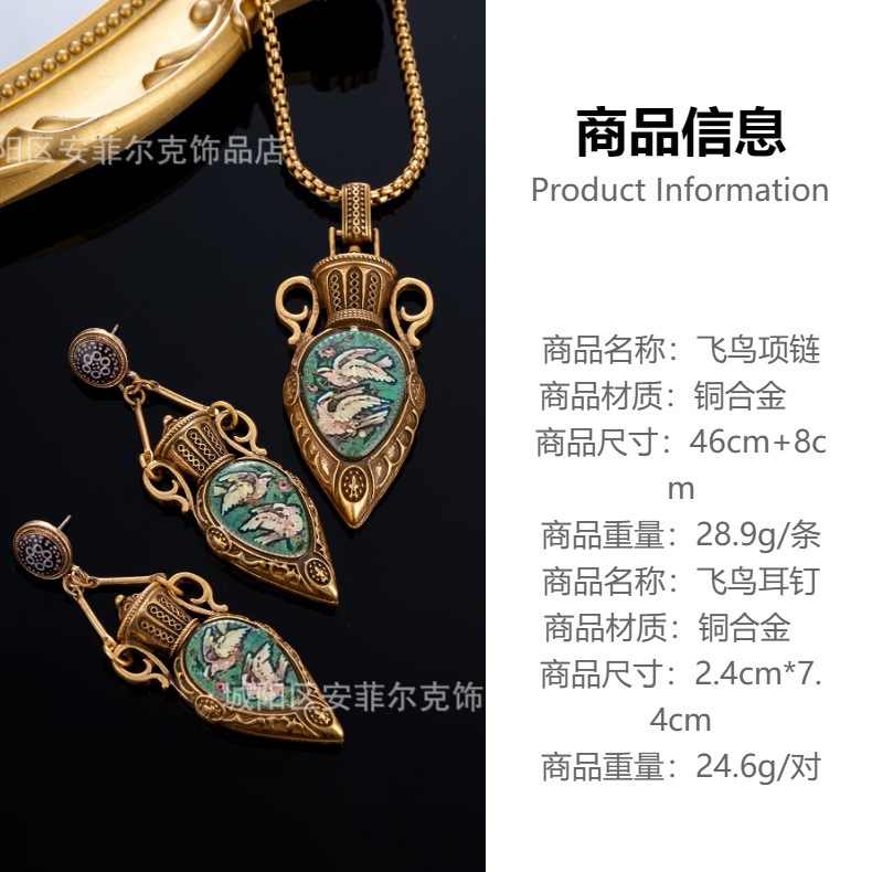 Qingdao Vintage Retro New Chinese Style Pigeon Earrings Necklace Set Palace Light Luxury Set
