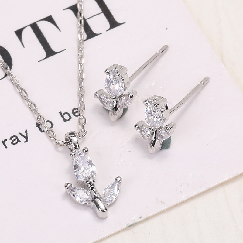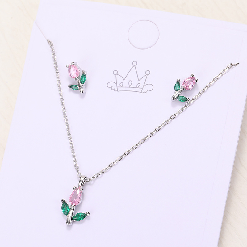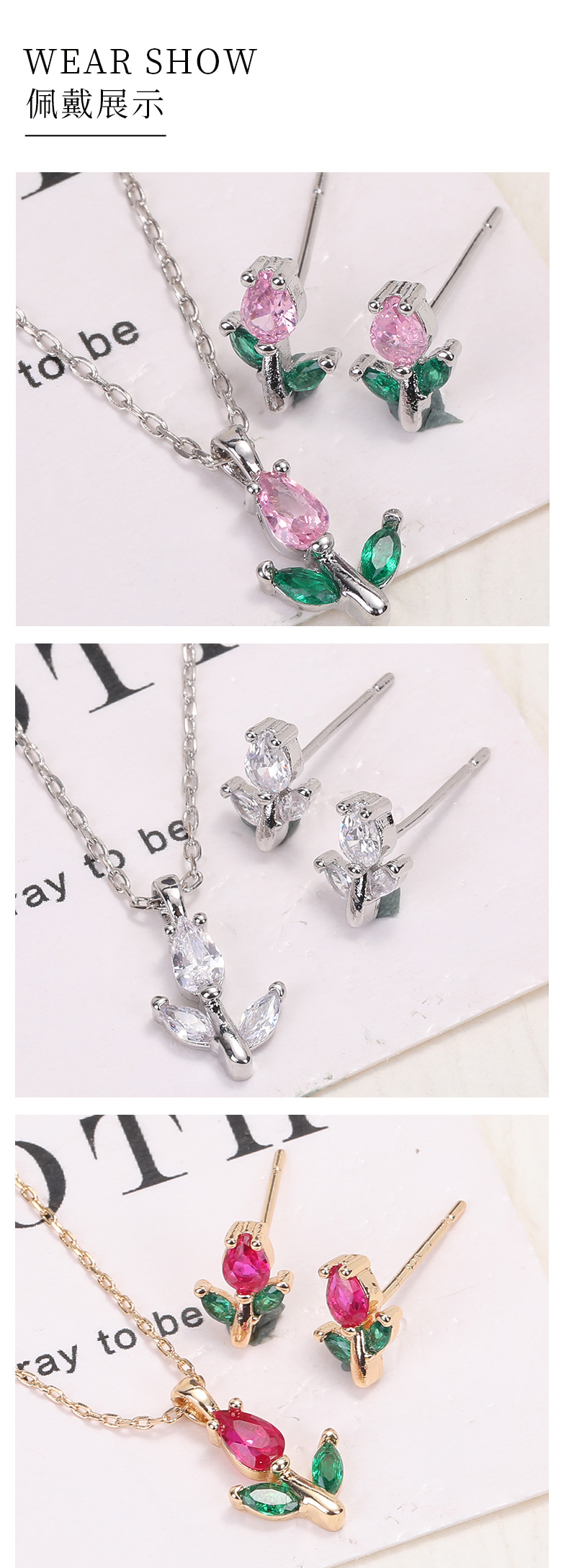New Tulip Jewelry Set for Women, Light Luxury Temperament, Micro-Paved Zircon Flower Necklace, Fresh and Sweet Internet Celebrity Jewelry