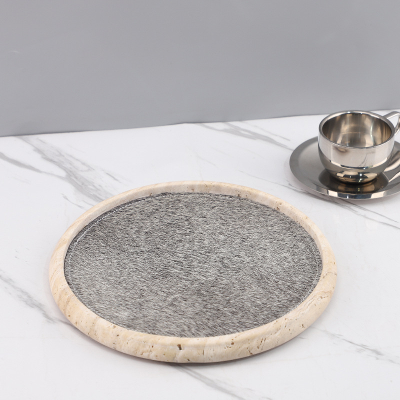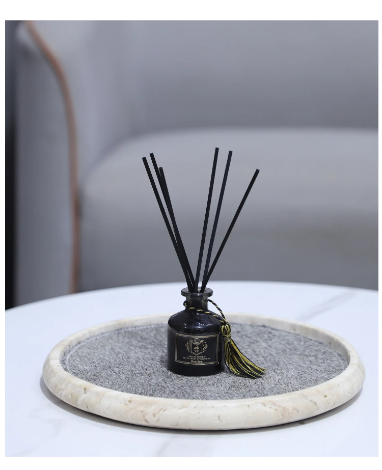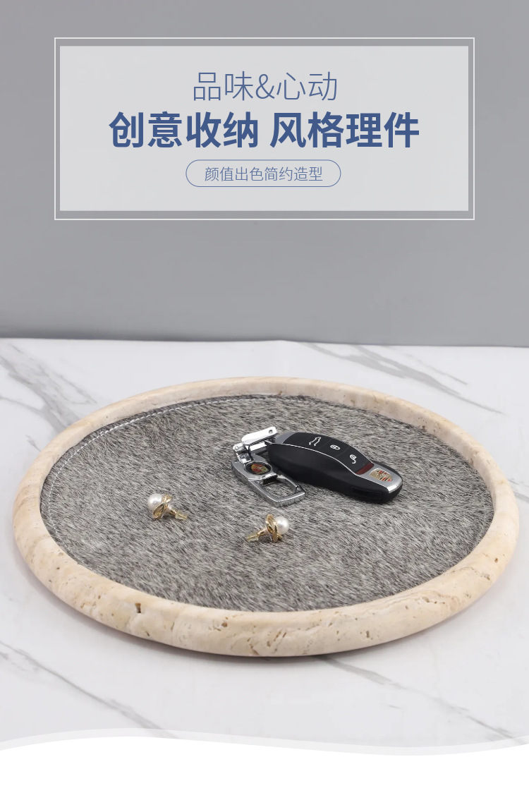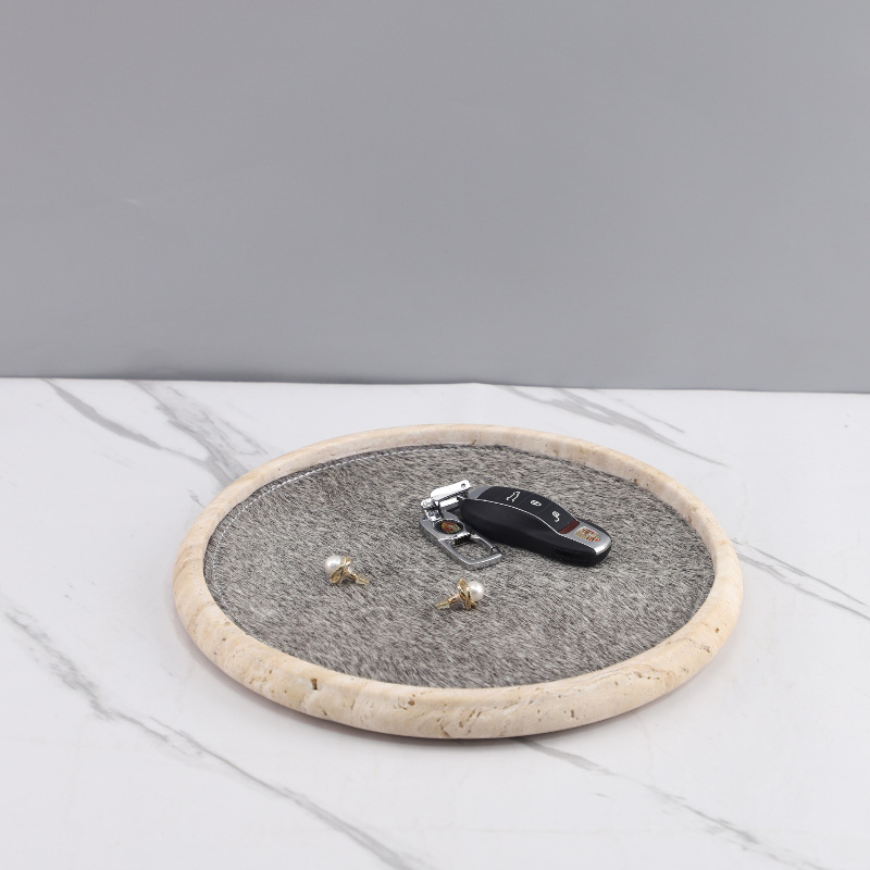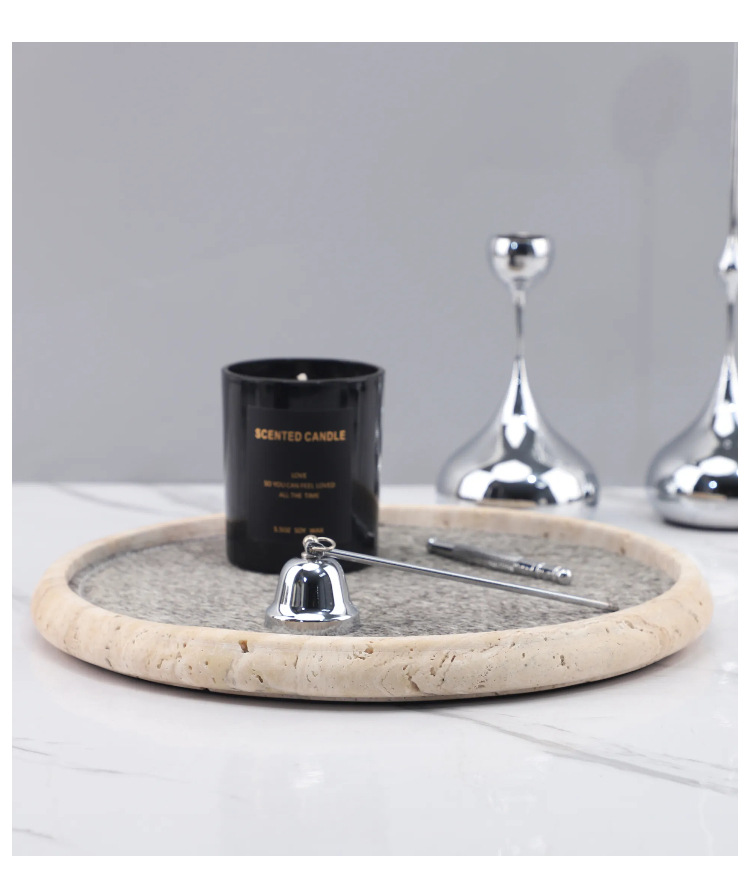Light Luxury Wabi-Sabi Style Natural Yellow Travertine Horsehair Round Aromatherapy Decorative Tray Bedroom Entrance Soft Decoration Home Accessories