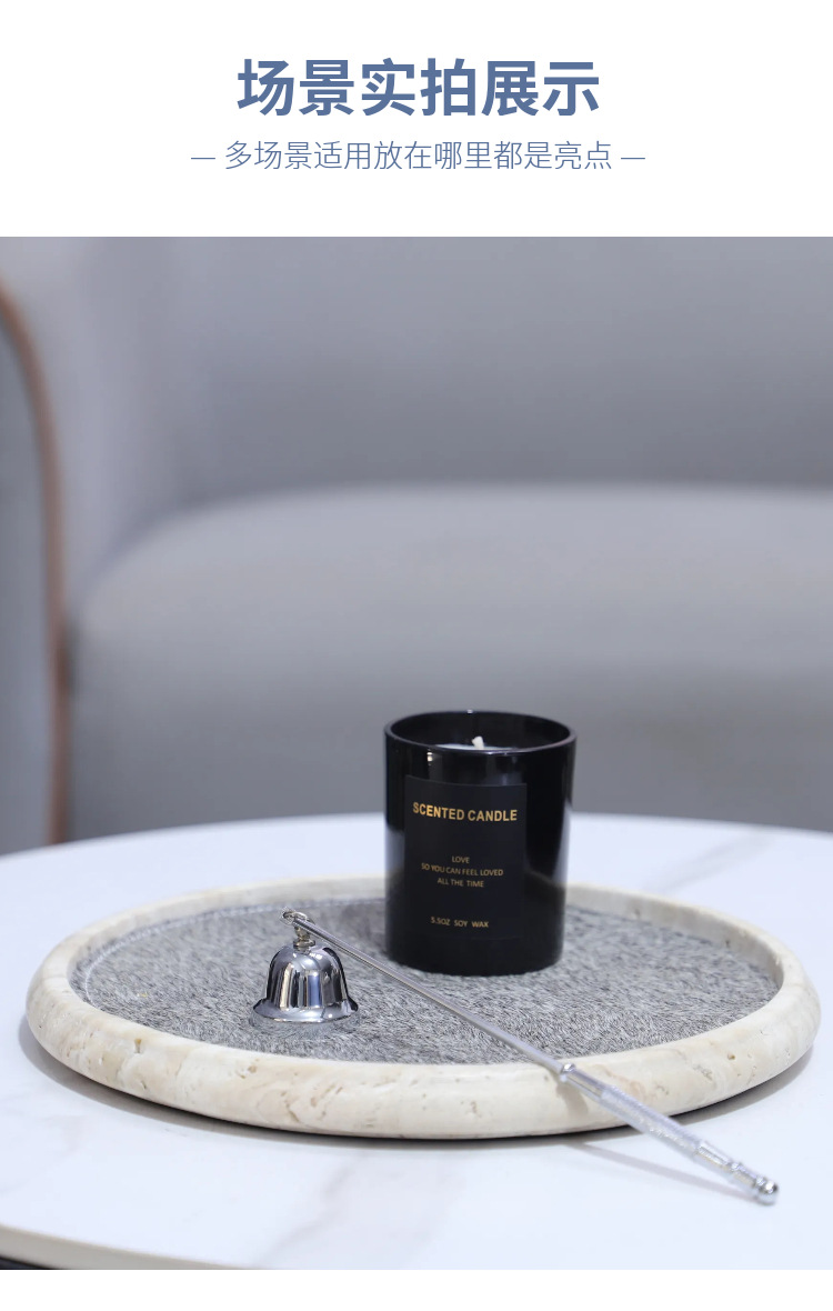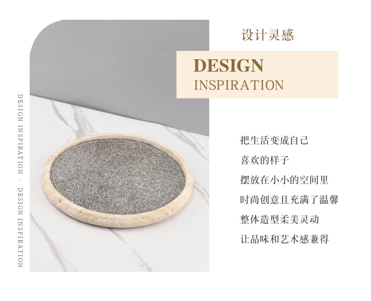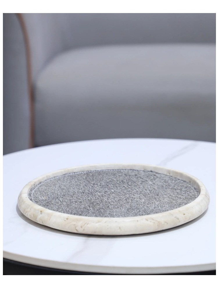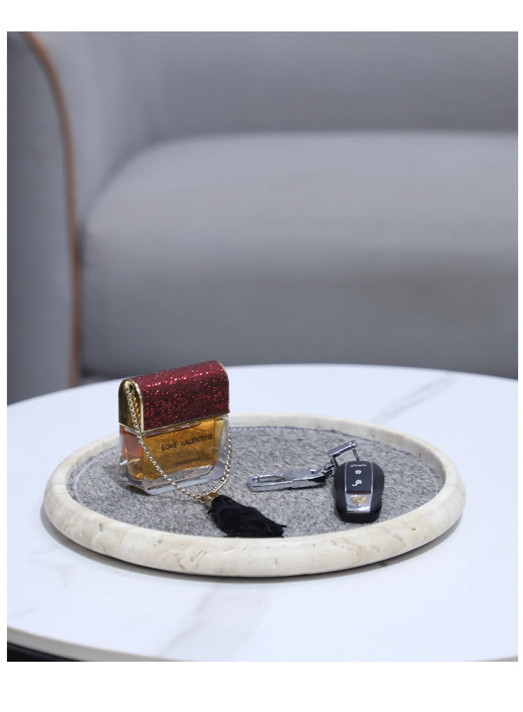 Light Luxury Wabi-Sabi Style Natural Yellow Travertine Horsehair Round Aromatherapy Decorative Tray Bedroom Entrance Soft Decoration Home Accessories
