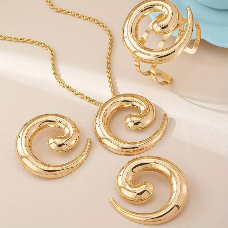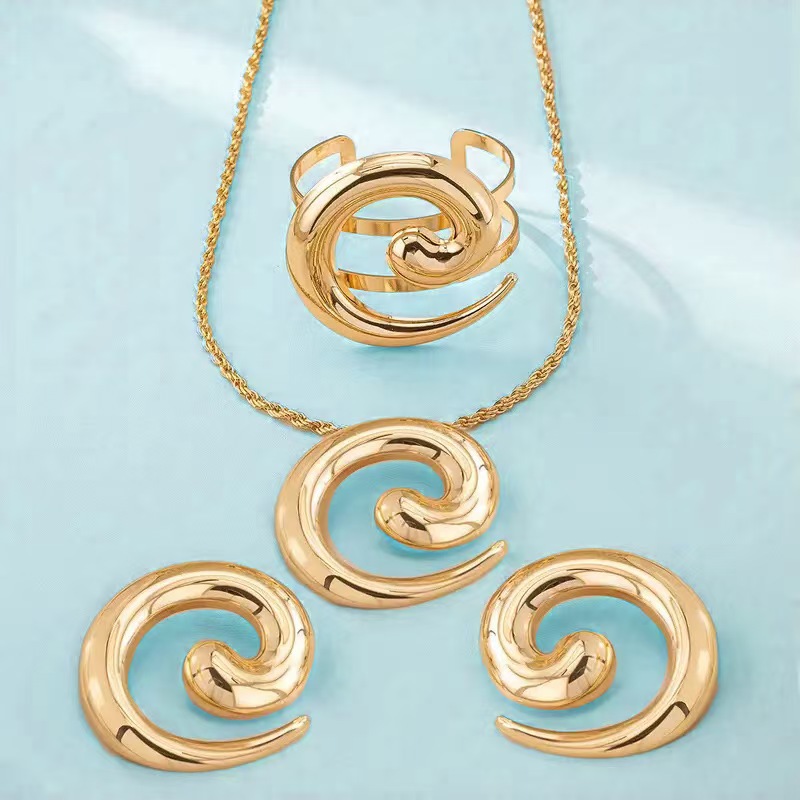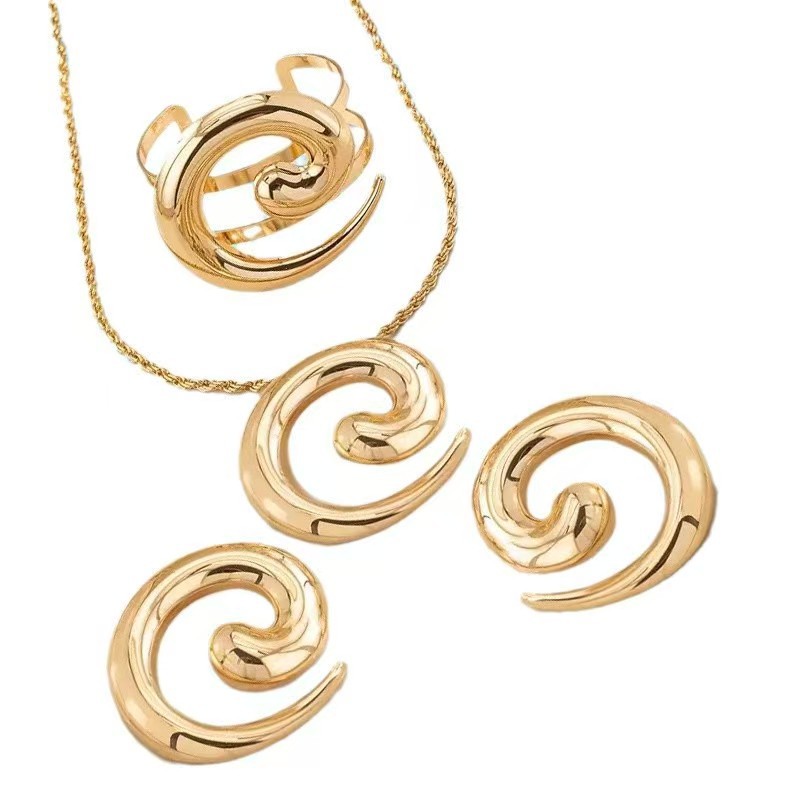 European and American Cross-Border Stylish Simple Fashion Spiral Shape Pendant Necklace Ring Titanium Steel Plated 18K Gold Jewelry Set