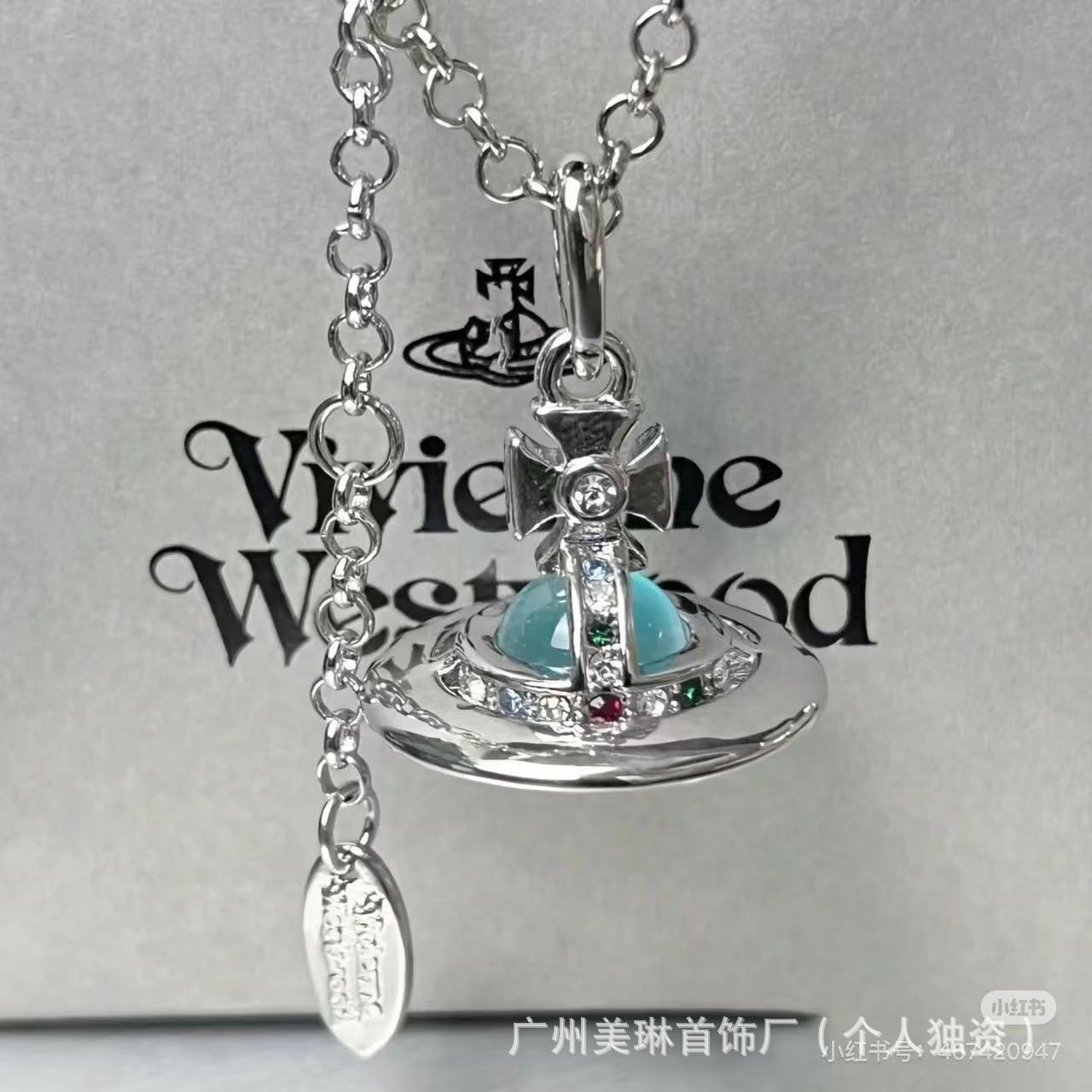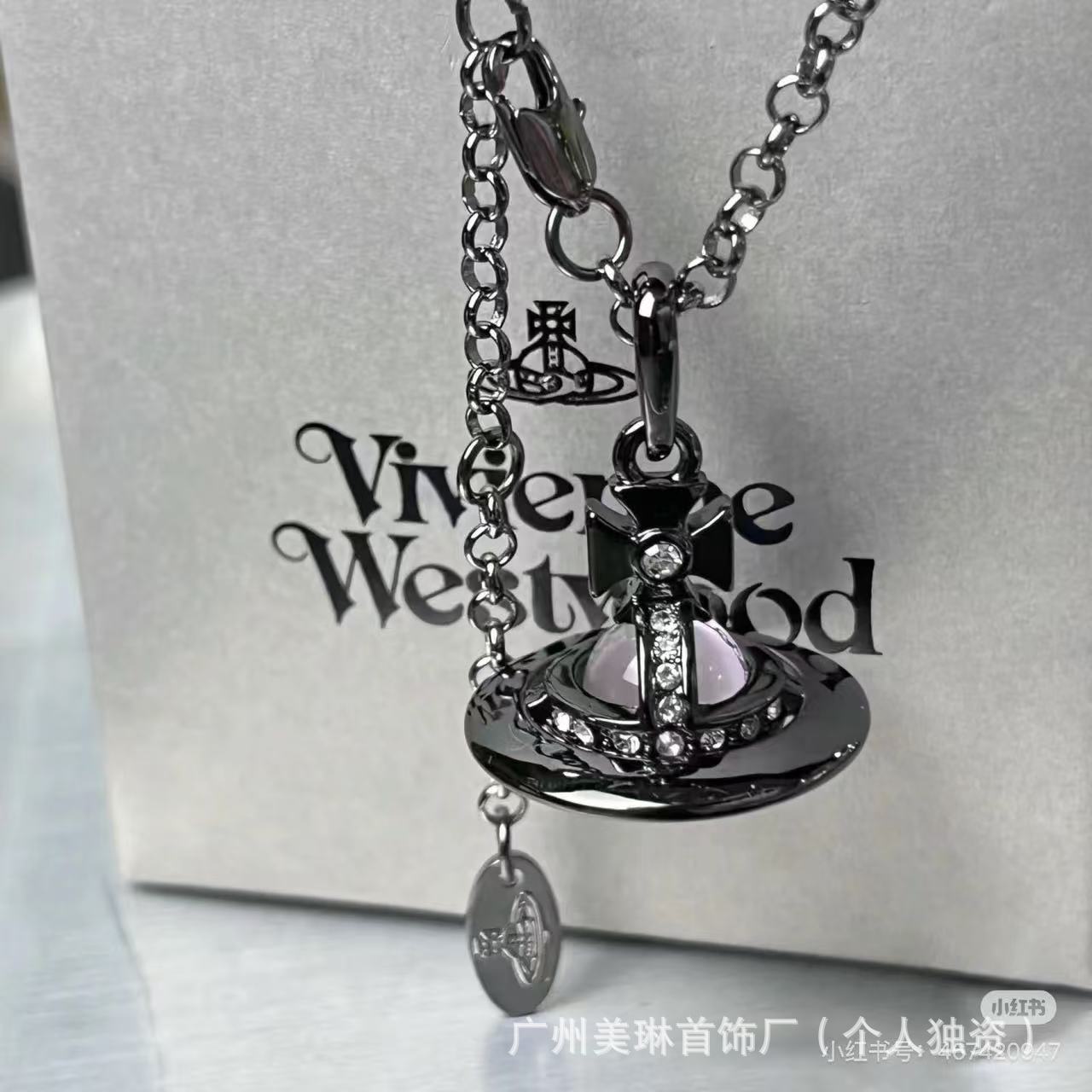 High Version Empress Medium Orb Necklace Three-Dimensional Saturn Chain with Diamonds Multicolor Planet Pilot Popular Choker