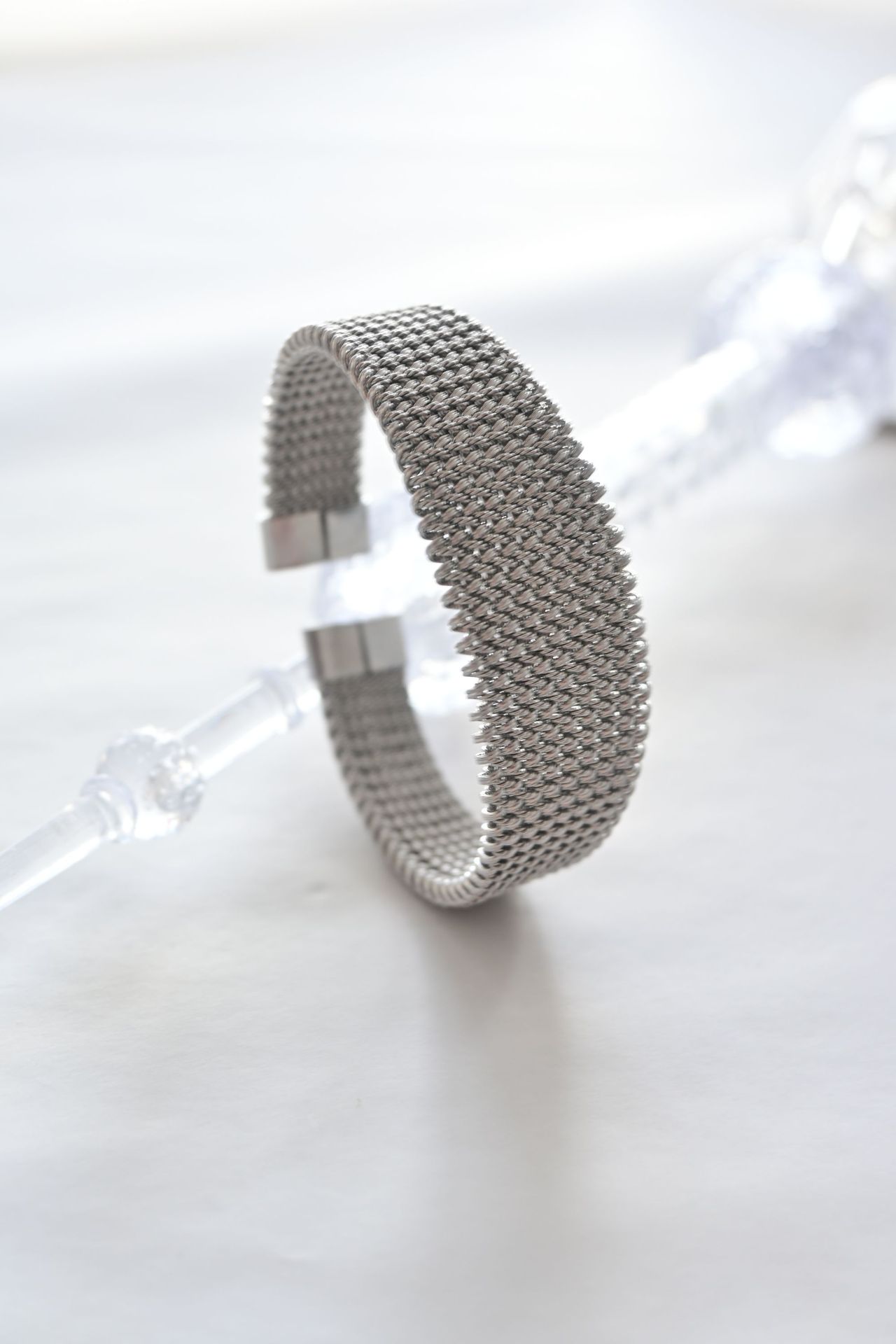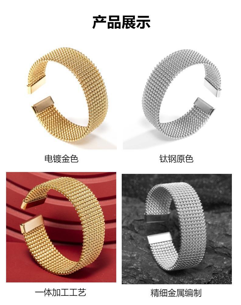 European and American Cross-Border Ring-Shaped Soft Titanium Steel Bracelet with Dense Wire Embossed Accessible Luxury Bracelet Gold C-Shaped Adjustable Jewelry