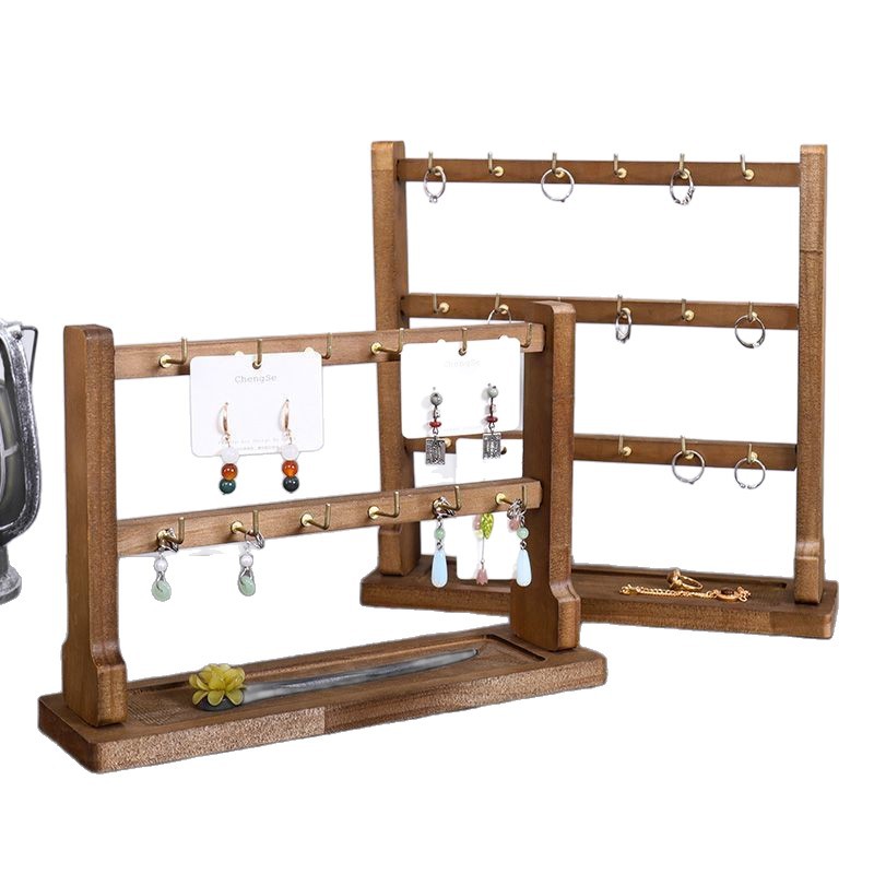 Solid Wood Keychain Earring Display Rack Storage Earrings with Hooks Jewelry Earrings Jewelry Rack Necklace Bracelet Props