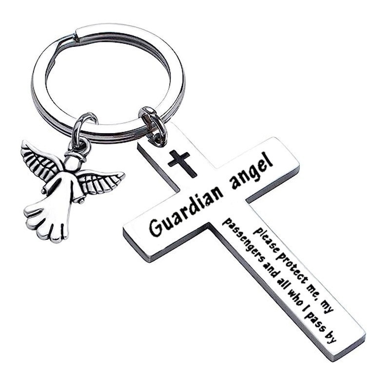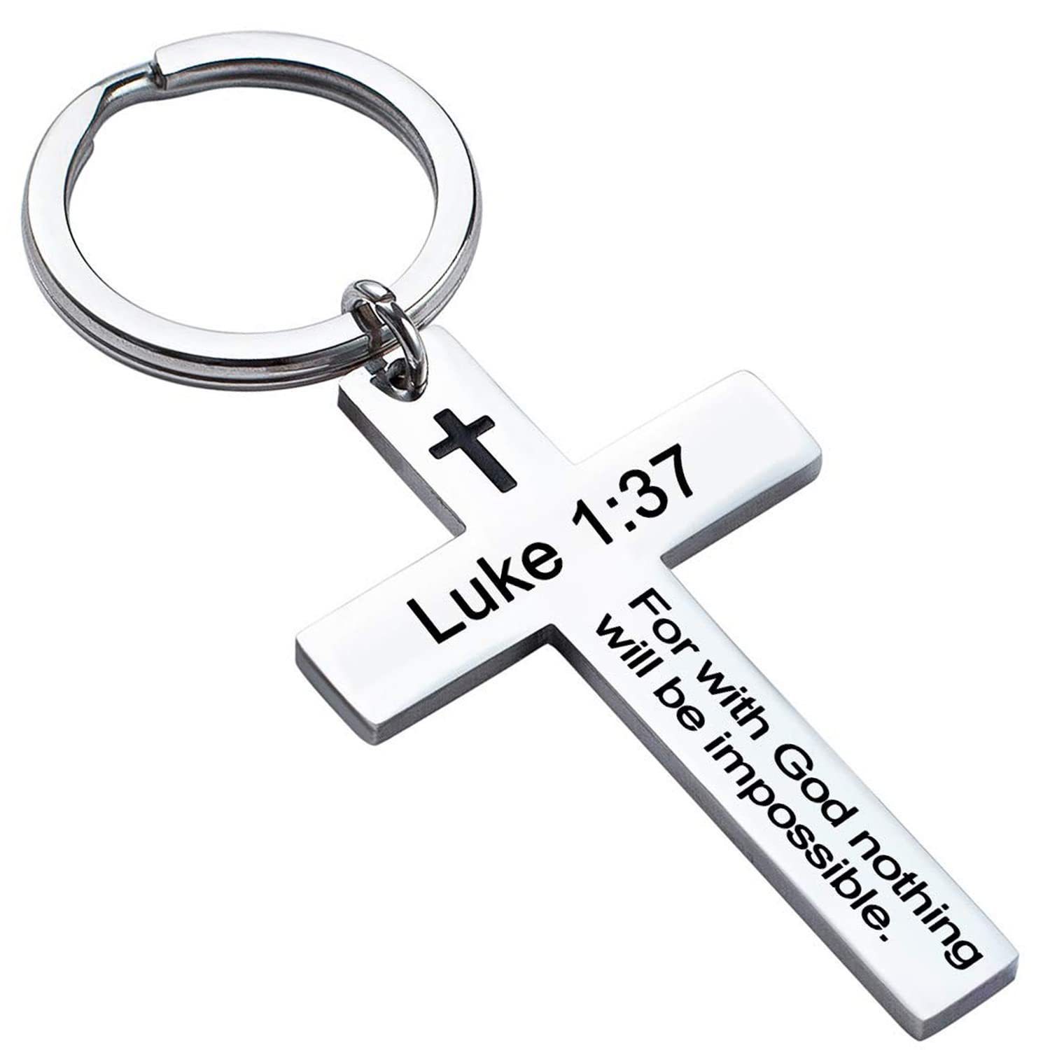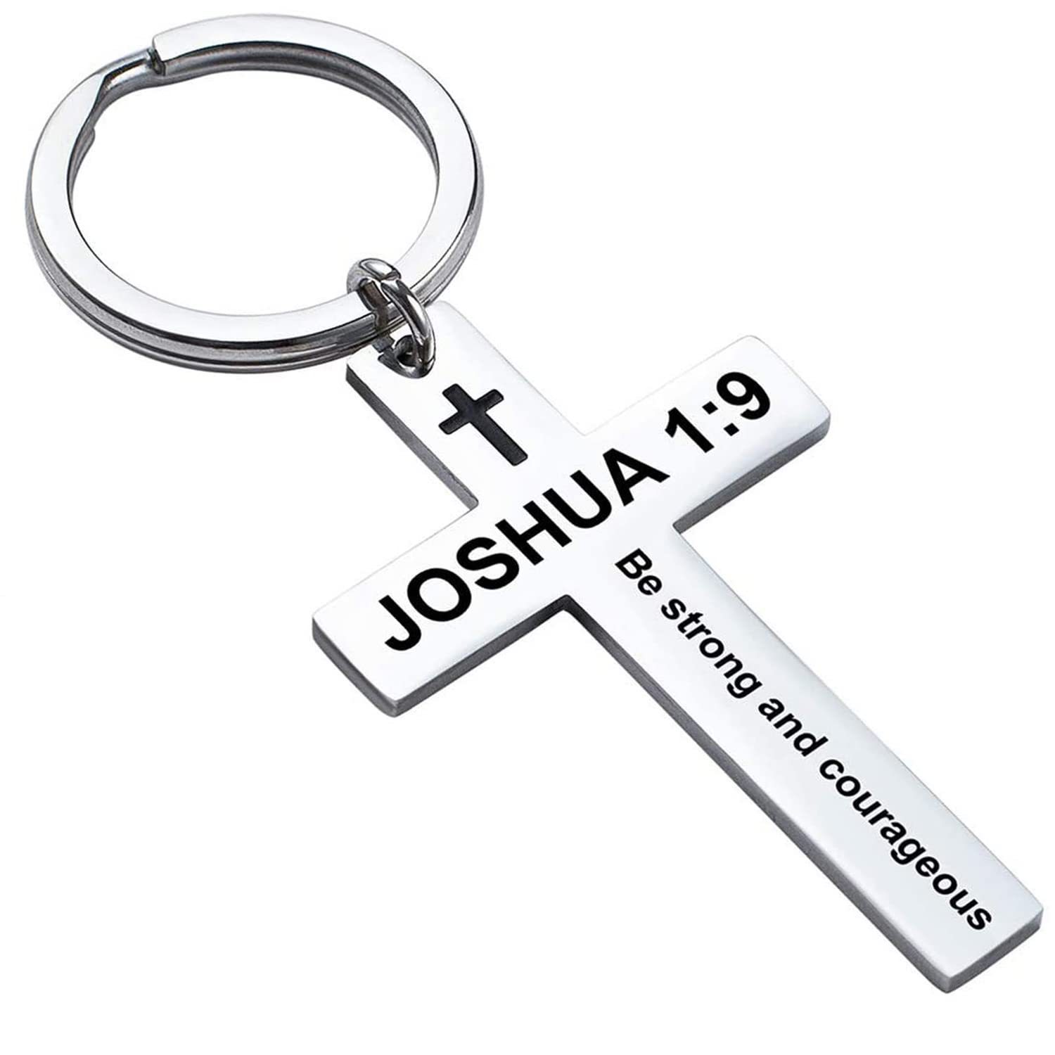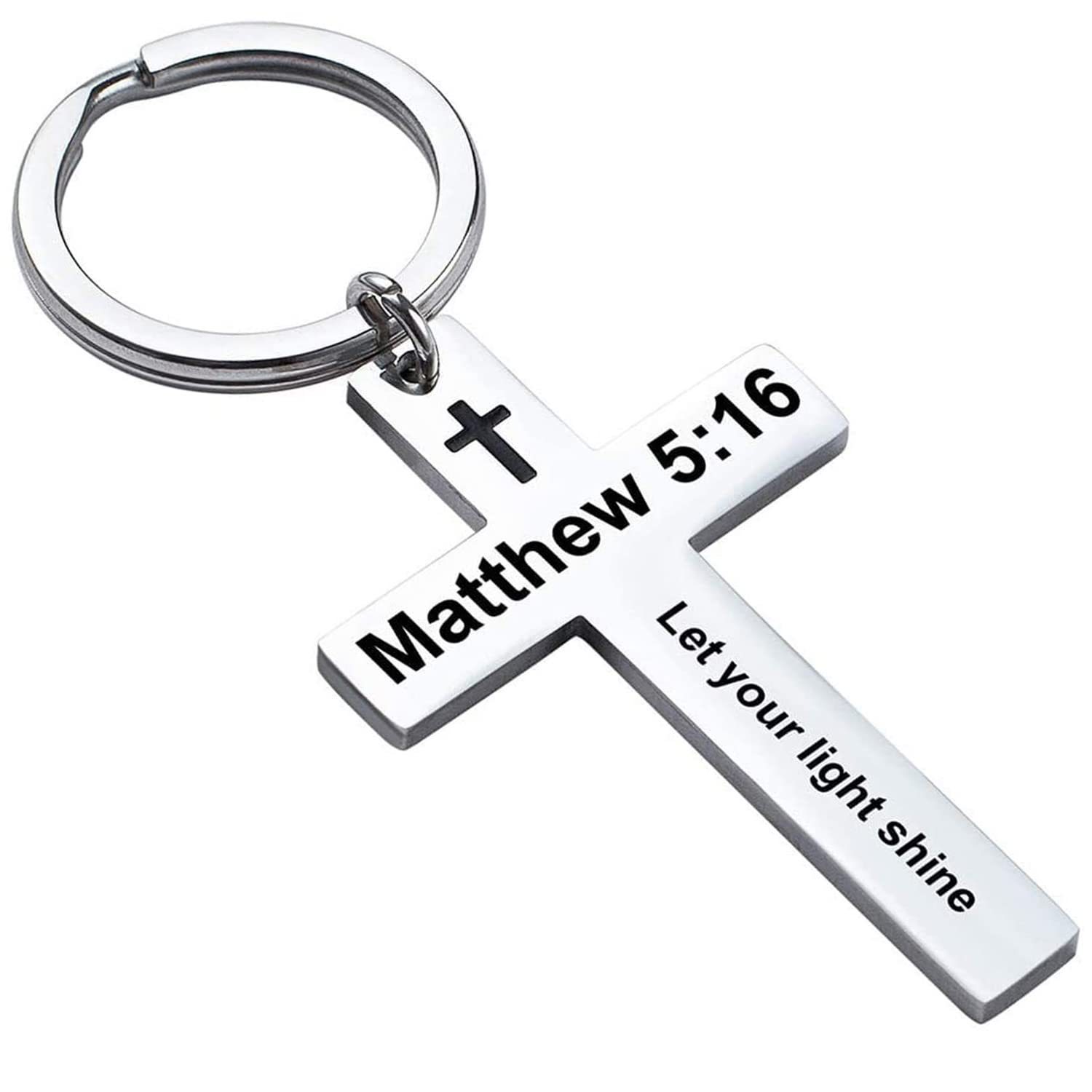 Amazon Cross-Border Cross Keychain Stainless Steel Keychain Pendant Necklace Engraved Christian Commemorative Gift