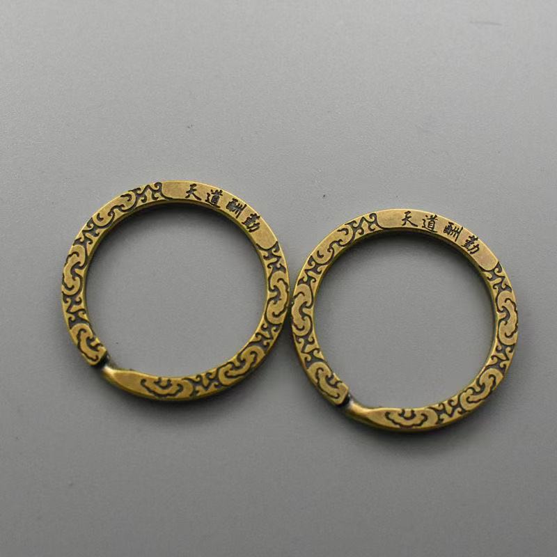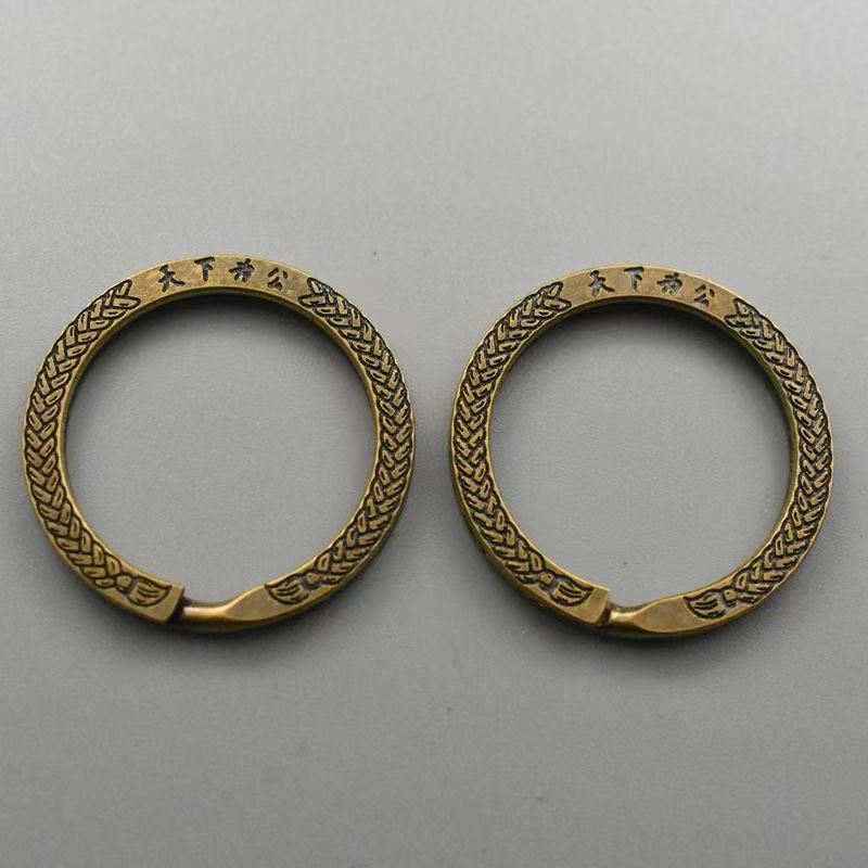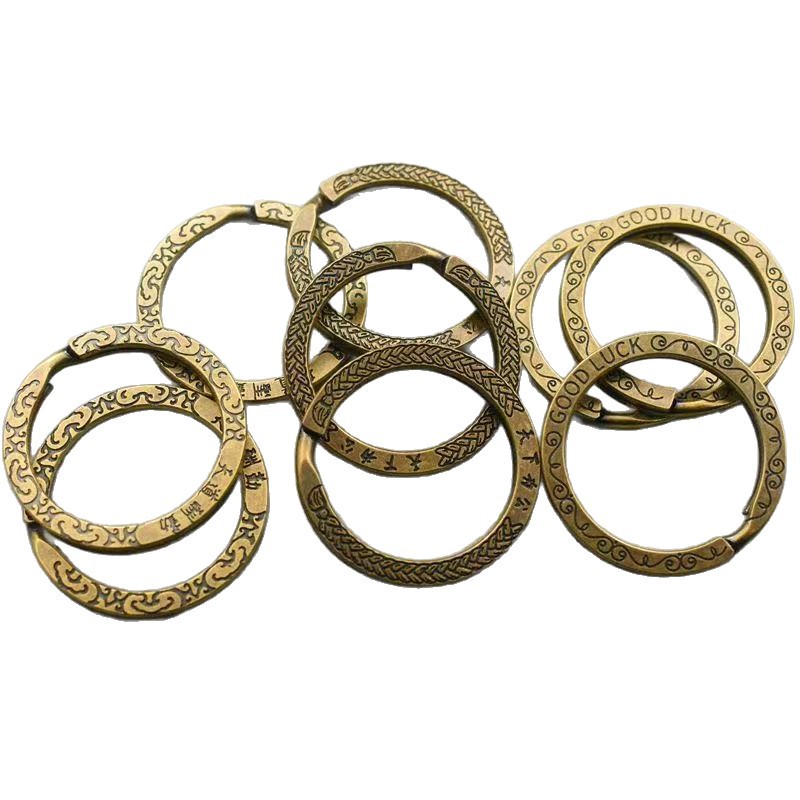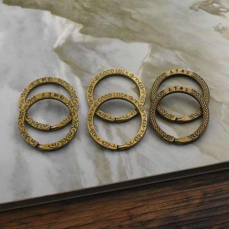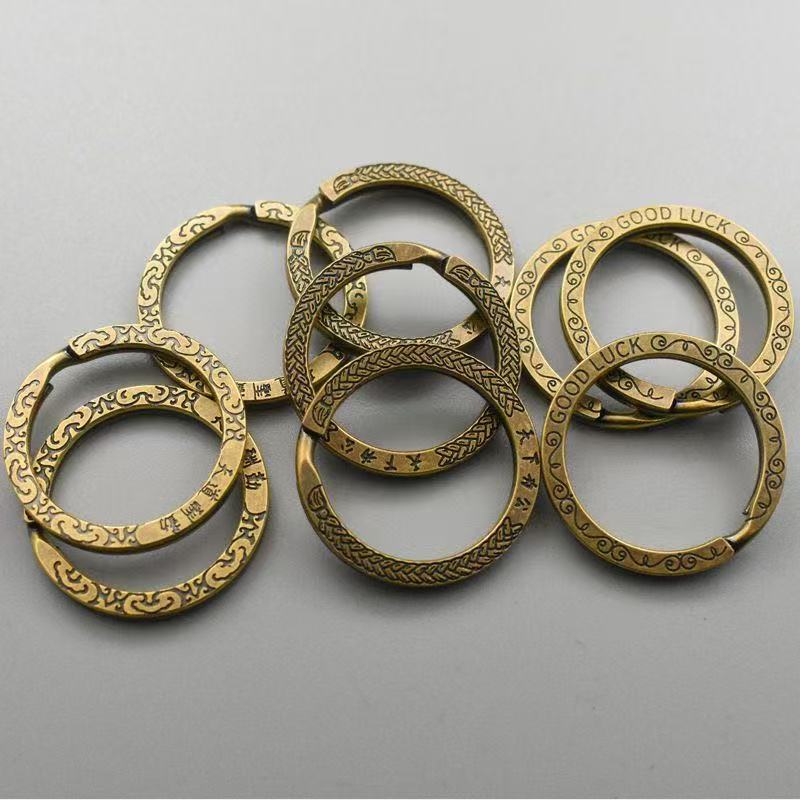 Vintage Pure Copper Engraved Pattern Decorative Copper Ring Keychain Bag Key Ring DIY Handmade Leather Goods
