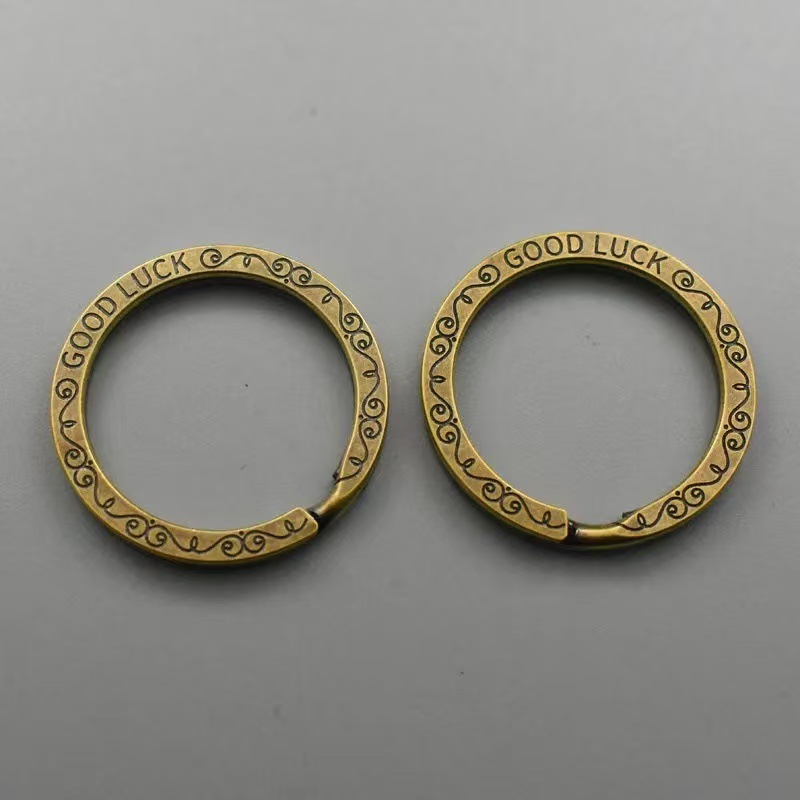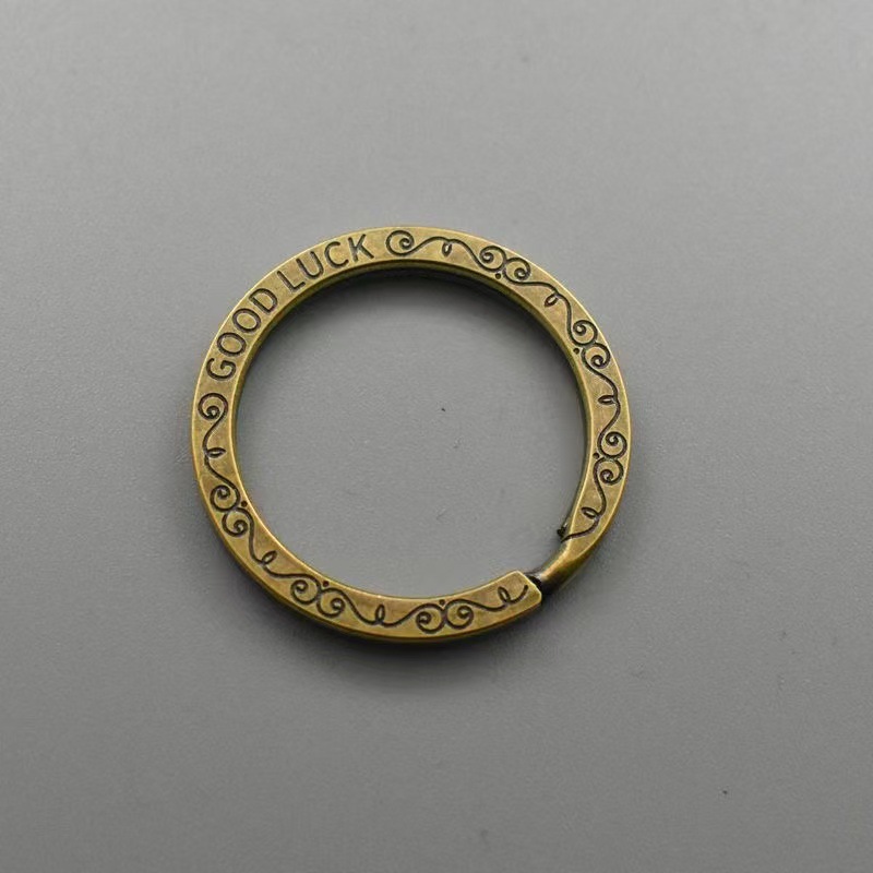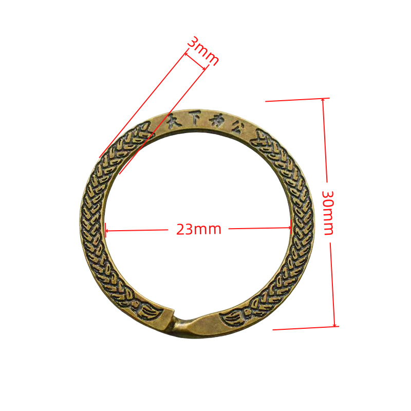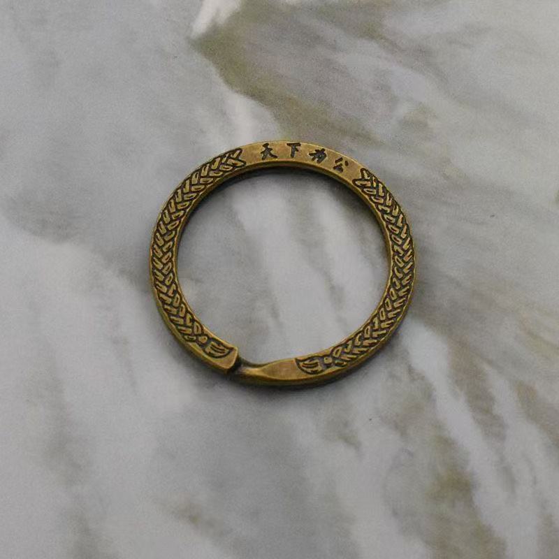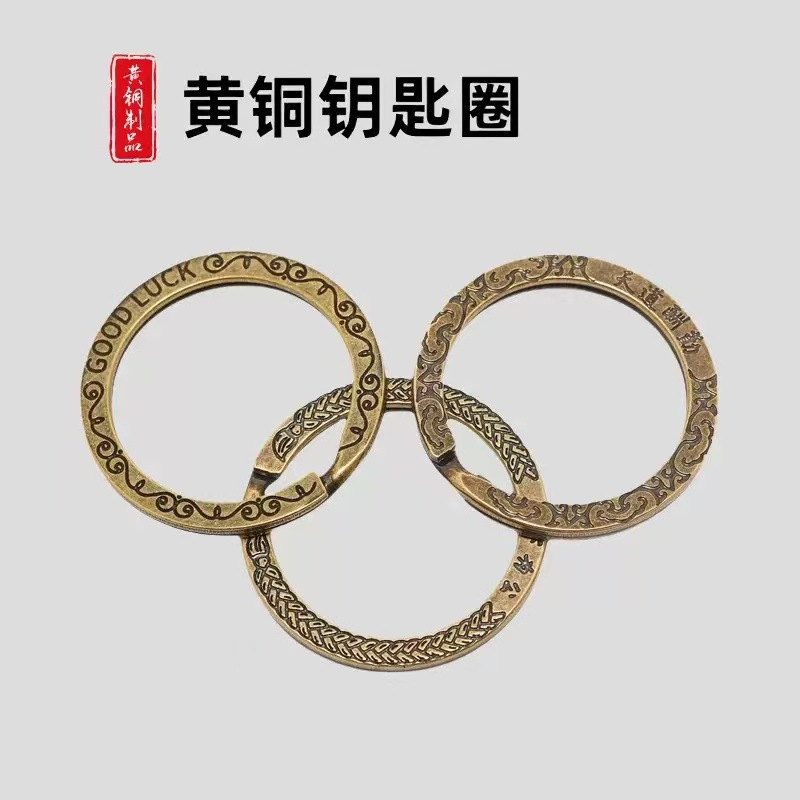 Vintage Pure Copper Engraved Pattern Decorative Copper Ring Keychain Bag Key Ring DIY Handmade Leather Goods