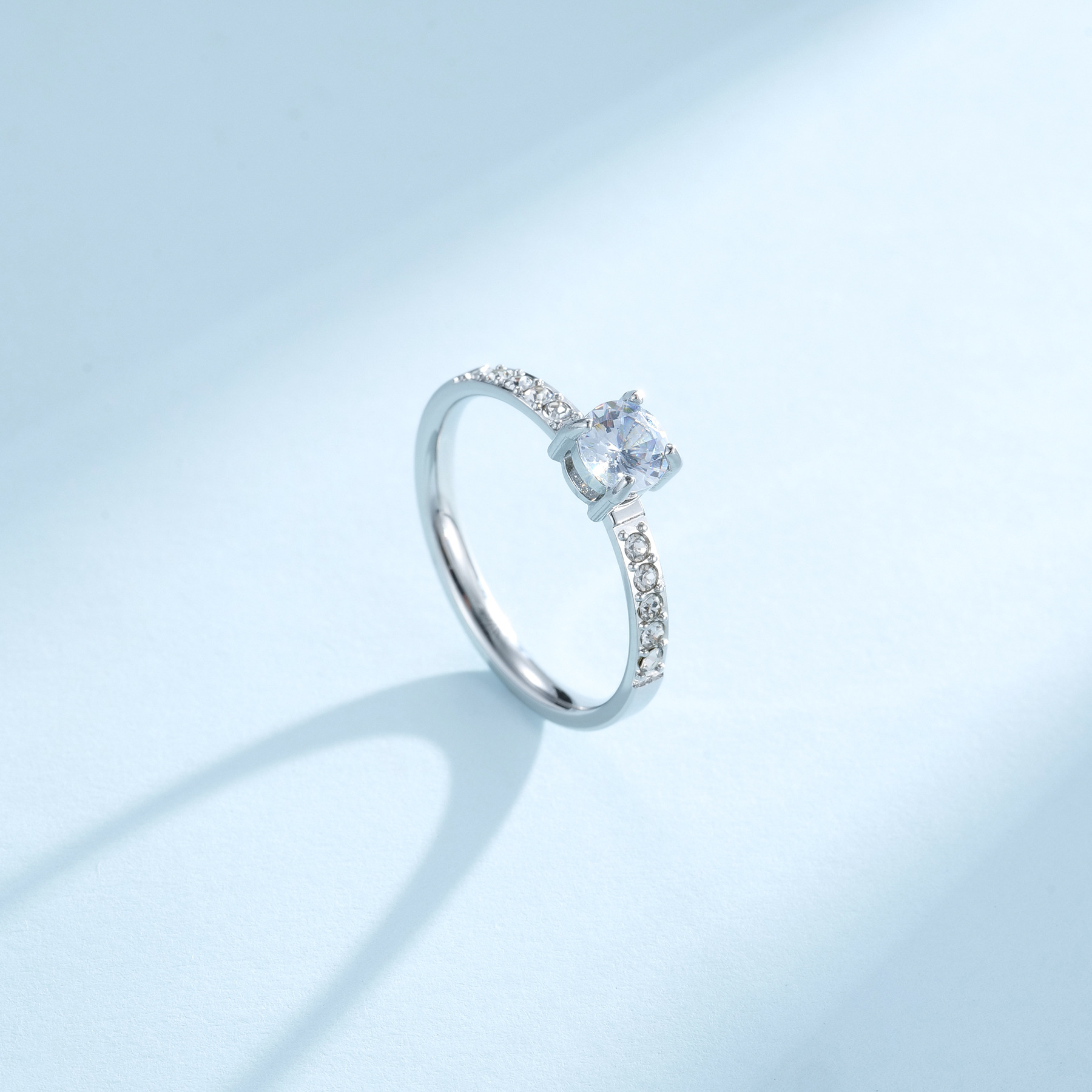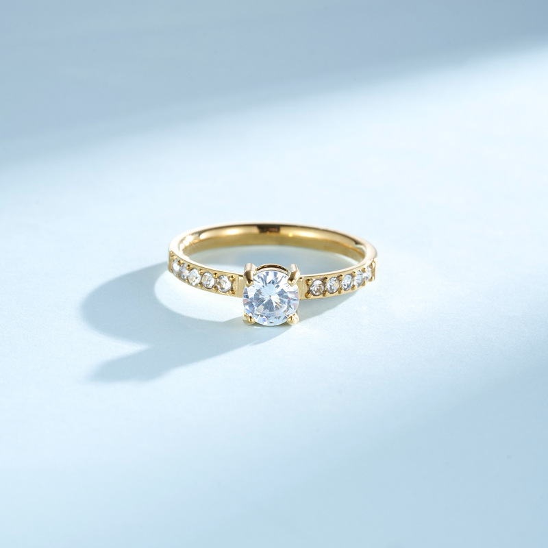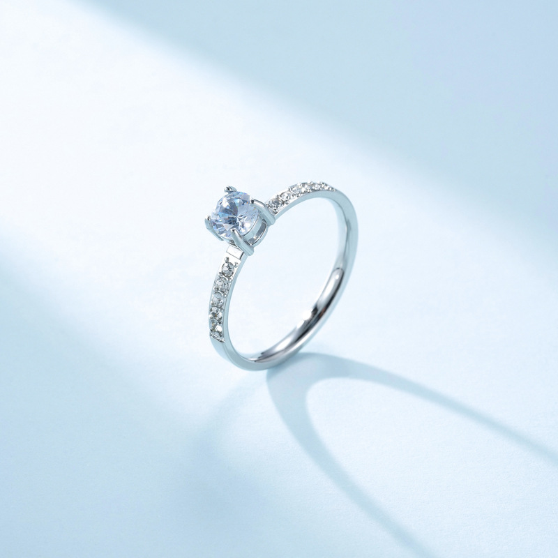 Cross-Border European and American Hot-Selling Pigeon Egg Diamond Stainless Steel Ring French Wedding Engagement Party Exquisite Jewelry Accessories