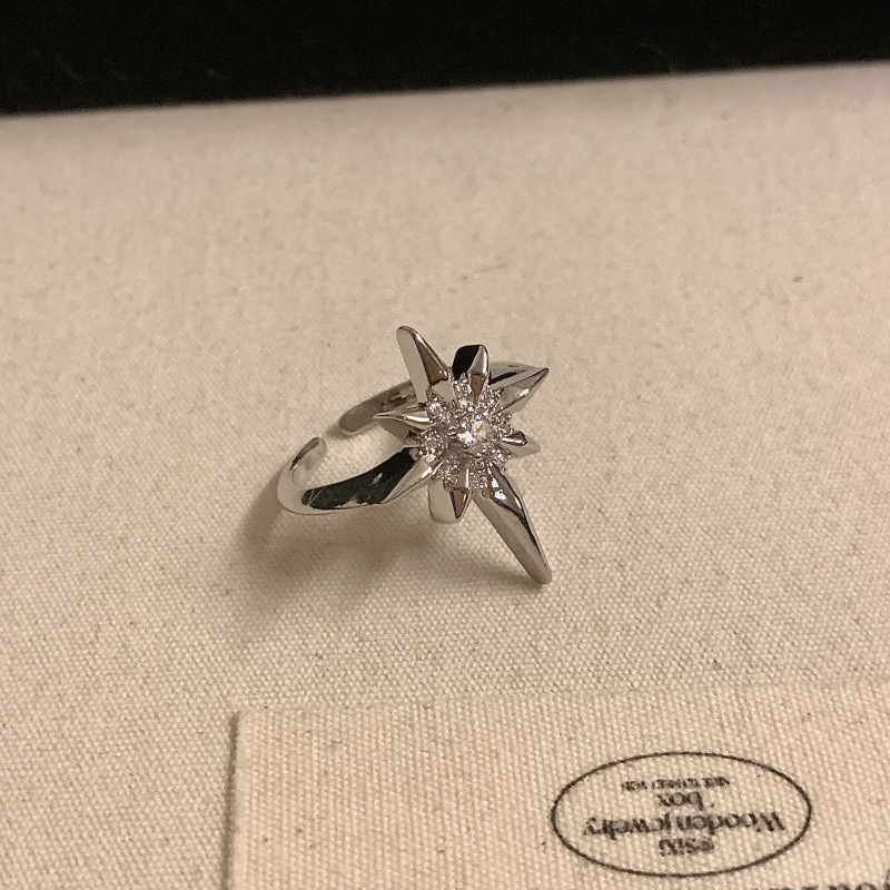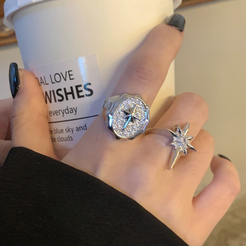 Sweet and Cool Hot Girl Style Copper Plated Real Gold Star Micro-Paved Zircon Open Stacking Ring Light Luxury Star Stacking Ring