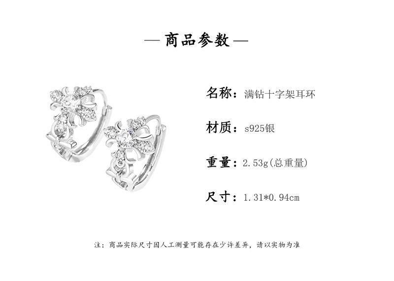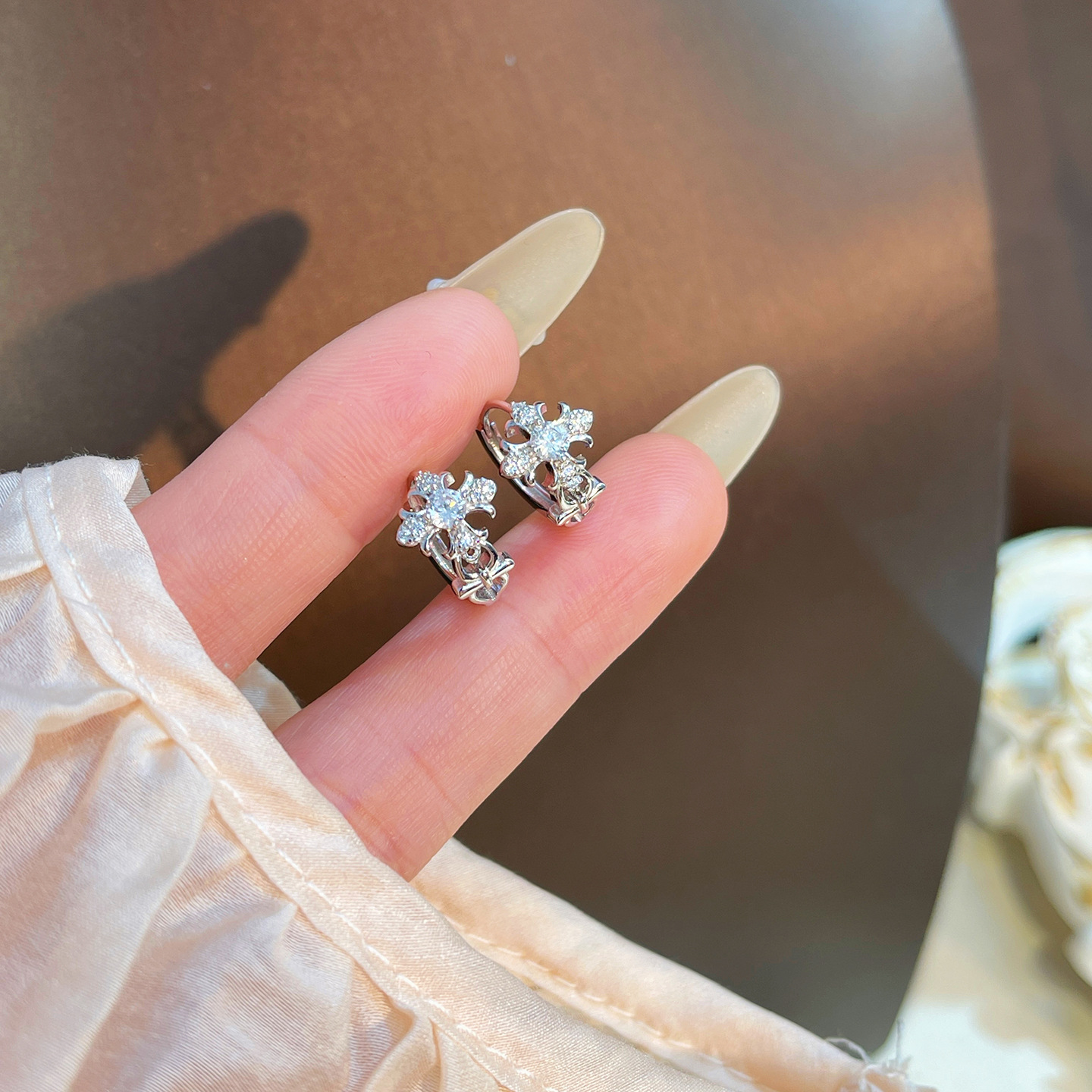 S925 Sterling Silver Sweet and Spicy Niche Design Full Diamond Cross Earrings for Women Cool Style Earrings High-End Men's Earrings