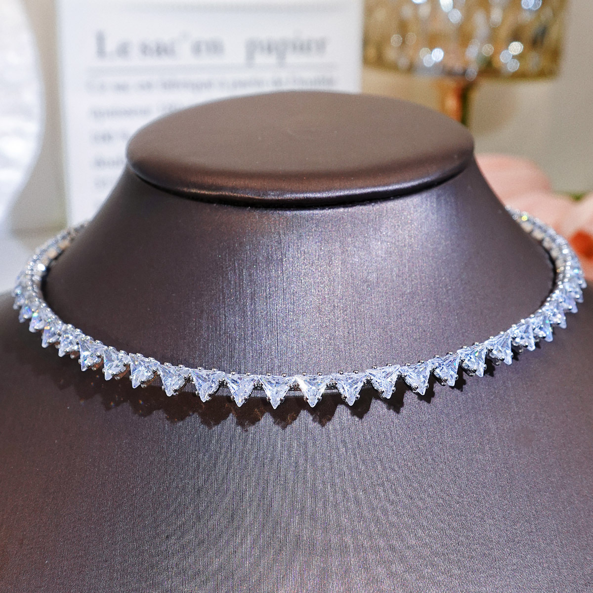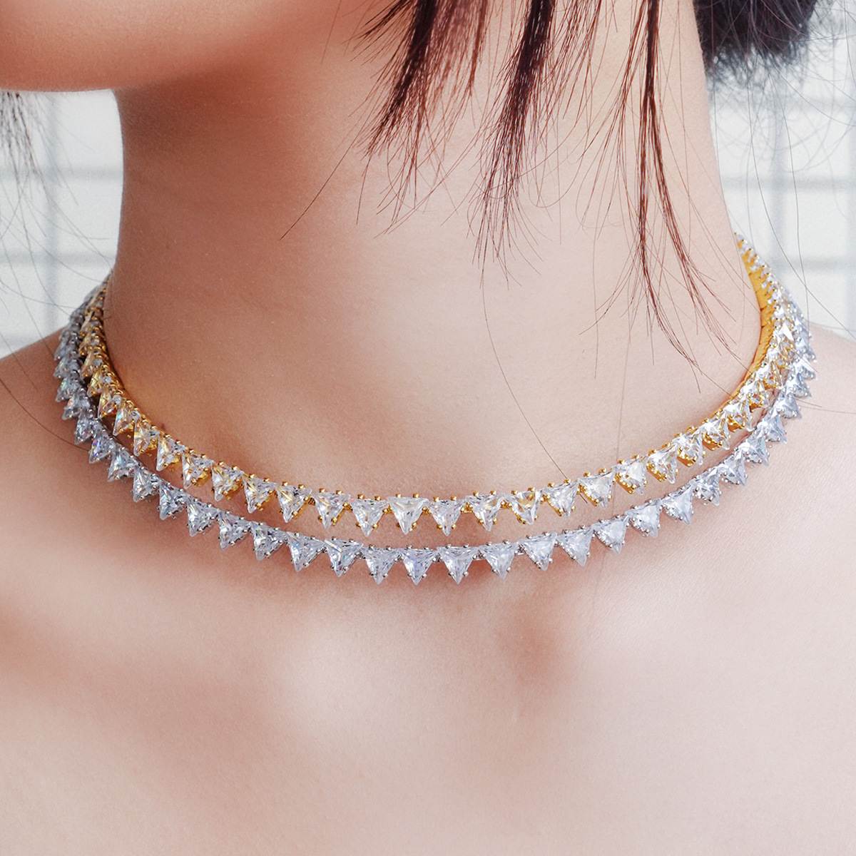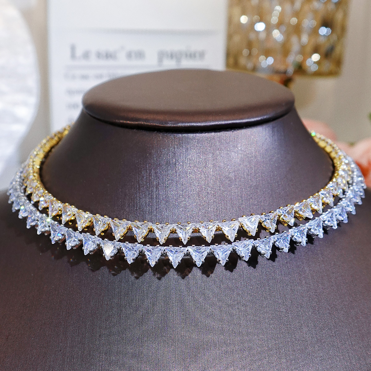Neutral Minimalist Style Triangular Zircon Choker Super Shiny Full Row Diamond Collarbone Chain Hip-Hop Punk Unisex Copper Necklace