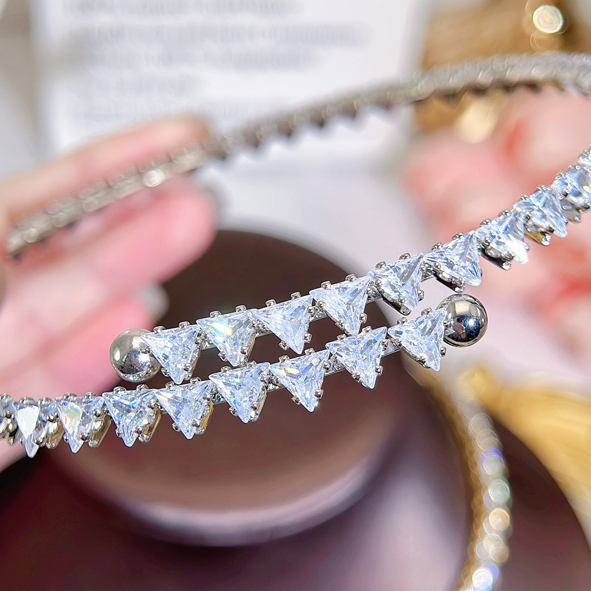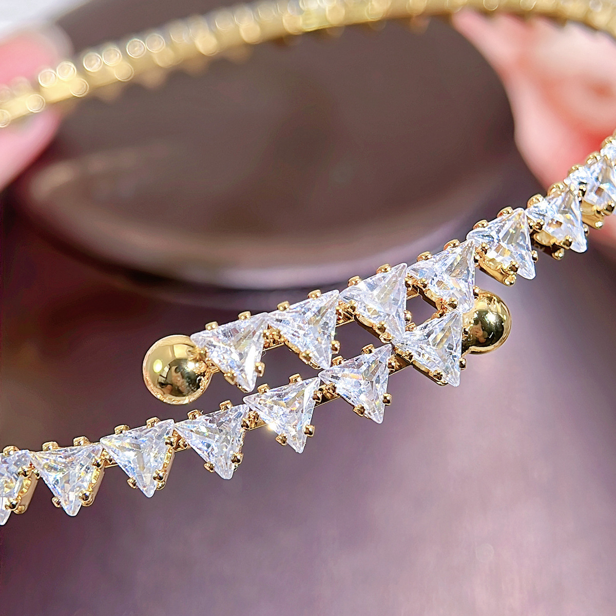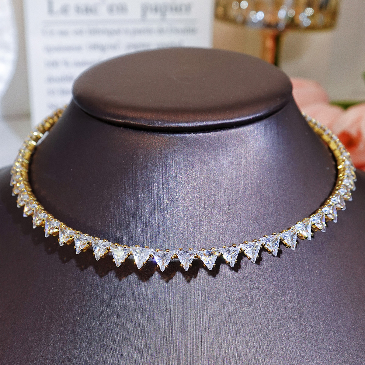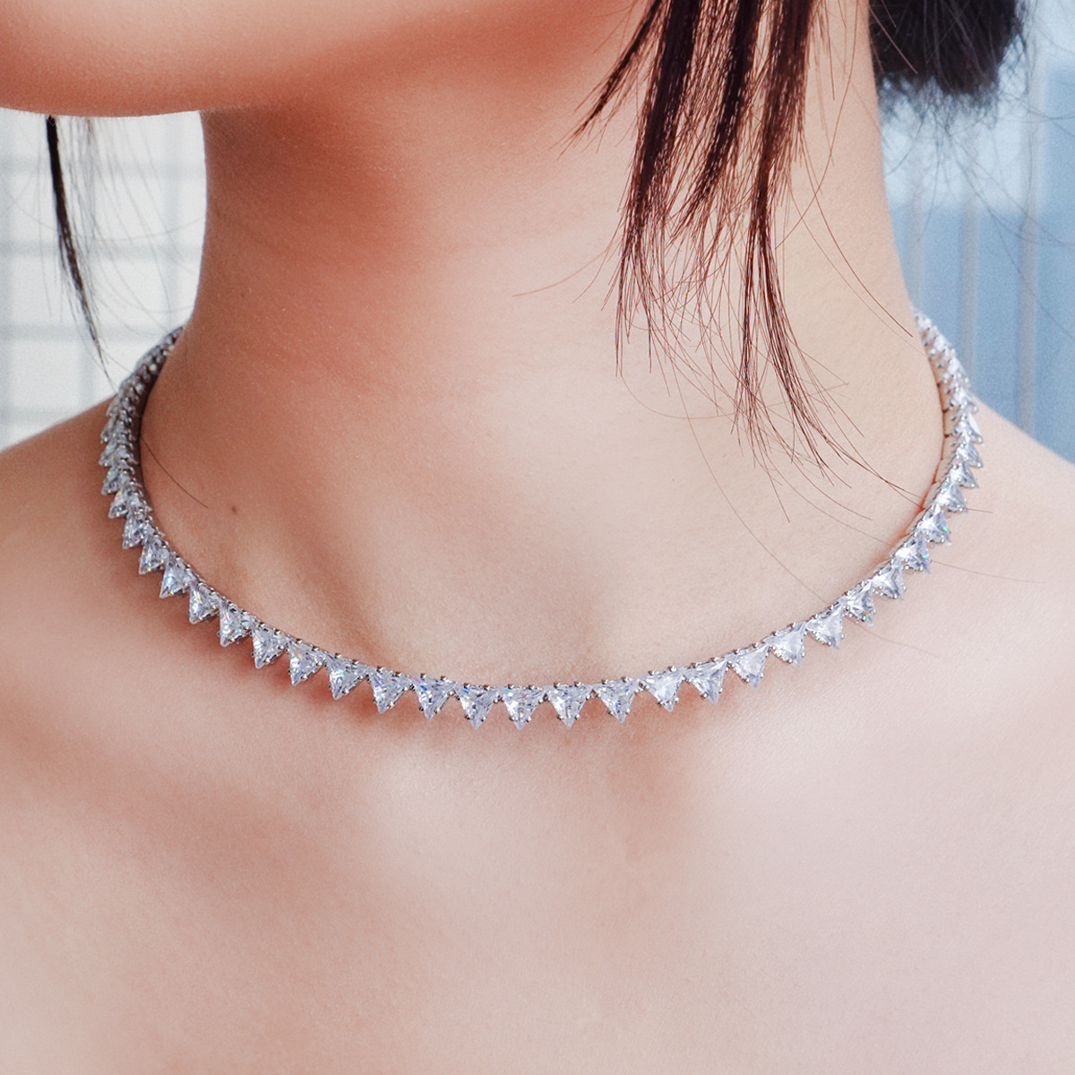 Neutral Minimalist Style Triangular Zircon Choker Super Shiny Full Row Diamond Collarbone Chain Hip-Hop Punk Unisex Copper Necklace