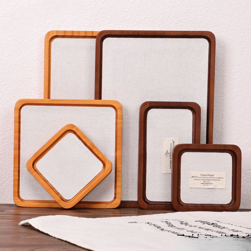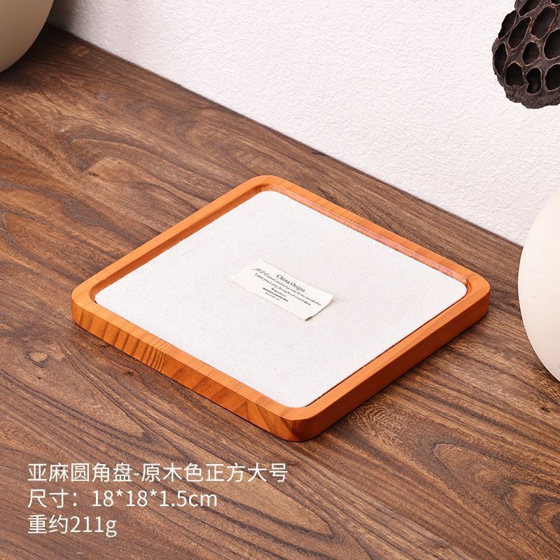 Color: Linen rounded corner plate-wood color rectangular small size♜