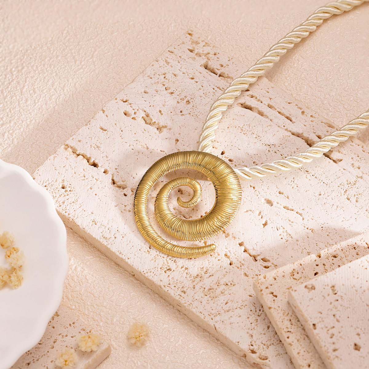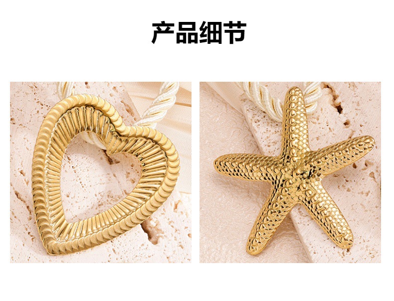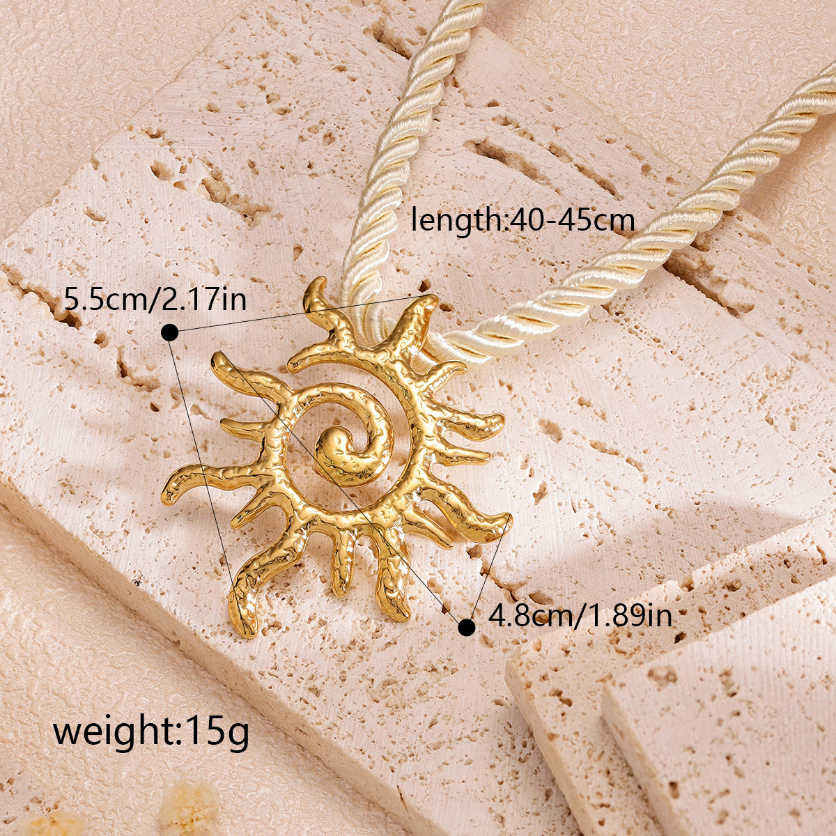 Cross-Border Hot Selling Stainless Steel Vacuum Electroplating Ocean Sun Love Conch Pendant with Acrylic Thick Rope Necklace