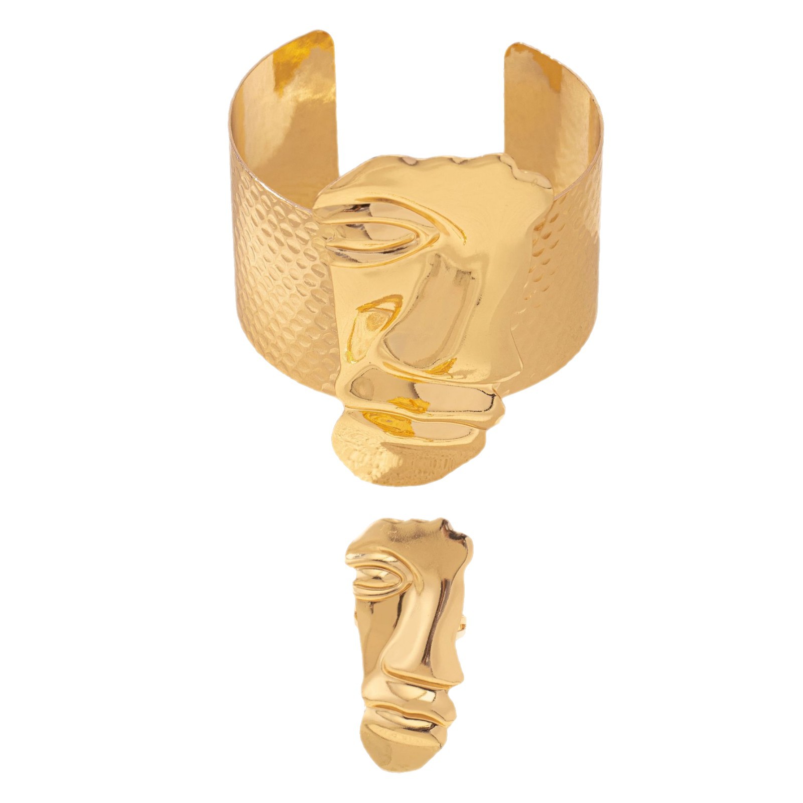Cross-Border Hot Selling Fashionable and Personalized Exaggerated Portrait Bracelet and Ring Set Suitable for Women to Wear on the Street at Parties