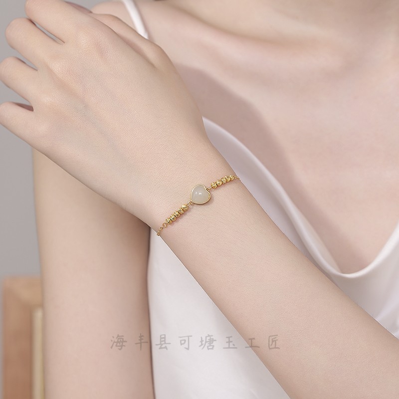 Hotan Jade Heart Laser Bead Bracelet for Women S925 Sterling Silver New Chinese Design Fortune Bead Bracelet