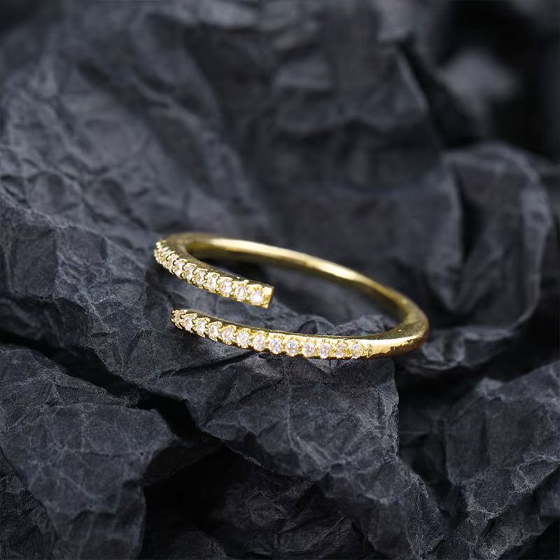 Super Shiny Light Luxury Full Diamond Open Ring for Women Trendy Ins Niche Design Minimalist Style Adjustable Index Finger Internet Celebrity Ring