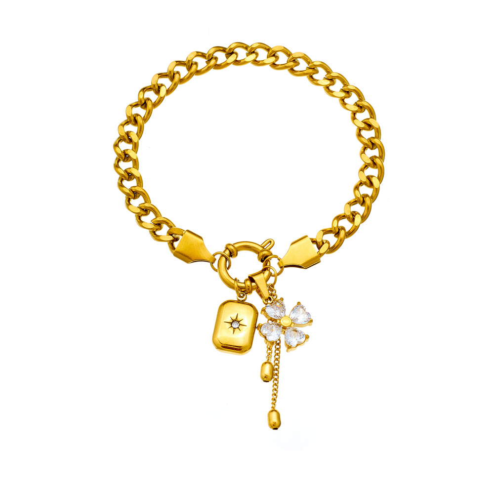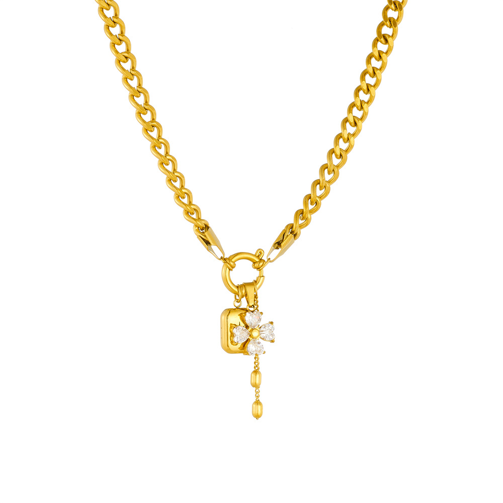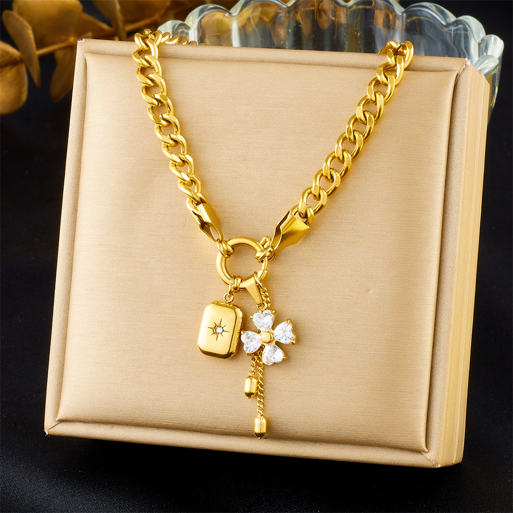 Cross-Border Fashion New Sweet and Cool Diamond-Encrusted Flower Star Square Pendant Tassel Chain Stainless Steel Jewelry Set