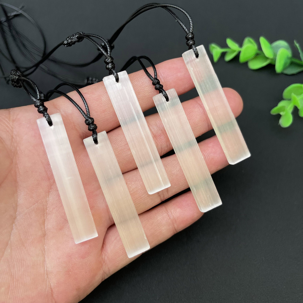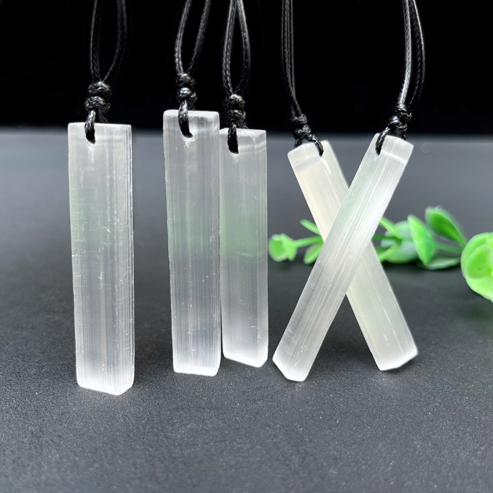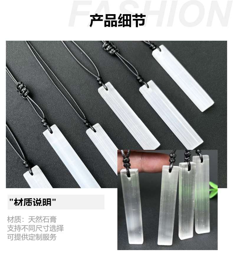 Cross-Border Best-Selling Natural Transparent Gypsum Stone Long Pendant Moroccan Gypsum Meditation Energy Stone Necklace Jewelry