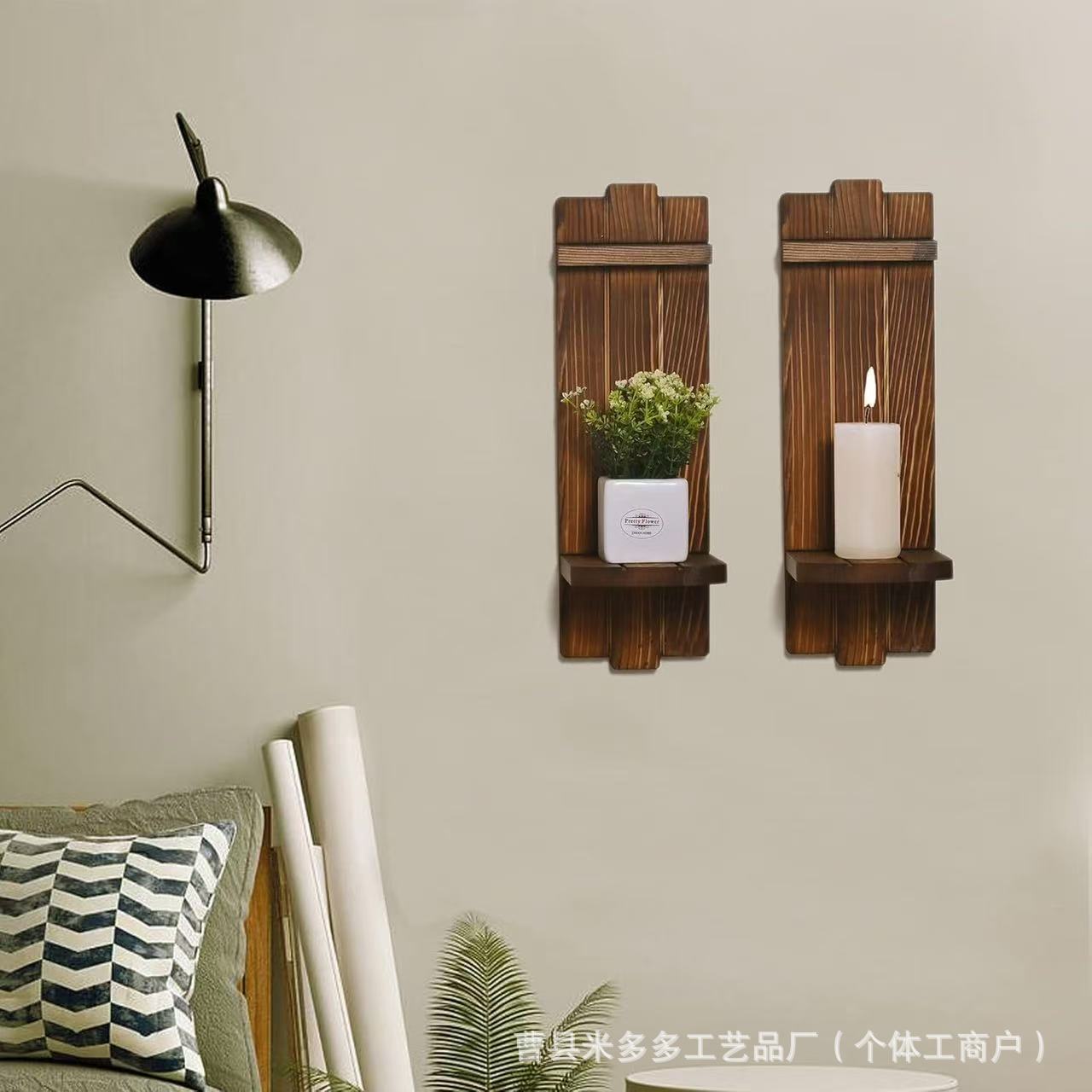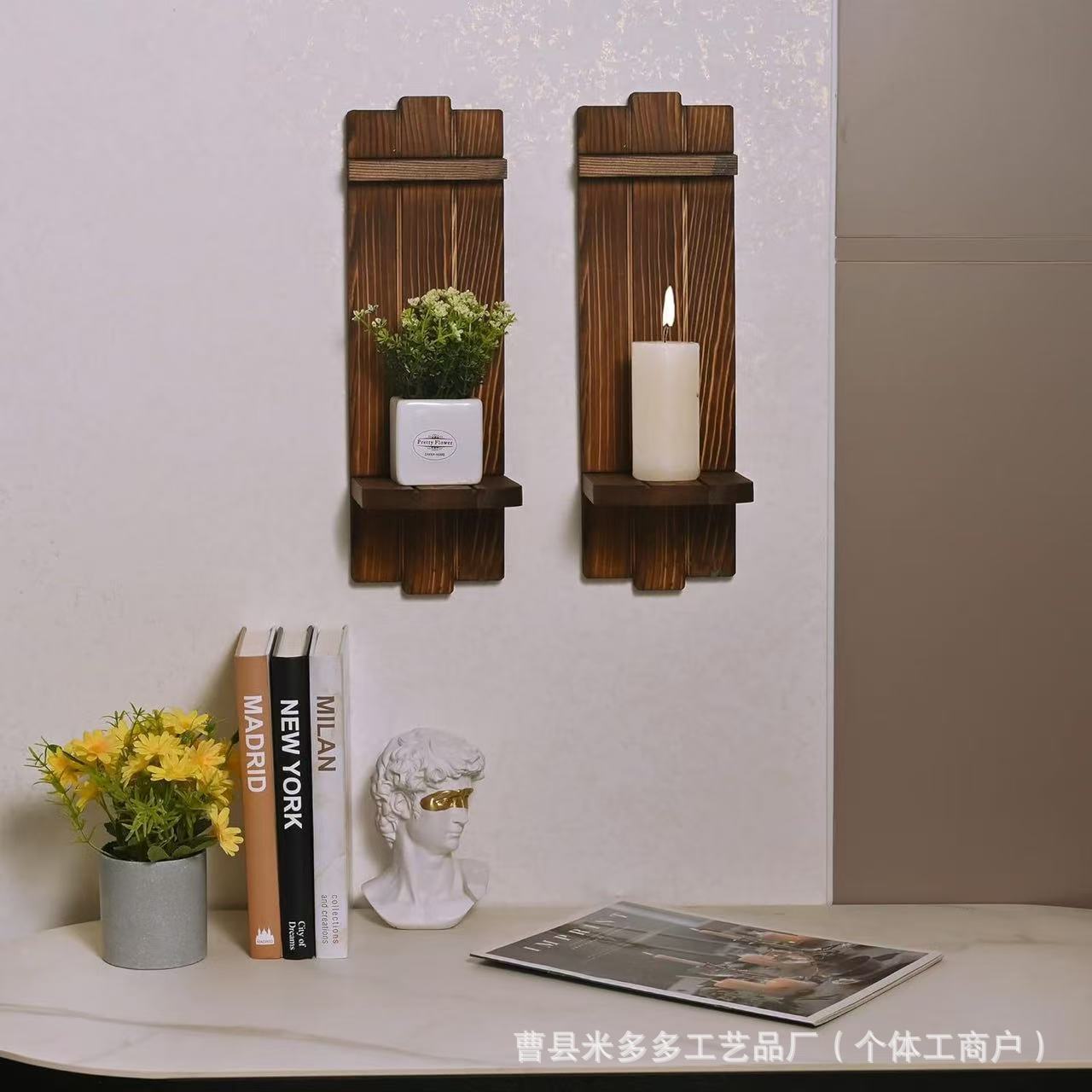 Creative Wooden Candle Holder Decorative Candle Holder Ornaments B&B Wall-Mounted Plant Display Stand Decorative Flower Pot Holder