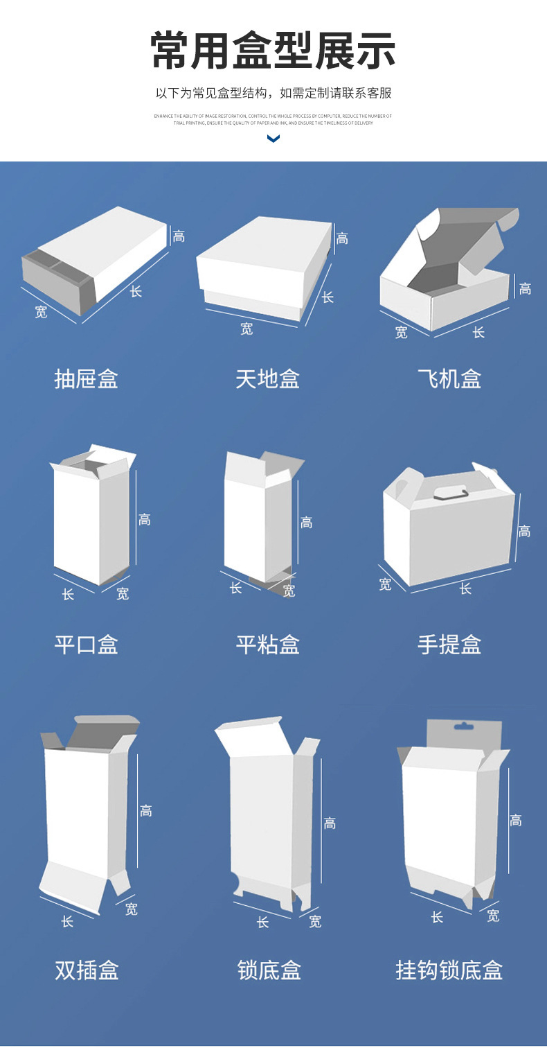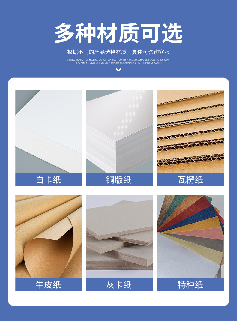 Specifications and models: Customized on demand; customized on demand; white cardboard