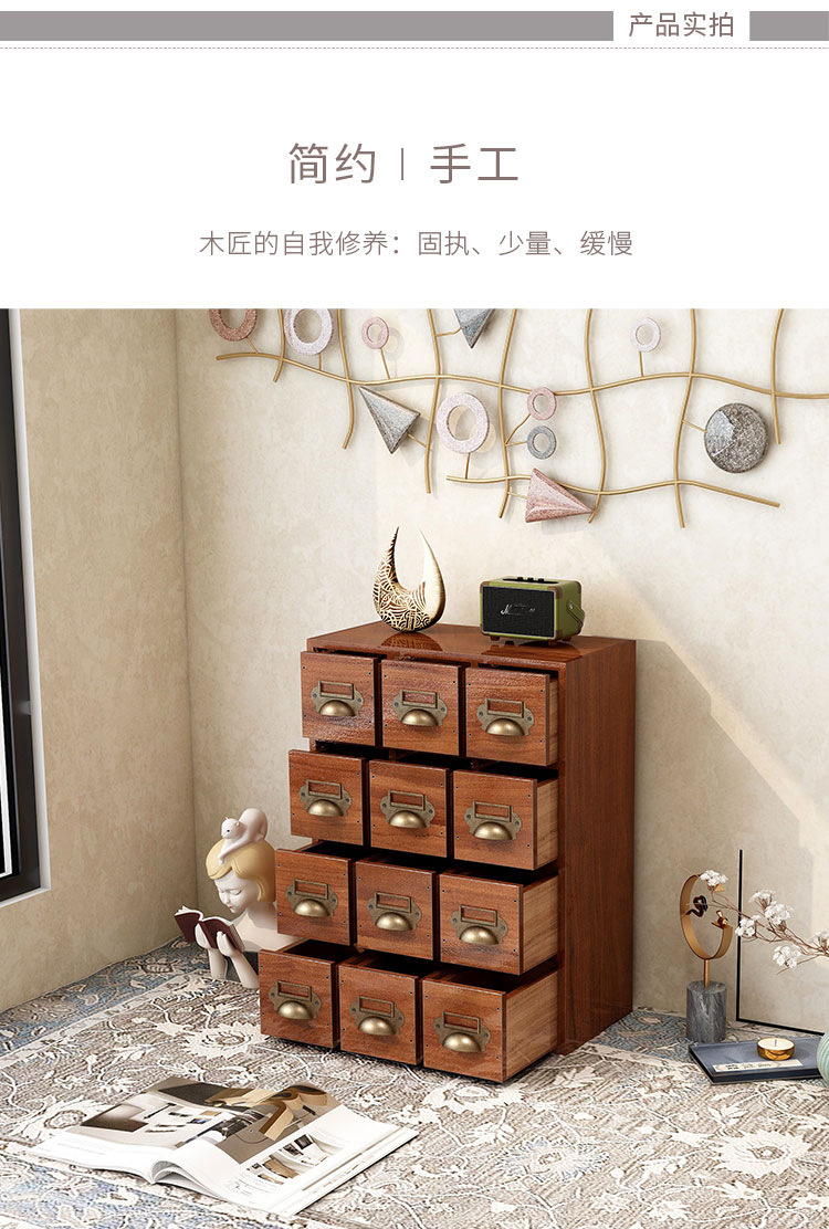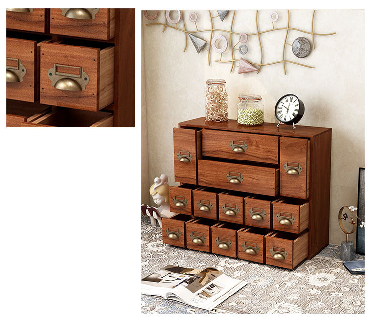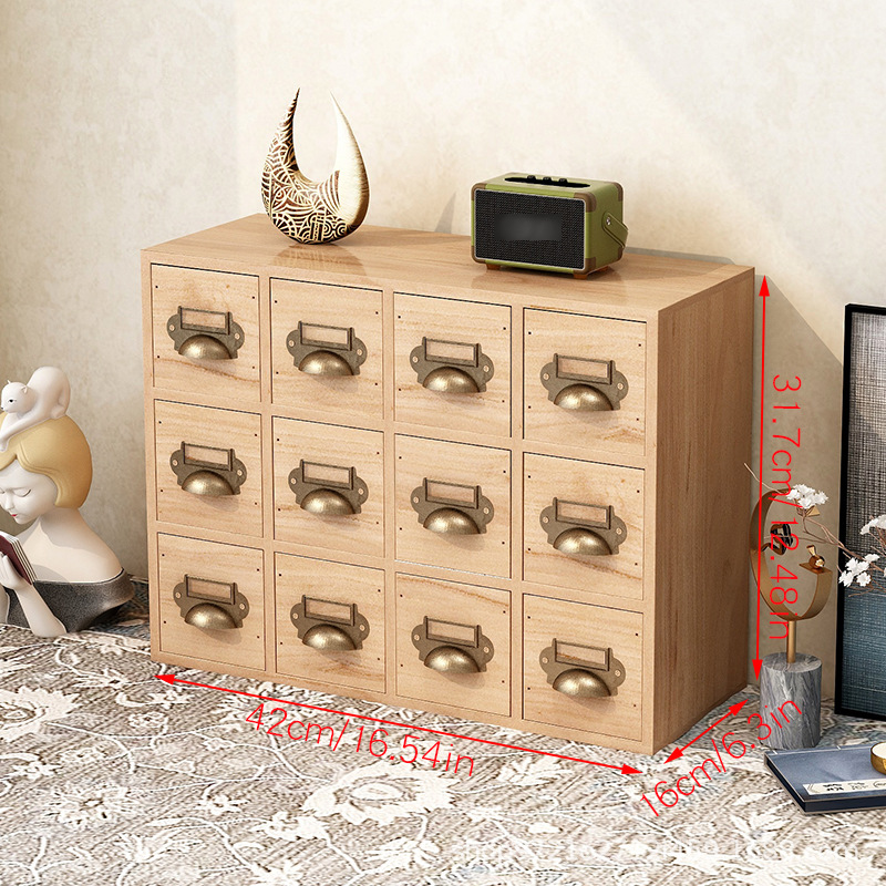 Retro Solid Wood Drawer Storage Box Desktop Stationery Jewelry Tape Cosmetics Finishing Multi-Layer Zakka Cabinet