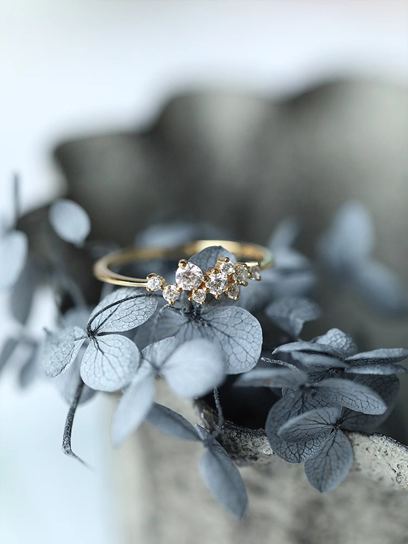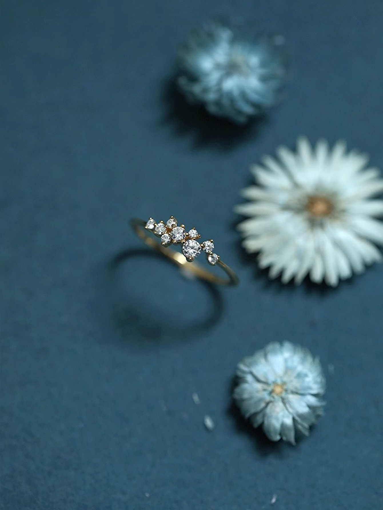 Red Elk S925 Sterling Silver Japanese Style Light Luxury Starry Sky Shining Zircon Ring for Women Ins Fashion Trend Index Finger Ring
