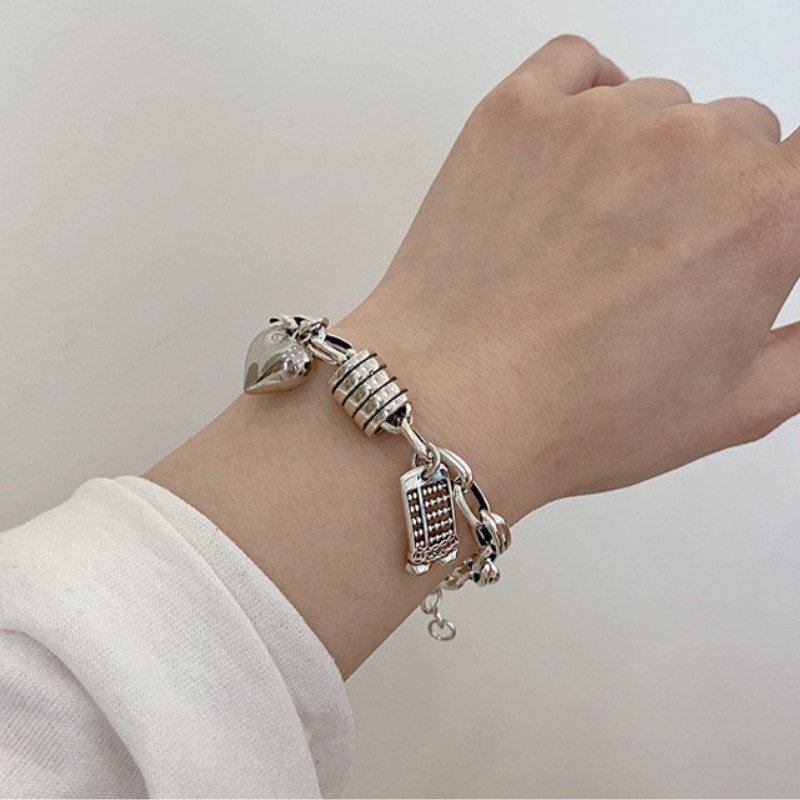 French-Style Retro Heart Fortune Abacus Bracelet for Women, Niche High-End Ins Design, Hong Kong Style Light Luxury New Jewelry for Women