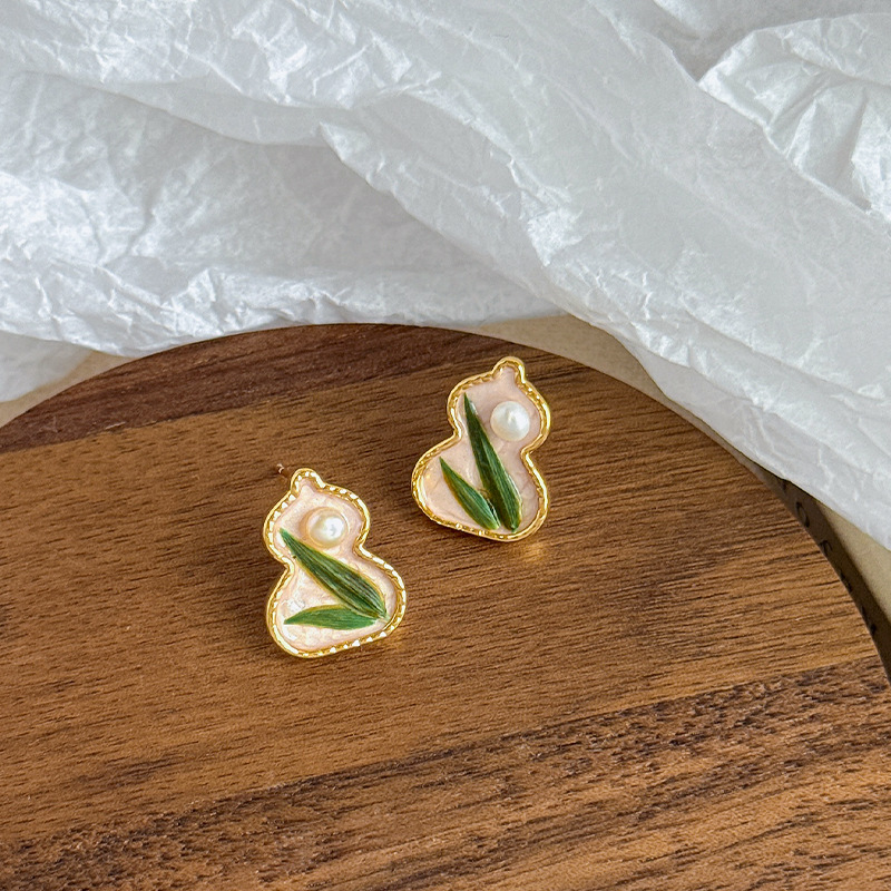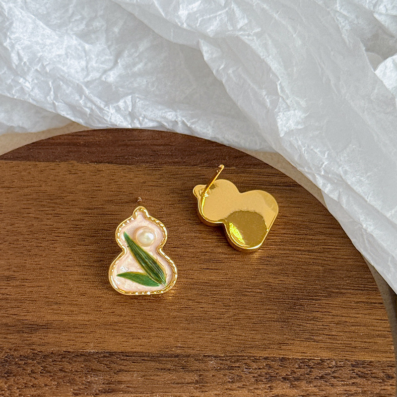 Color: [s925 silver needle + copper plated 18k real gold + real leaves + hand-painted]: nl10114e-p