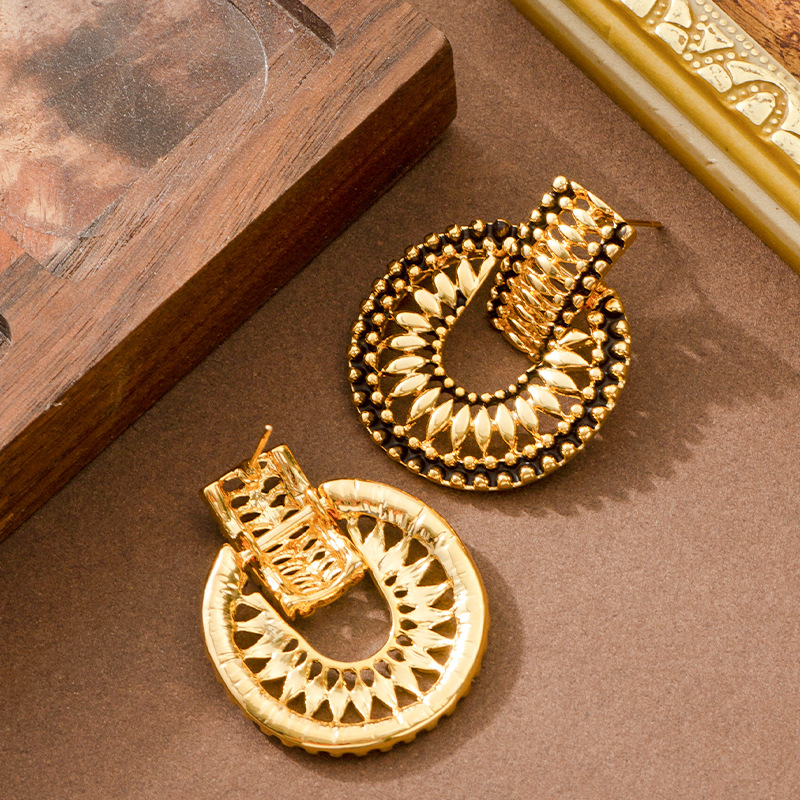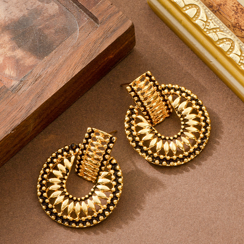 Amazon Cross-Border Fashion Exquisite Small Fragrance Geometric Round Earrings Women's High-End Versatile Temperament Silver Needle Earrings