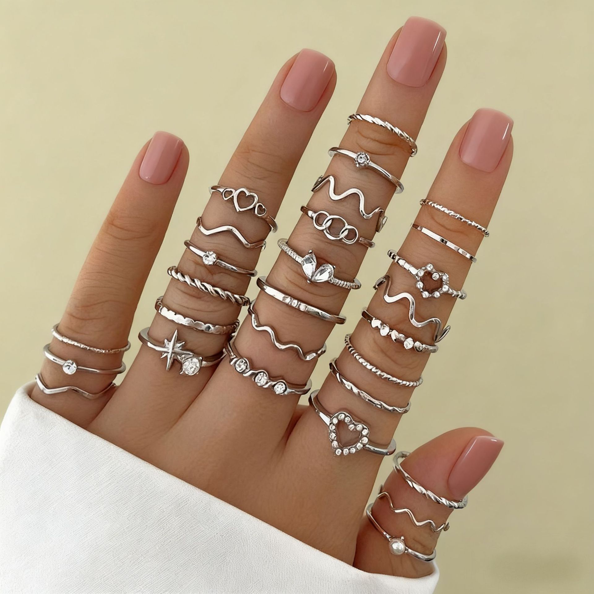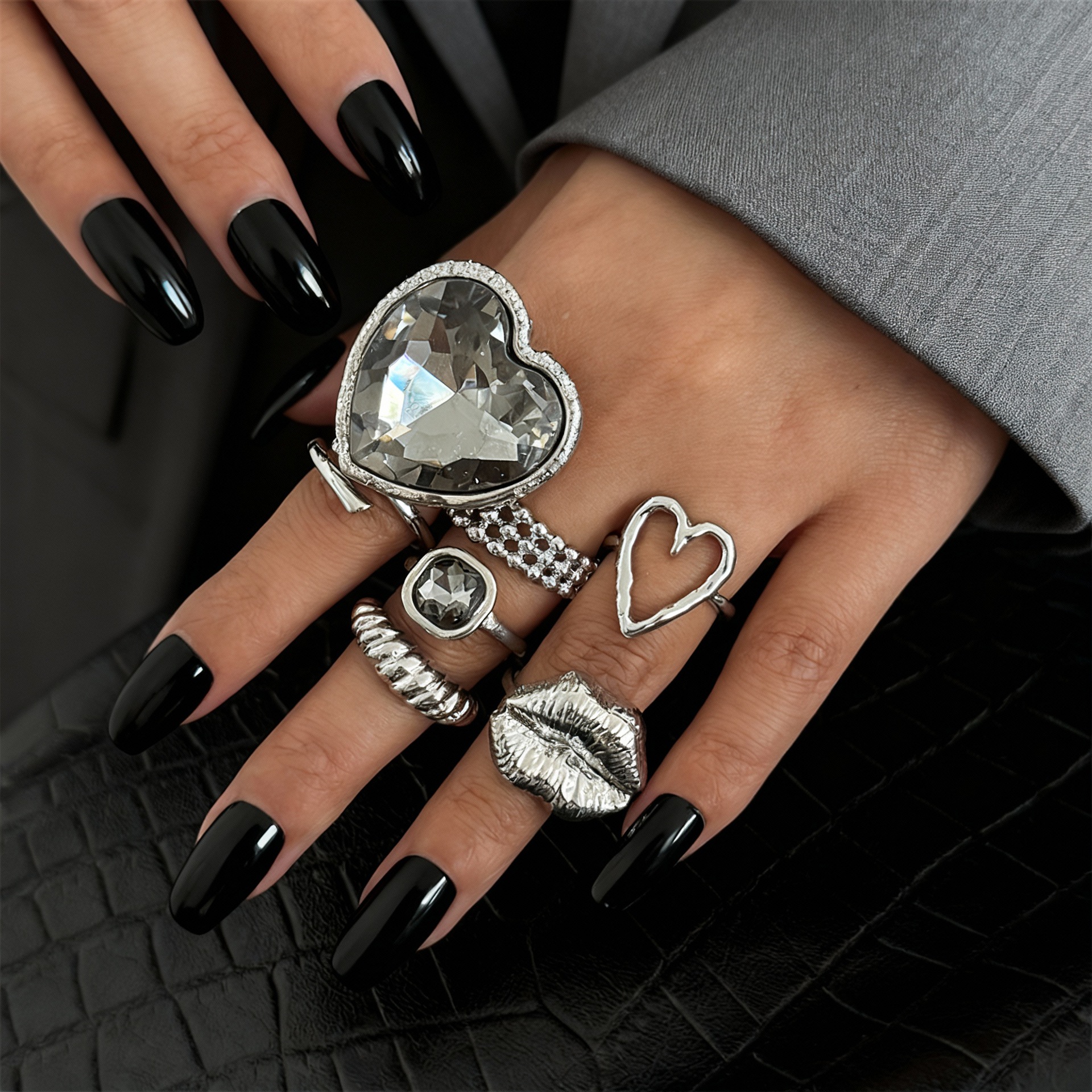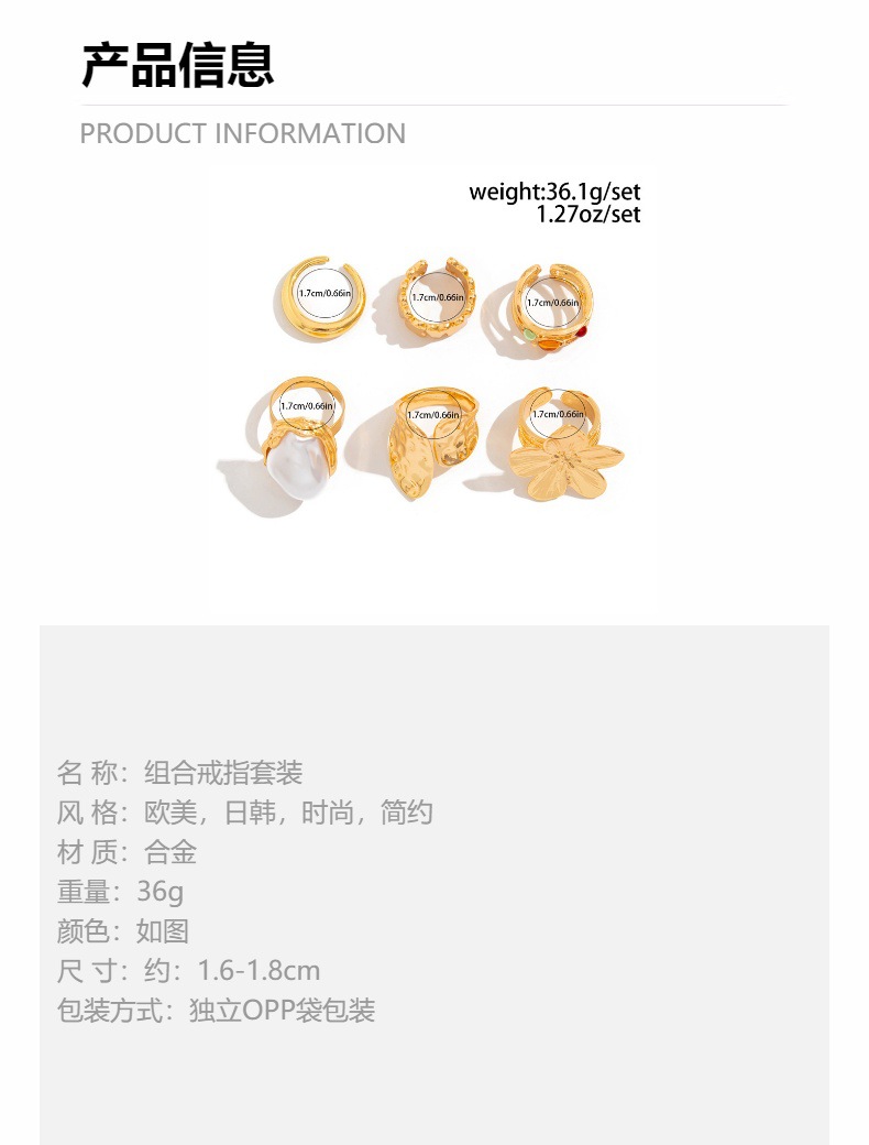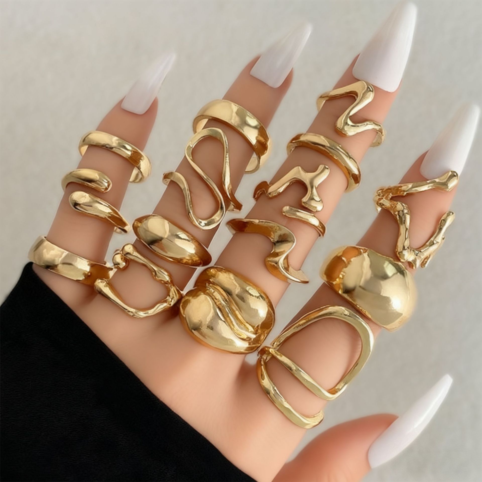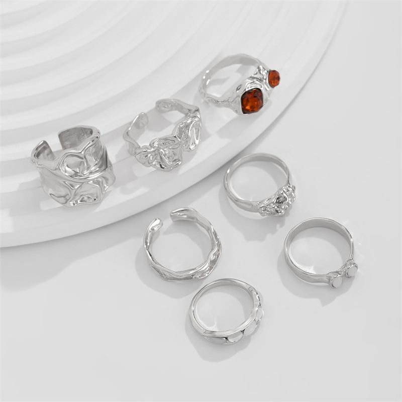 Cross-Border European and American Personalized Retro Combination Ring Fashion Versatile Liquid Lava Flower Irregular Ring Set for Women
