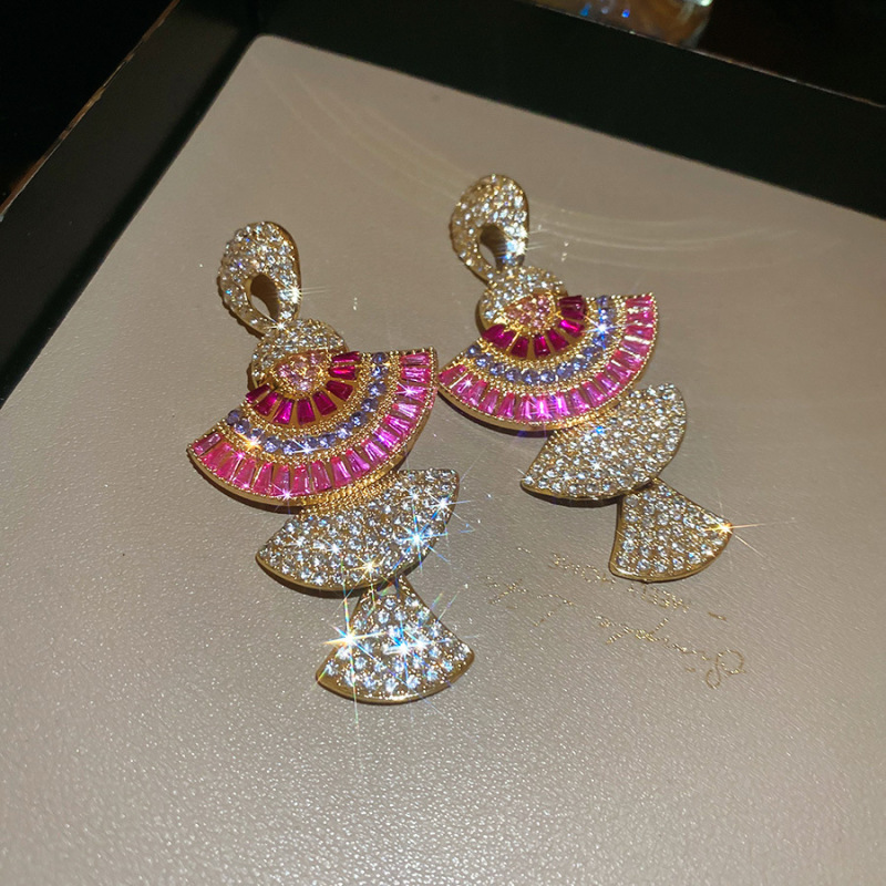 Color: 9#Silver needle-alloy-fan-shaped-pink-8 pieces