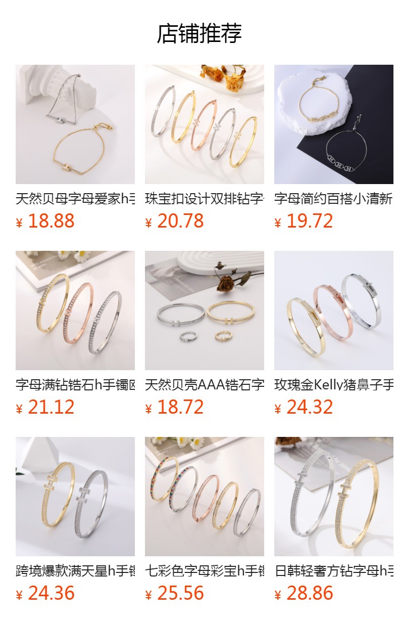 Weight: 7g online and offline physical stores boutiques cross-border e-commerce live e-commerce love home h bracelet bracelet stone zircon bracelet