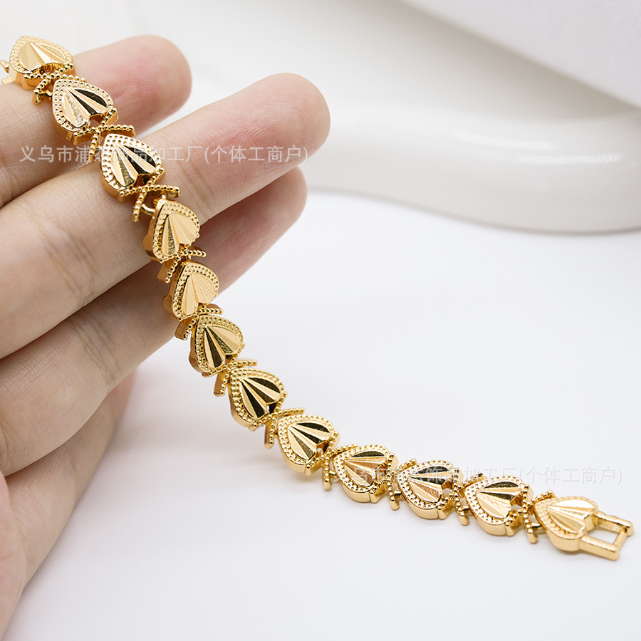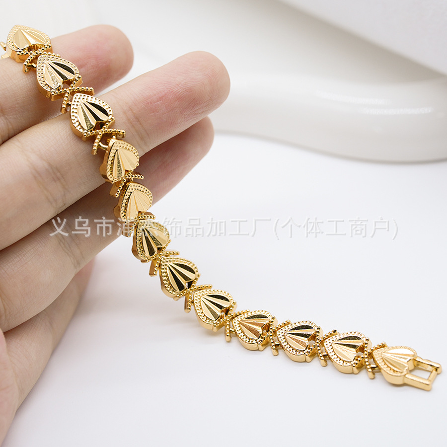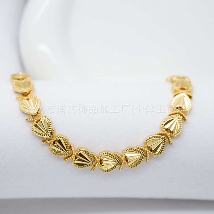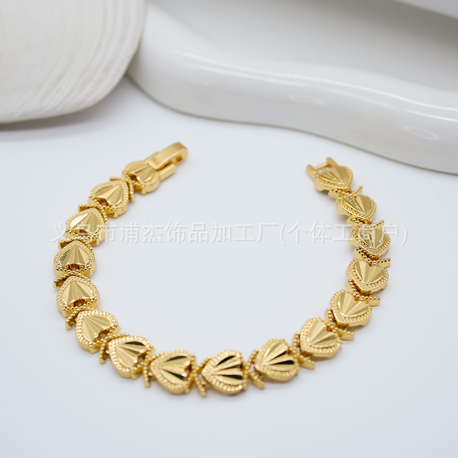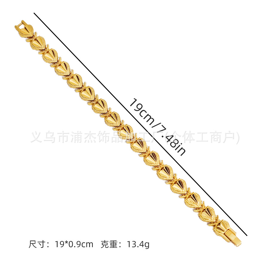Cross-Border Alloy Color-Preserving Gold and Silver Open Heart Bracelet Dubai Female Bride Wedding Jewelry Factory Wholesale