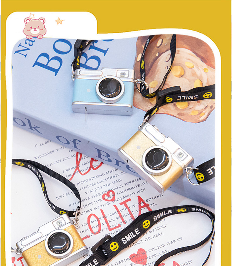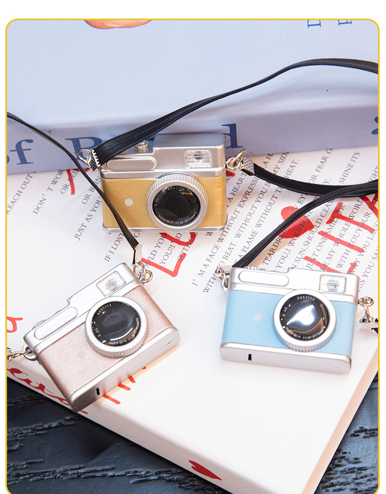 High-End Foreign Trade Luminous Sound Mini Camera Car Keychain Retro Imitation Camera Pendant Fashion Leather Bag Accessory