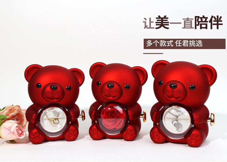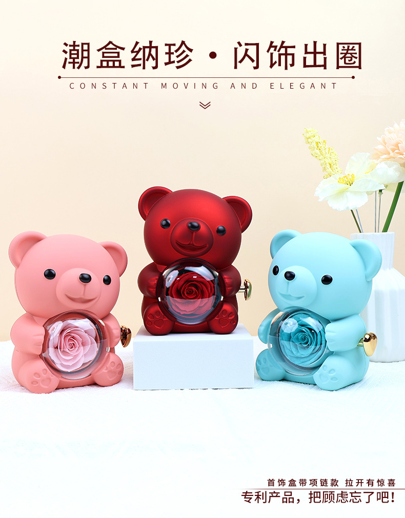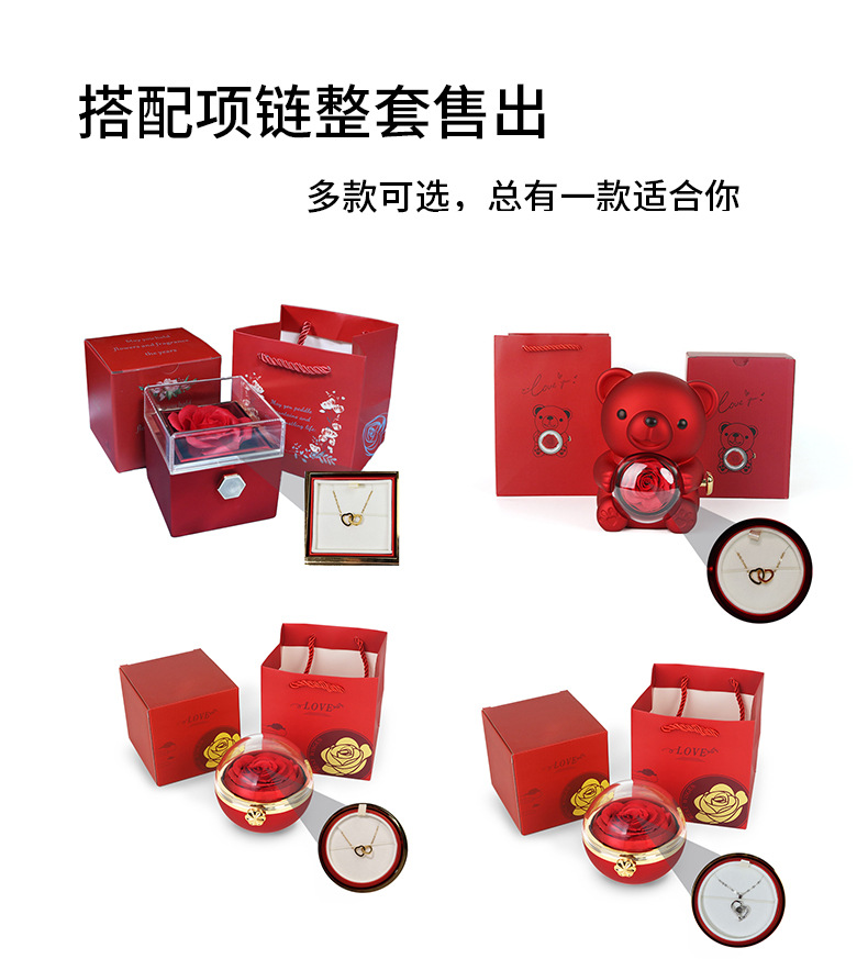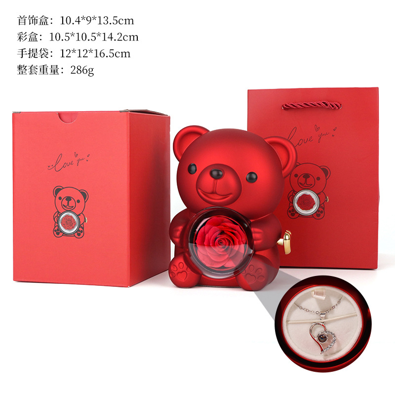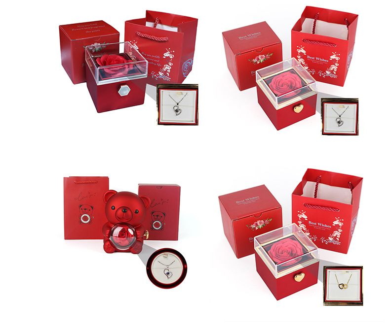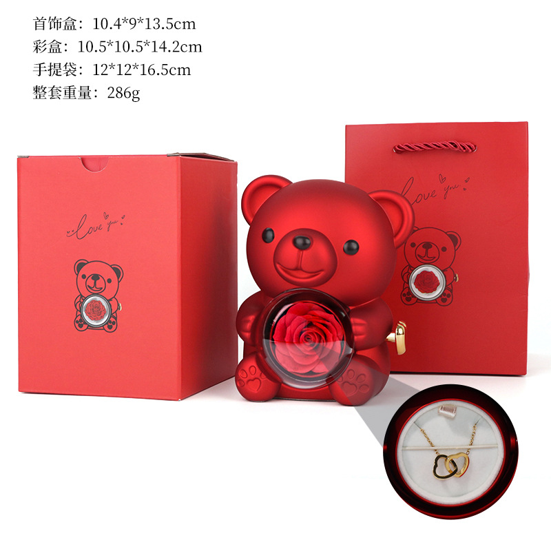 Specifications and models: Small hug bear + double heart necklace; soap flower jewelry box + color box + handbag