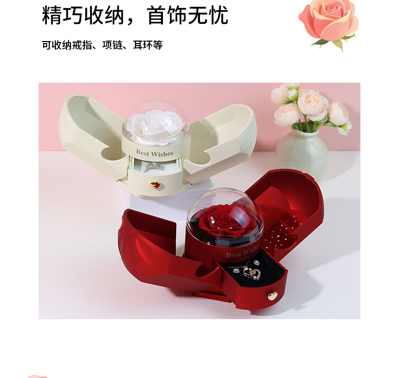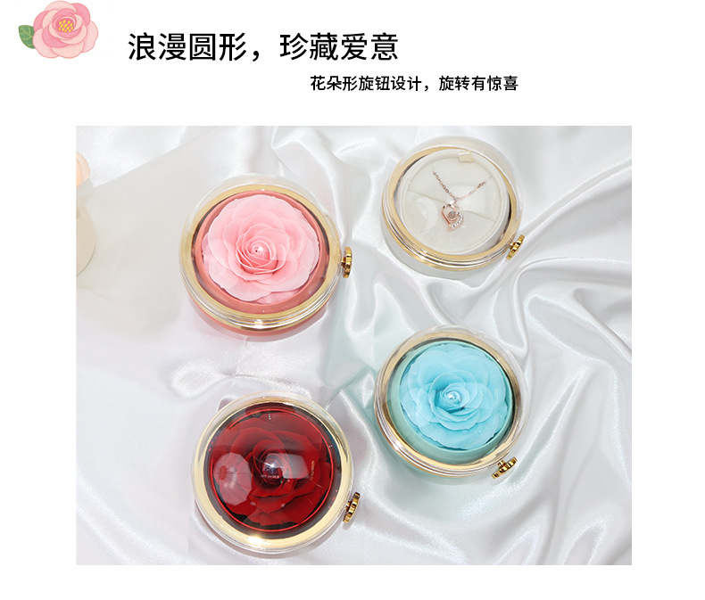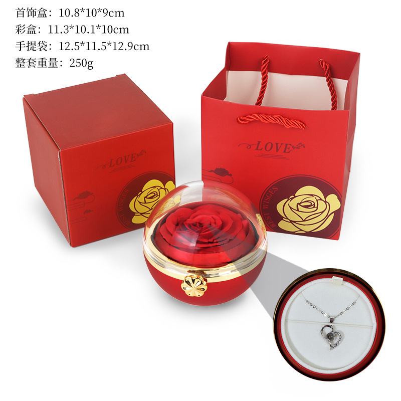 Specifications and models: Round rotate+crooked heart necklace; soap flower jewelry box+color box+handbag