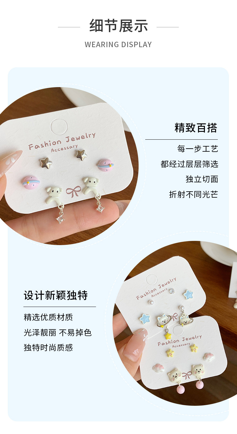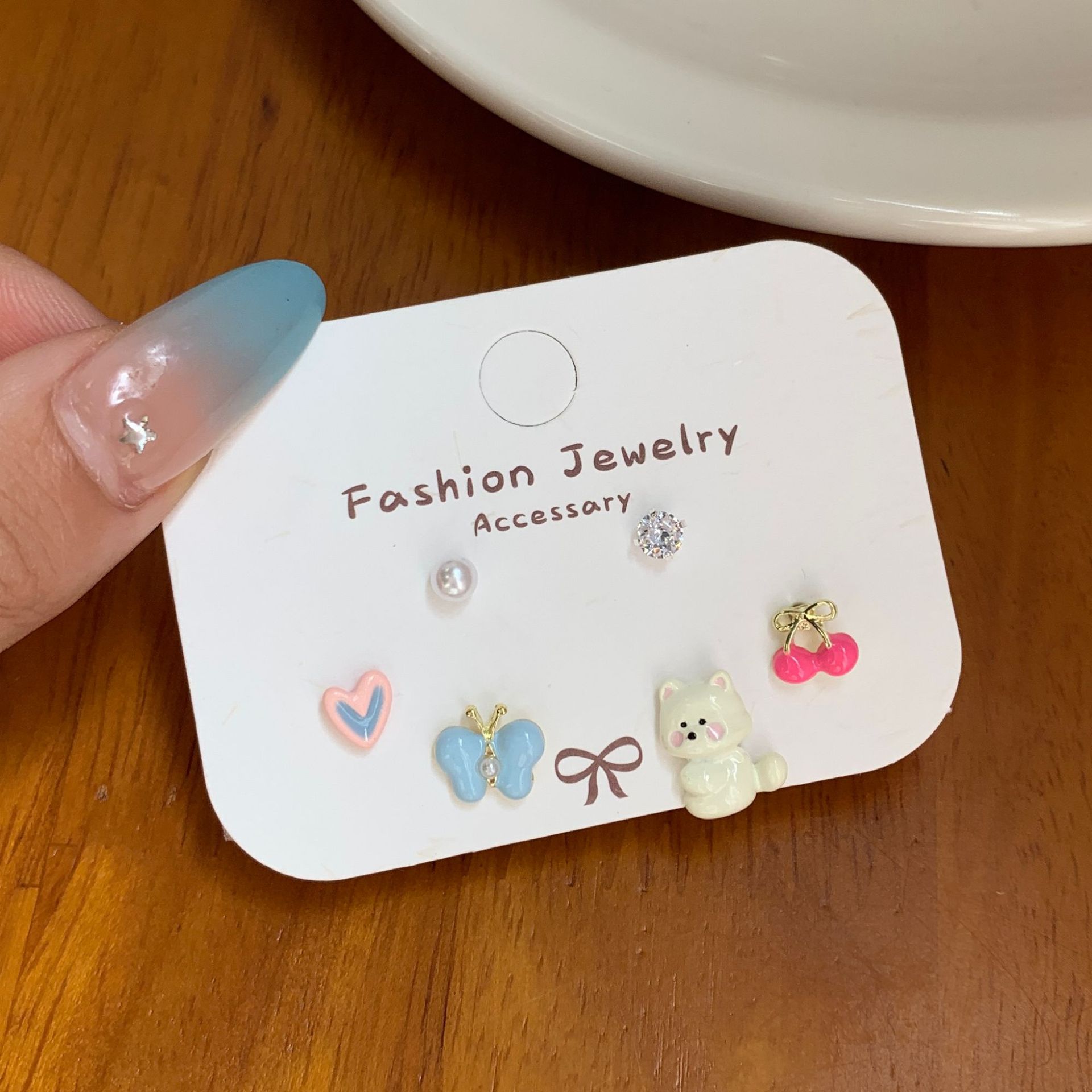 Summer Fresh and Childlike Cute Puppy Earrings Tassel Women's Silver Needle Sweet and Interesting Heart Exquisite Student Earrings
