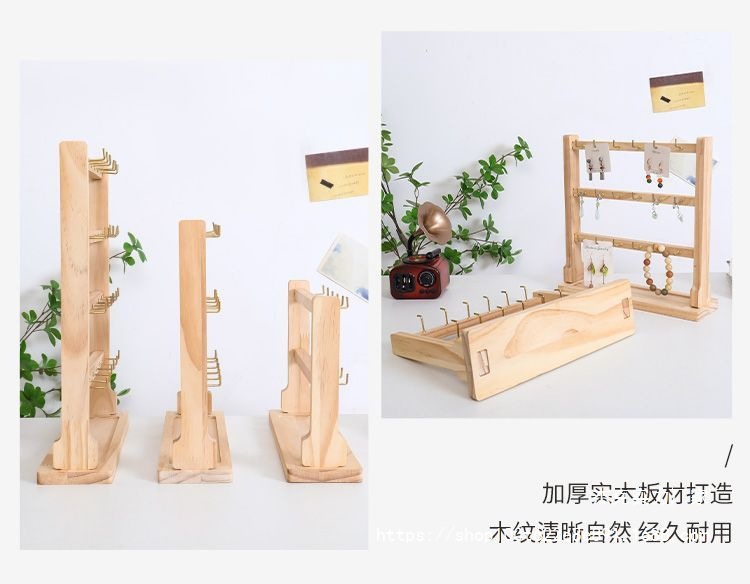 Jewelry Shelf Jewelry Storage with Hook Earrings Props Earrings Display Rack Solid Wood Keychain Necklace Bracelet Earrings