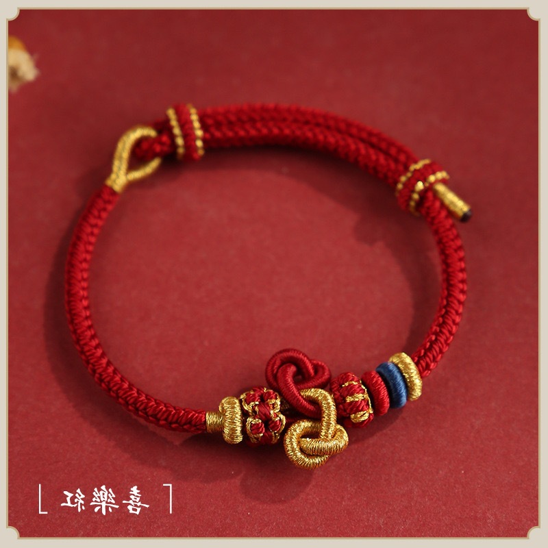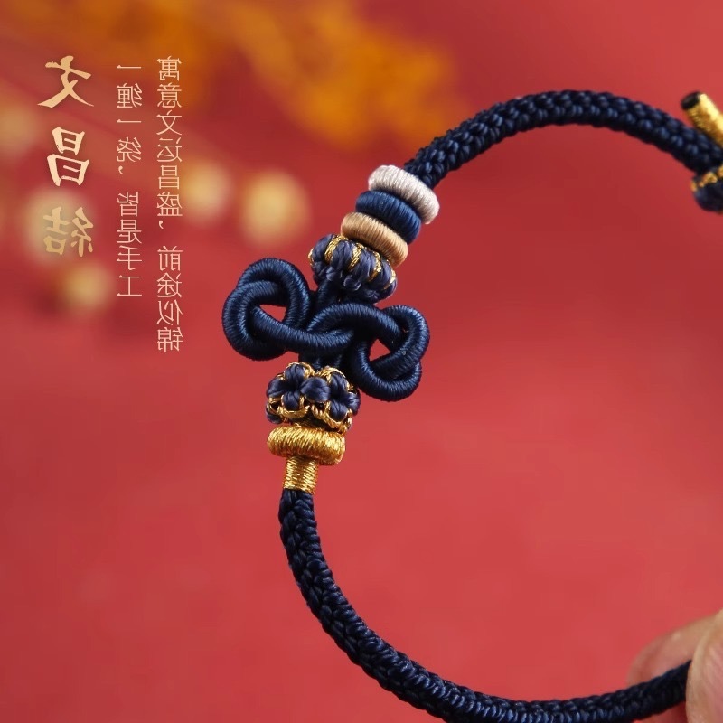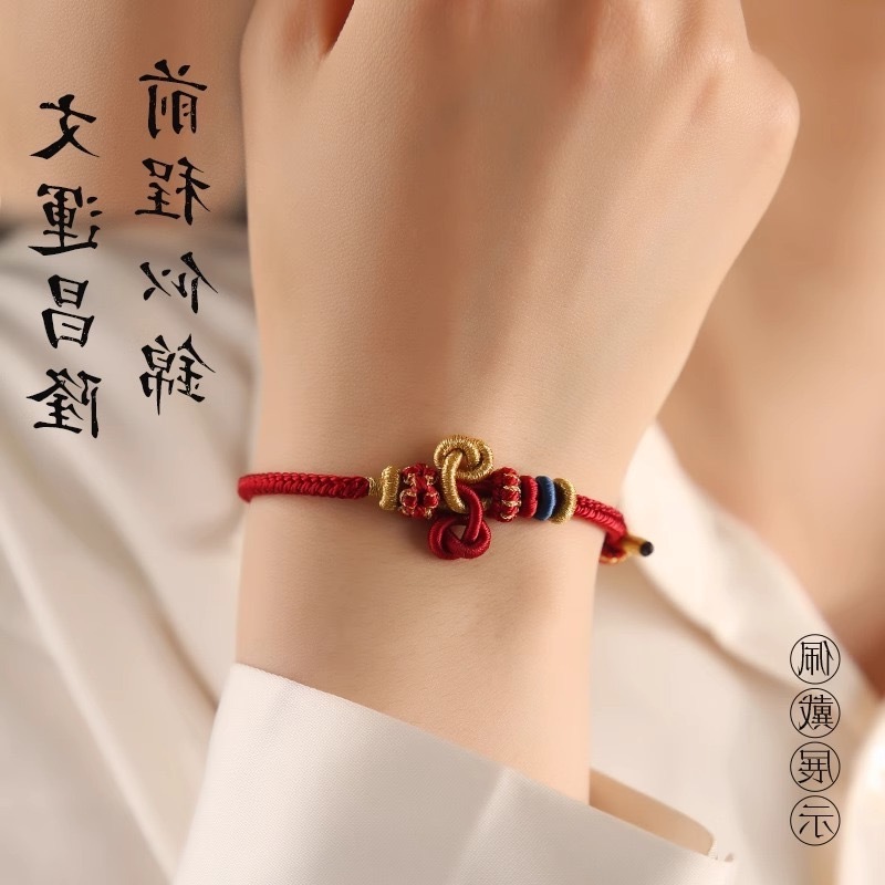 Handmade Wenchang Knot Bracelet with Red Koi Rope for Men and Women, Exam and Graduate Entrance Exam Gift, Golden List Success Present