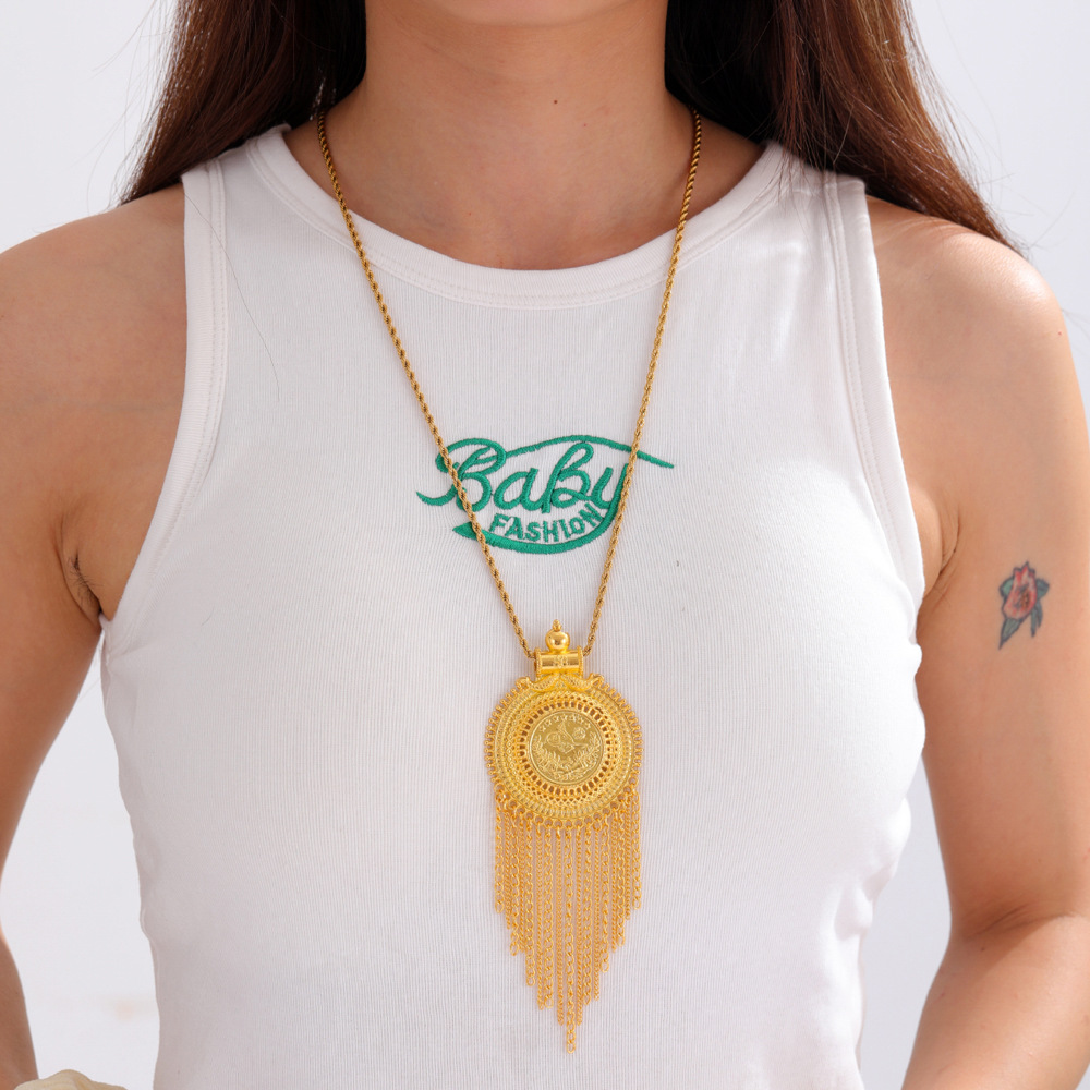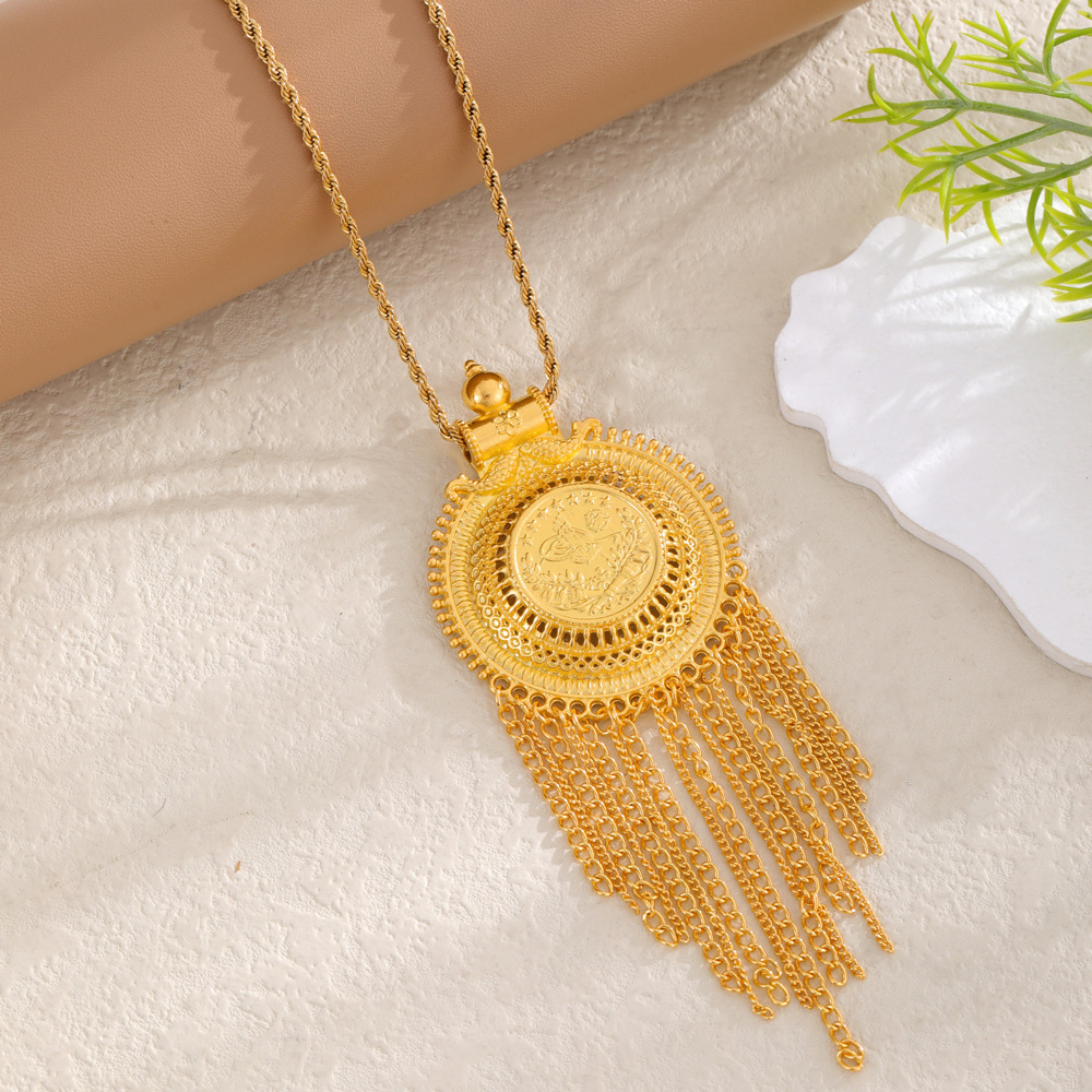 2025 Middle East Dubai New Gold Coin Tassel Necklace Palace Style Cross-Border Necklace