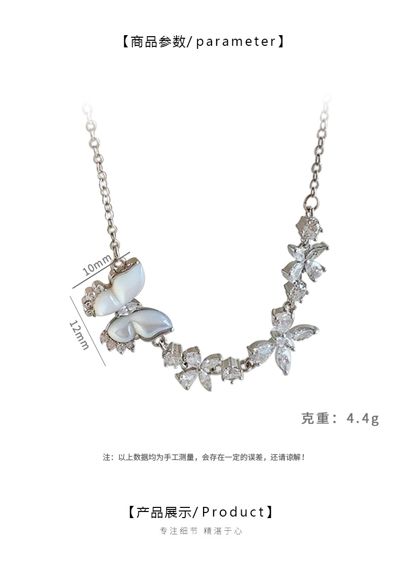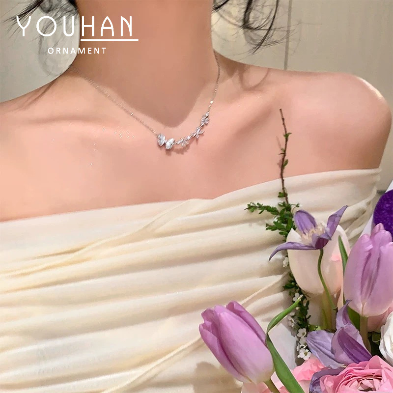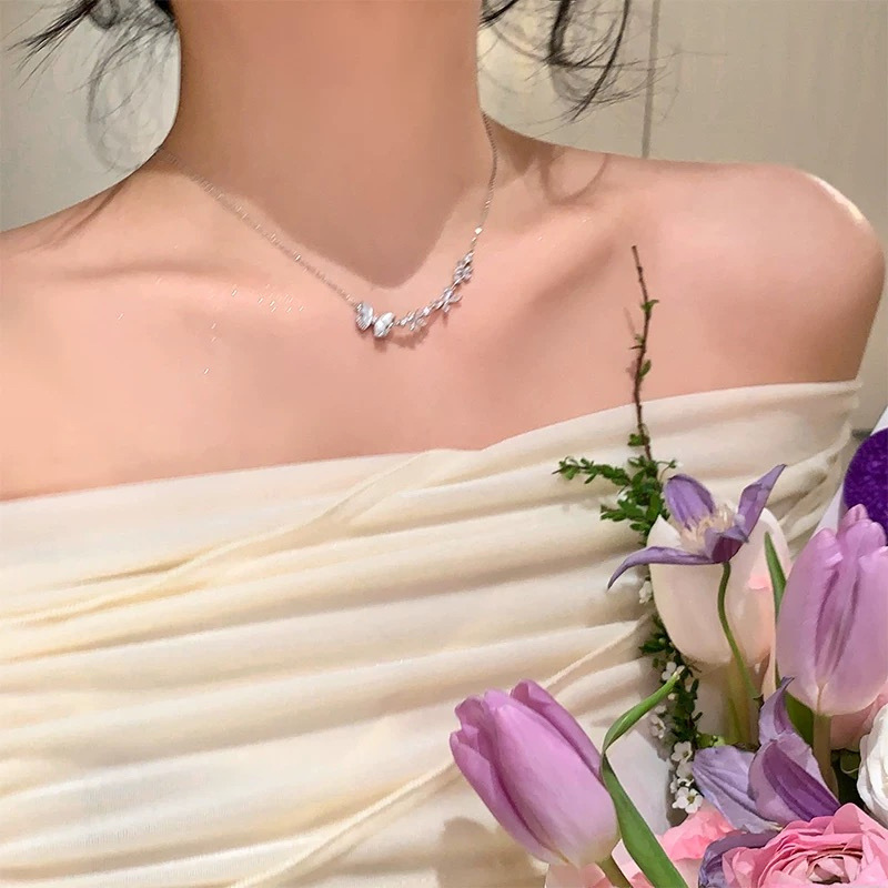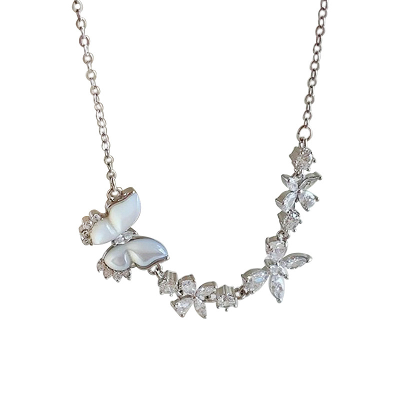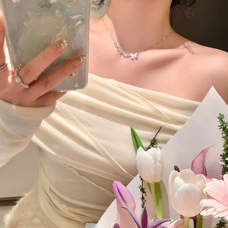 Korean Fashion New Style Mother-Of-Pearl Butterfly Super Shiny Collarbone Necklace for Women, Cool and Elegant Temperament Choker Necklace Trendy Accessory