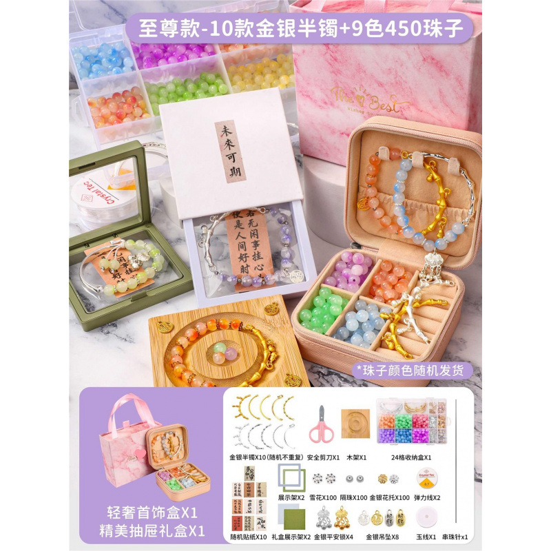 Color: [half bracelet edition] 10 styles of gold and silver half bracelets + 9 colors of beads (comes with jewelry box + drawer gift box)