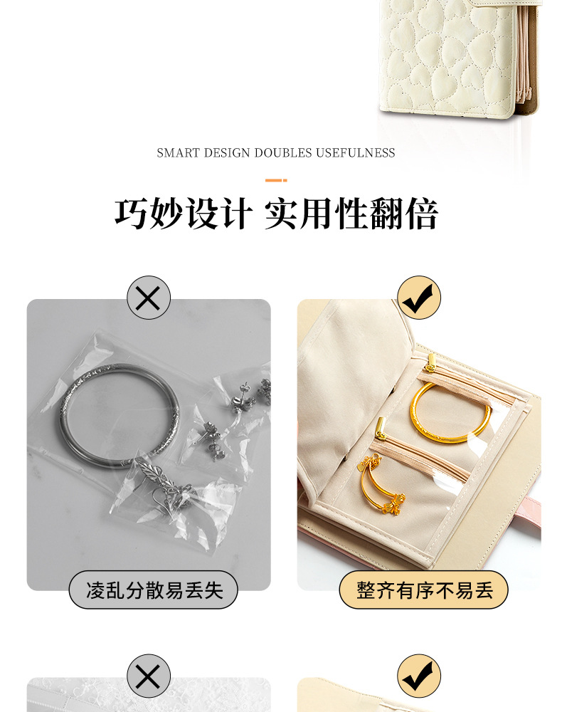 Velvet Jewelry Bag, High-End Sealed Waterproof and Anti-Oxidation Heart Jewelry Box, Earrings and Ring Storage, Travel Storage Book