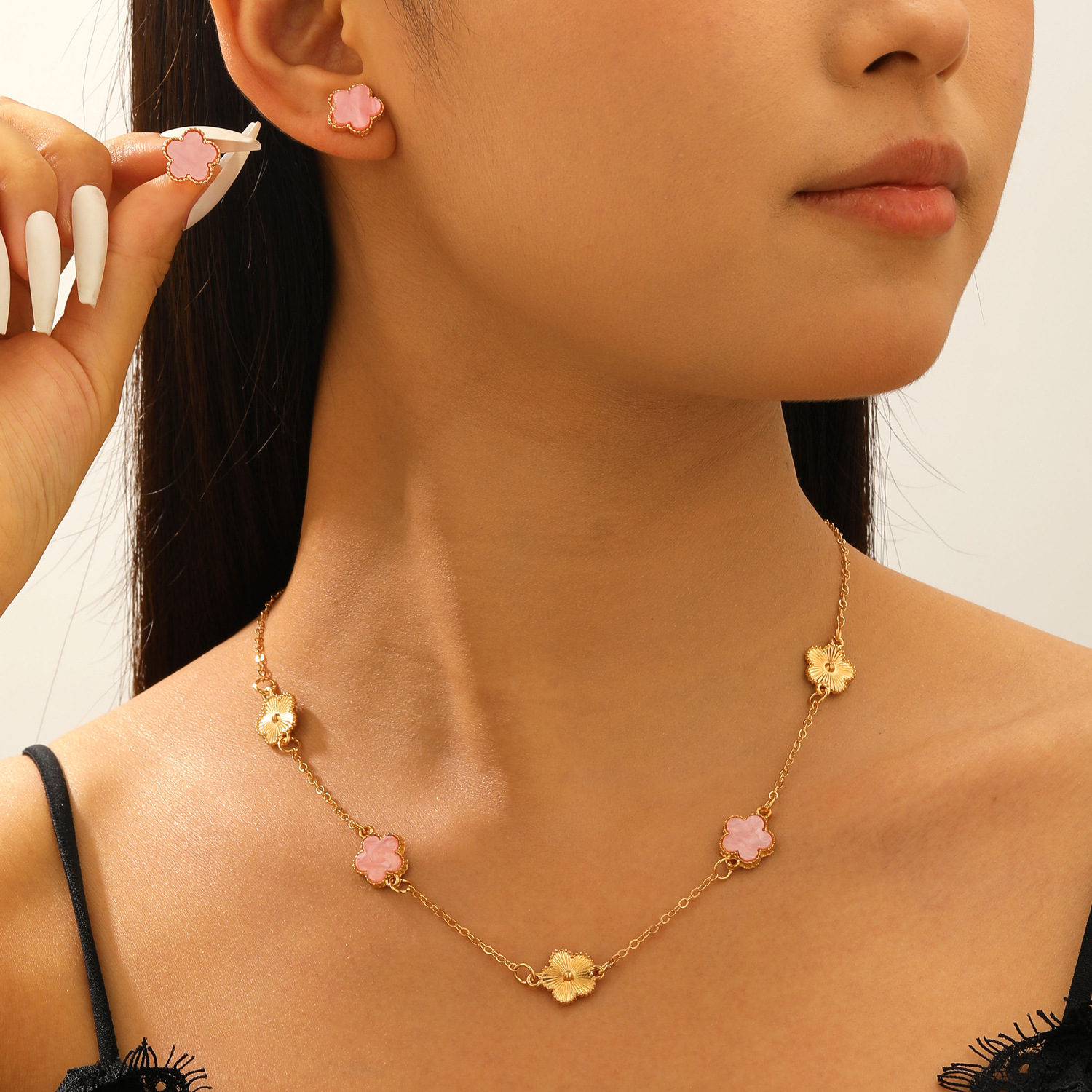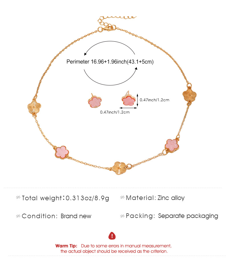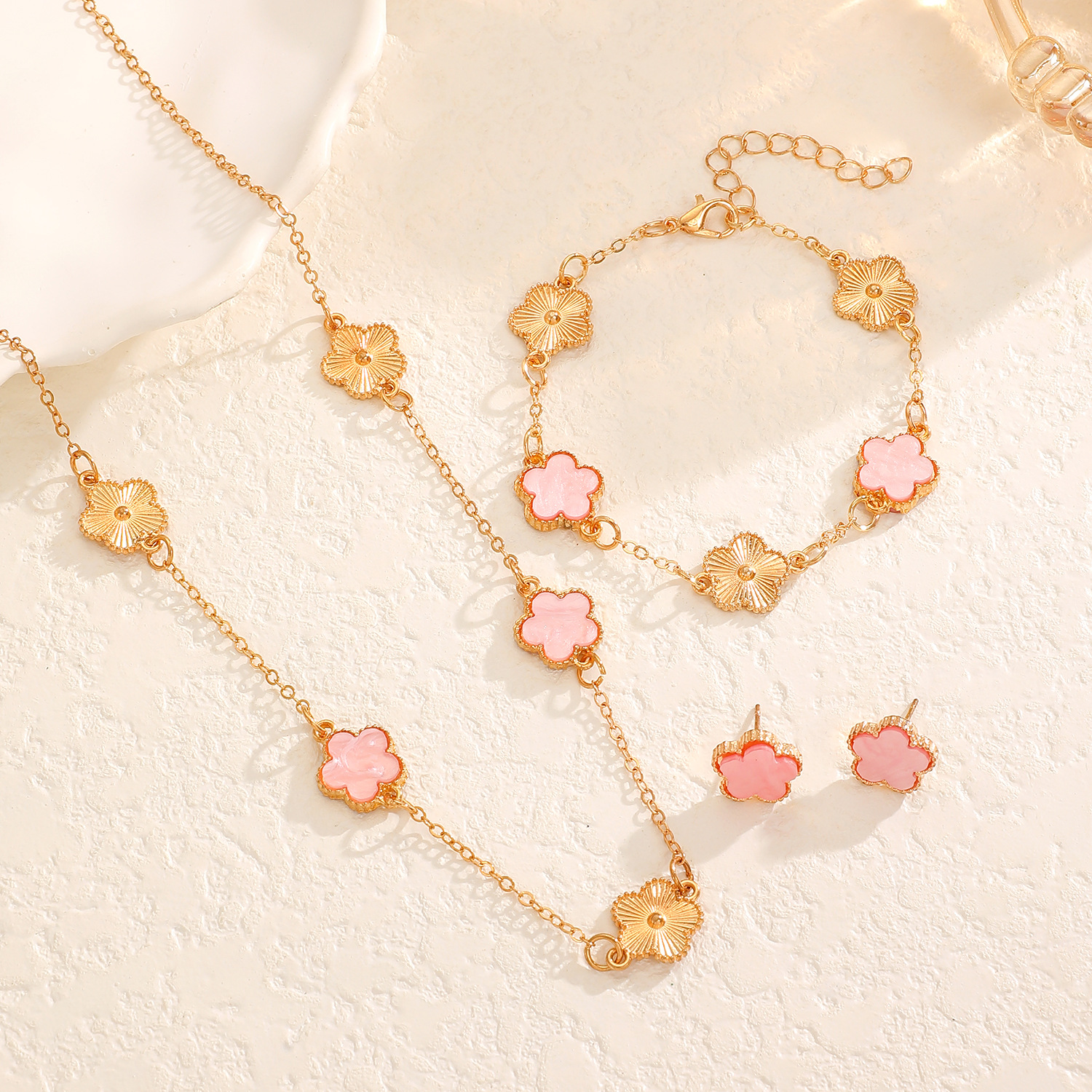 Color: Pink five flowers (earrings + bracelet + necklace)